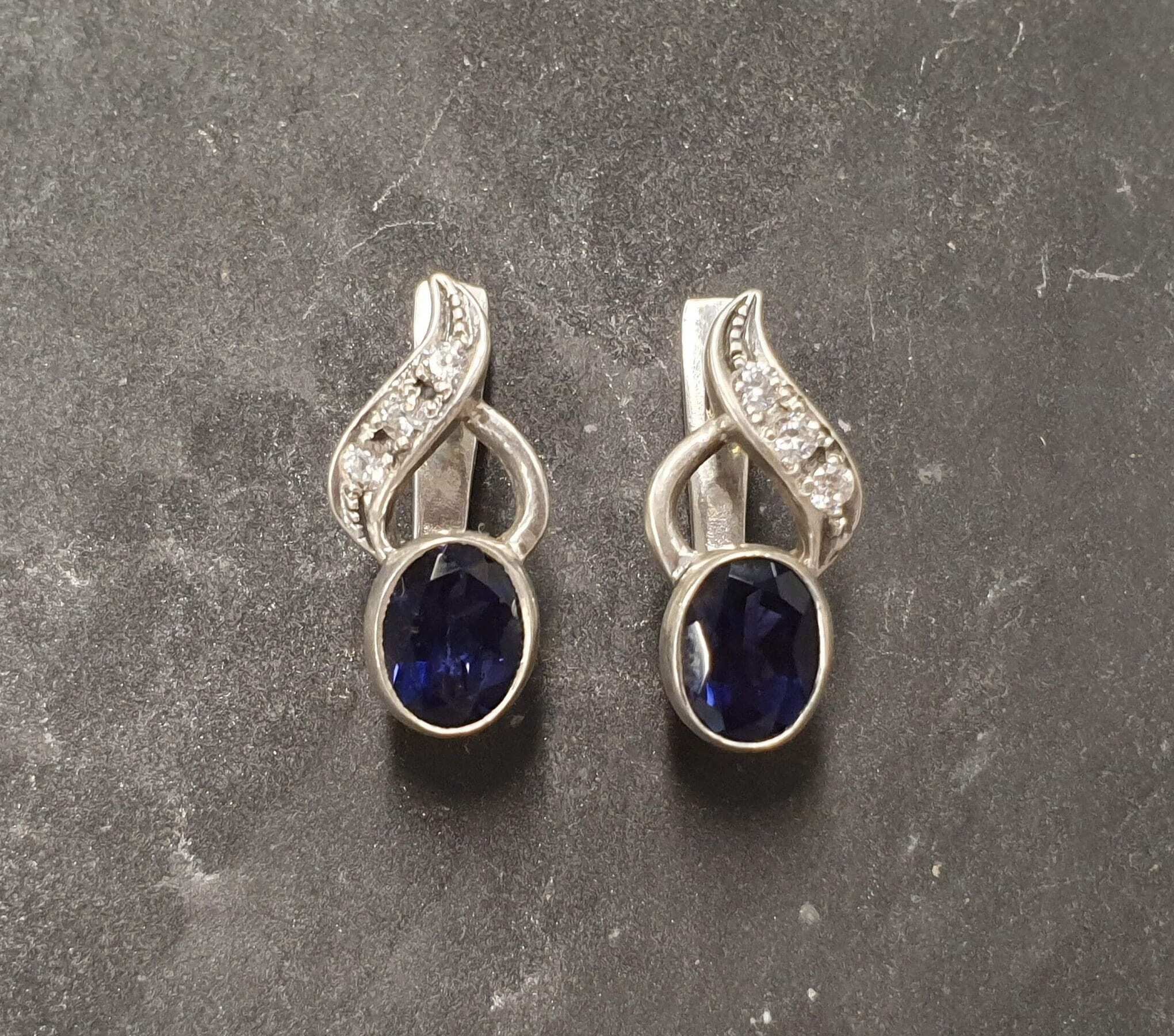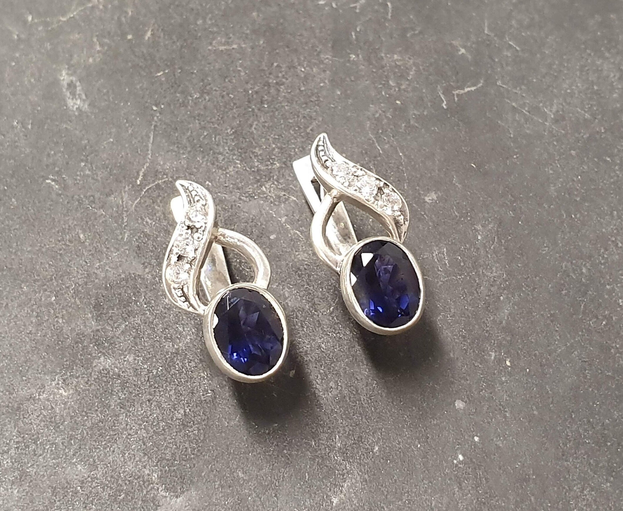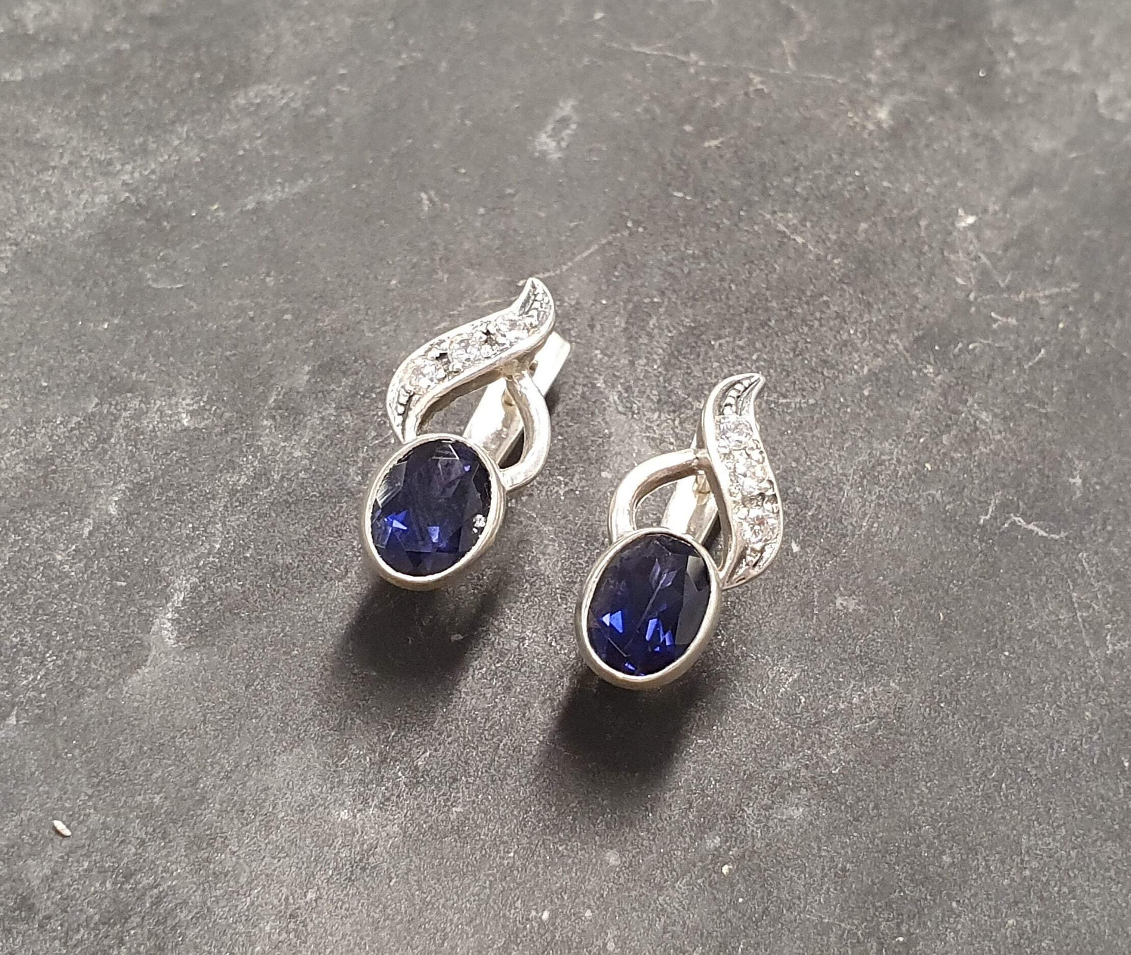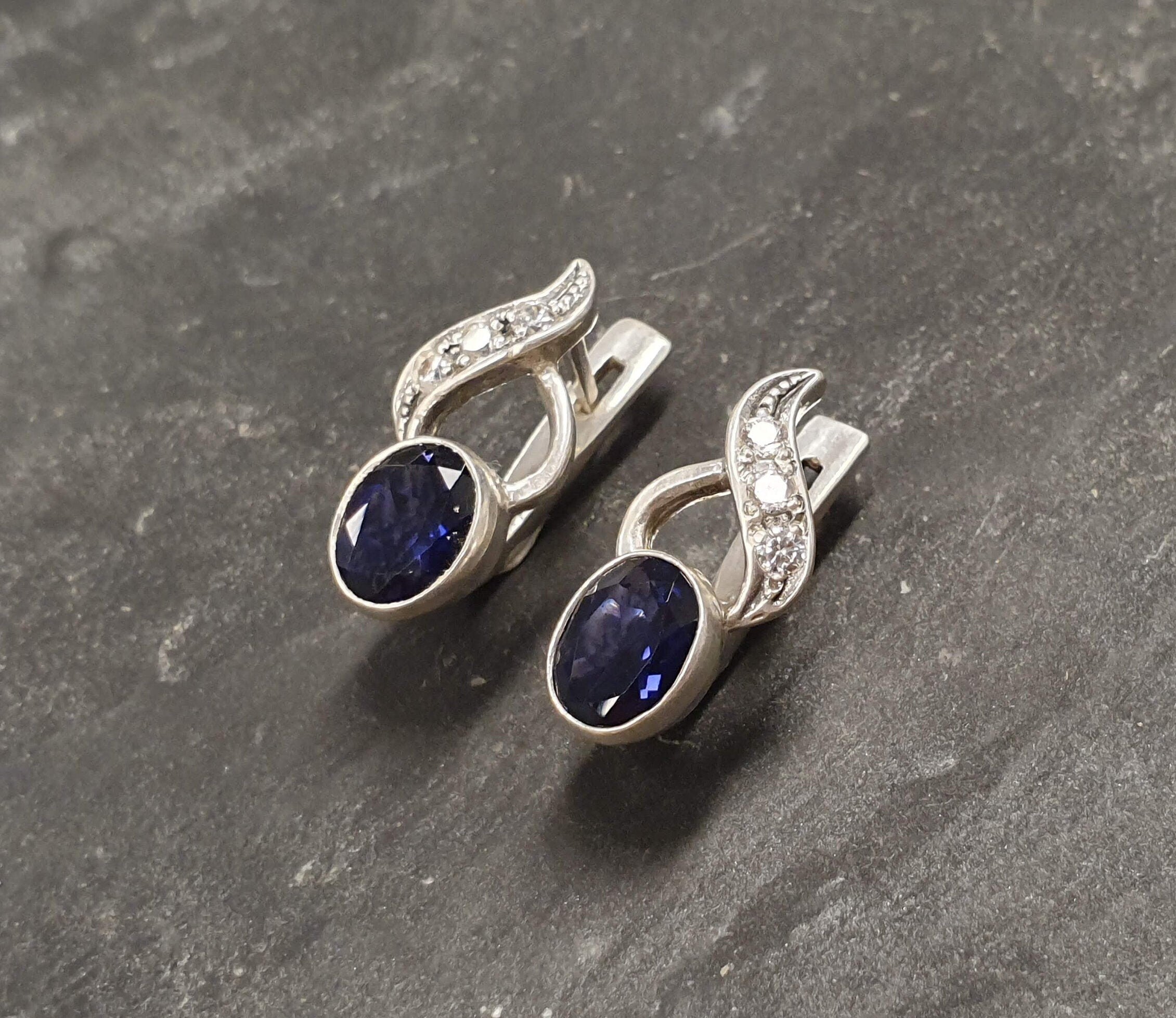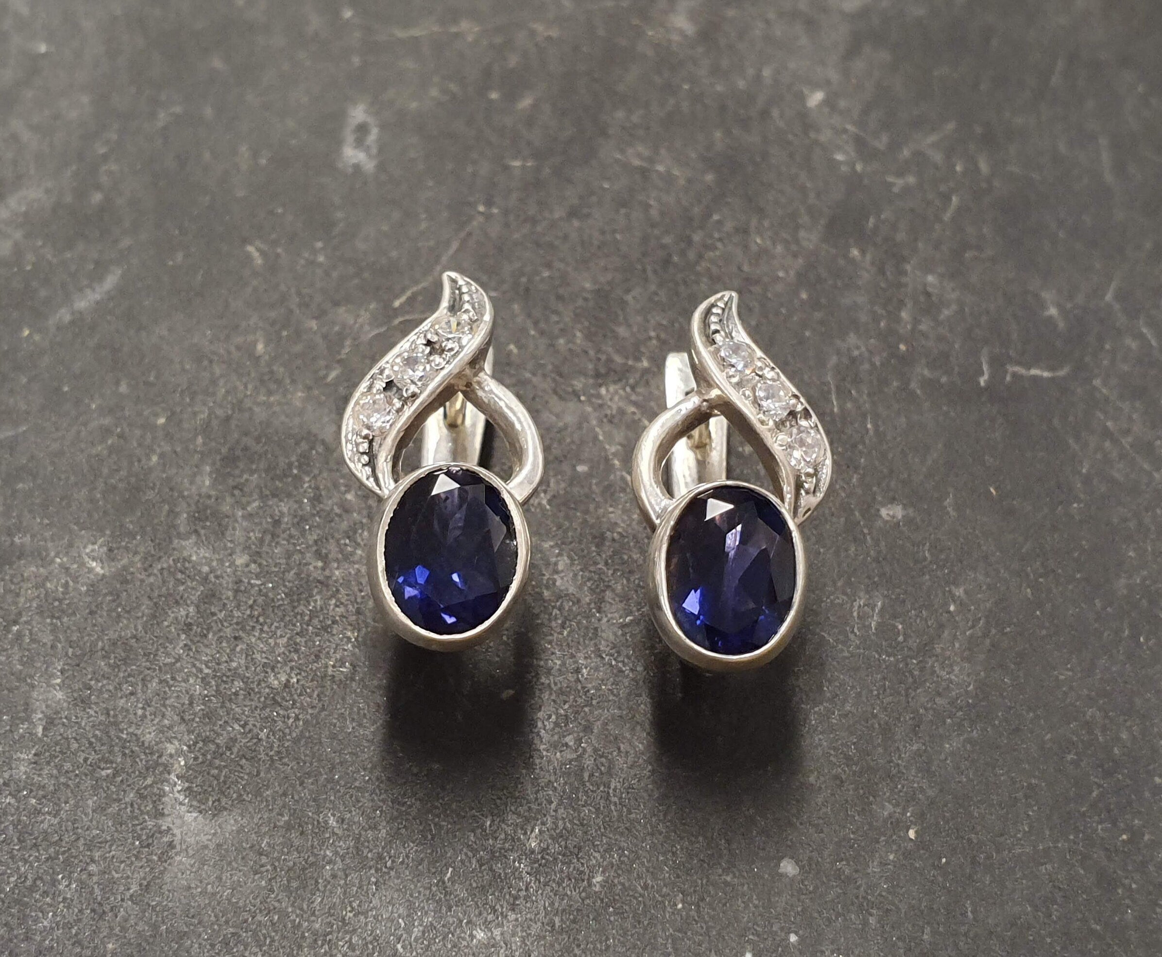 Iolite Earrings, Natural Iolite, Vintage Earrings, Purple Earrings, Royal Earrings, Dainty Earrings, Antique Earrings, Solid Silver Earrings