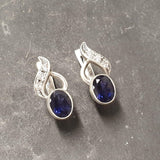 Iolite Earrings - Purple Drop Earrings - Classy Oval Earrings