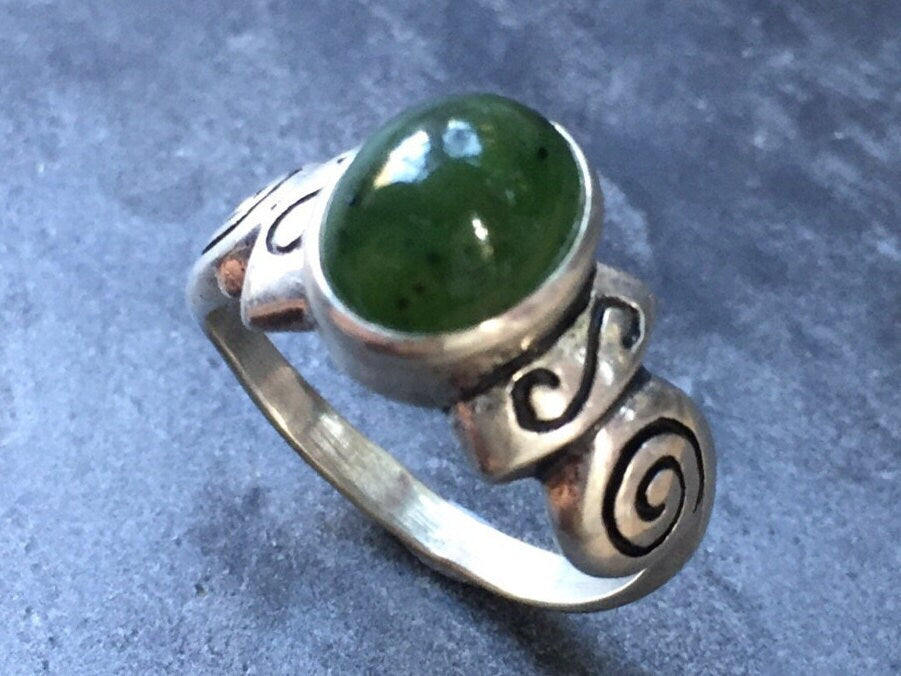 Jade Ring, Natural Jade, August Birthstone, Tribal Ring, Green Jade Ring, Genuine Jade, Vintage Rings, Jade, Antique Jade, Solid Silver Ring