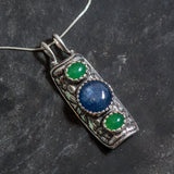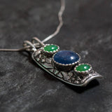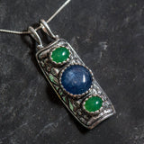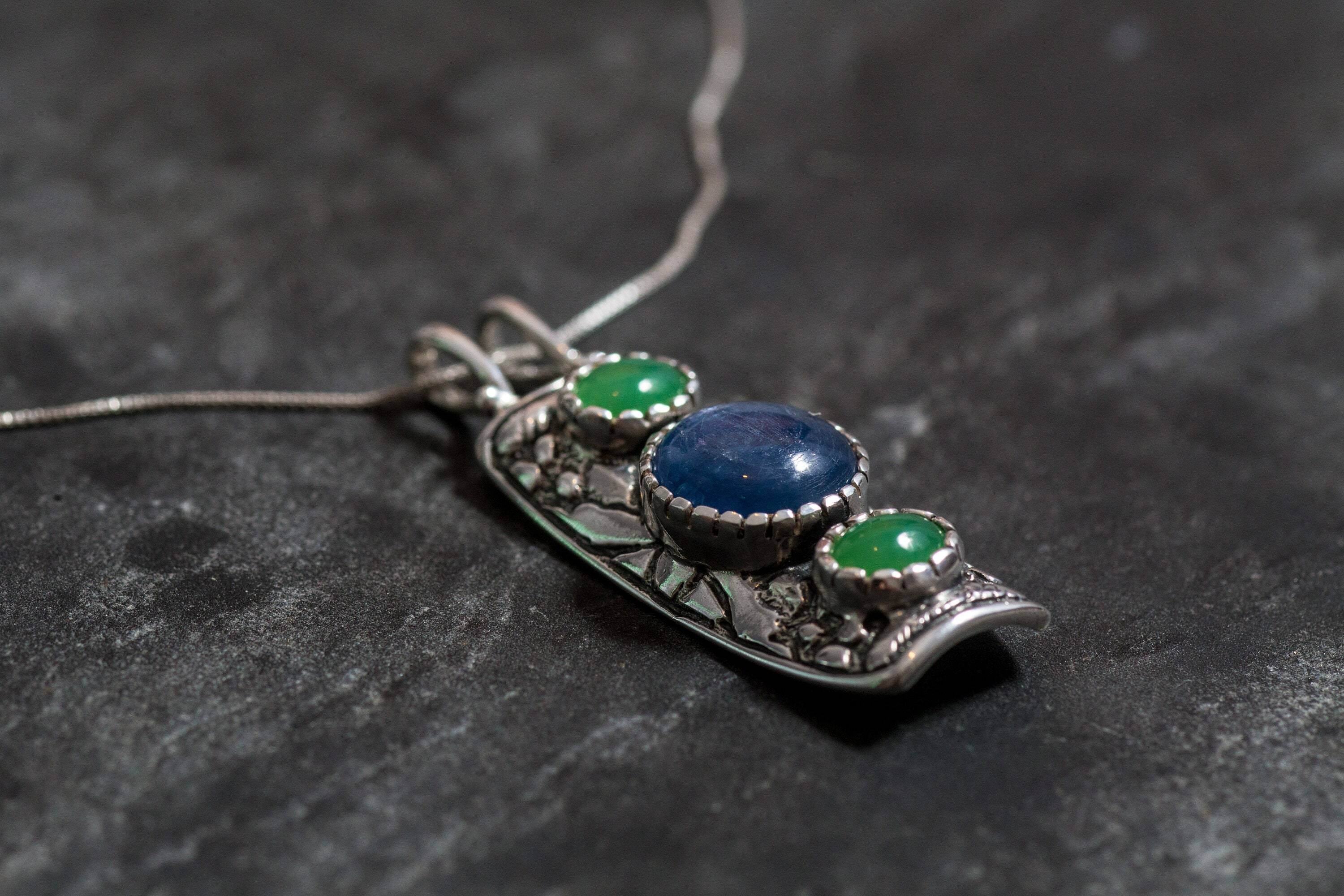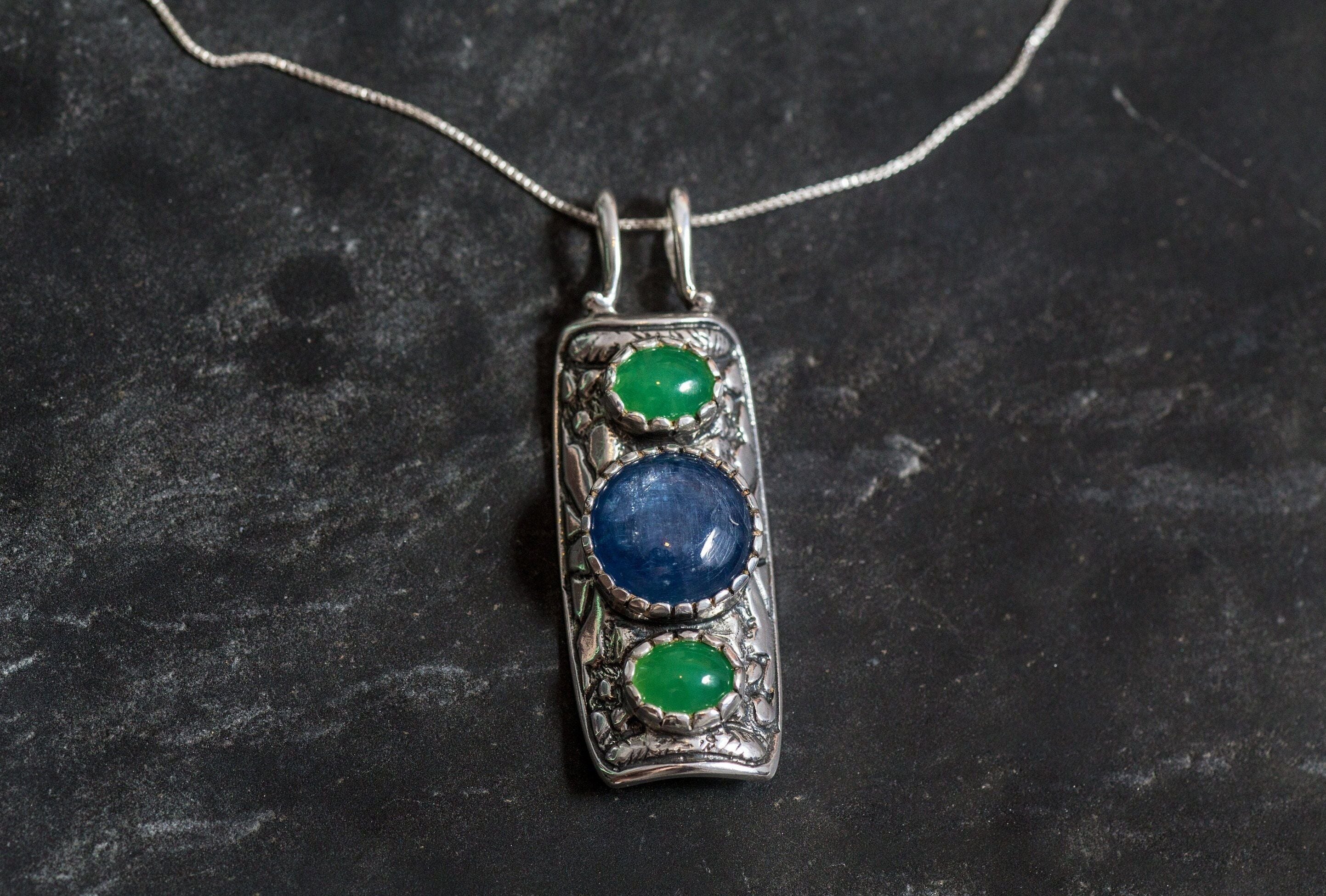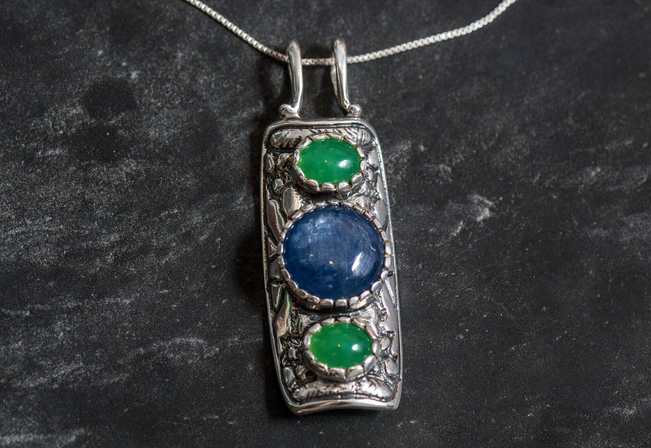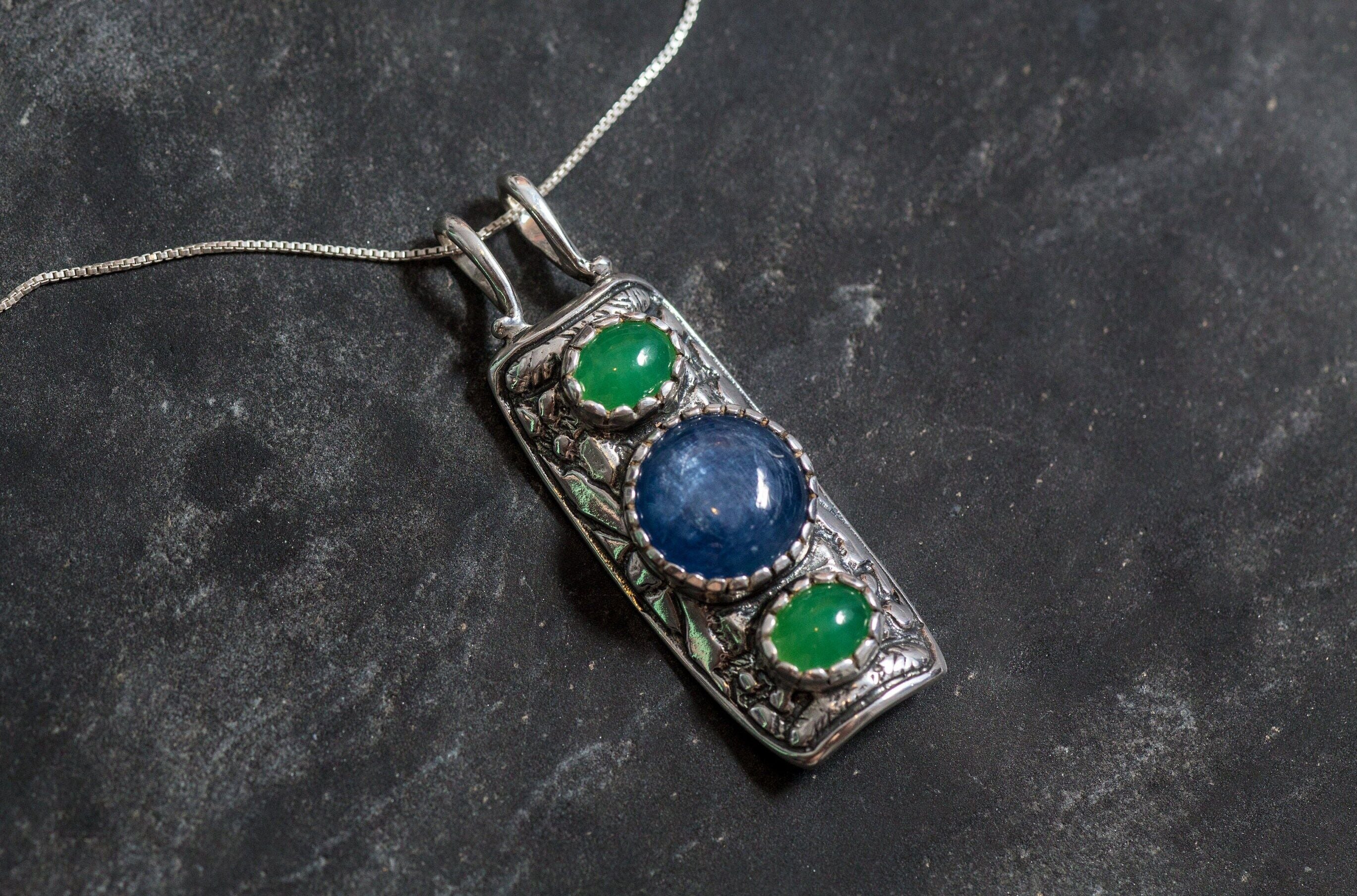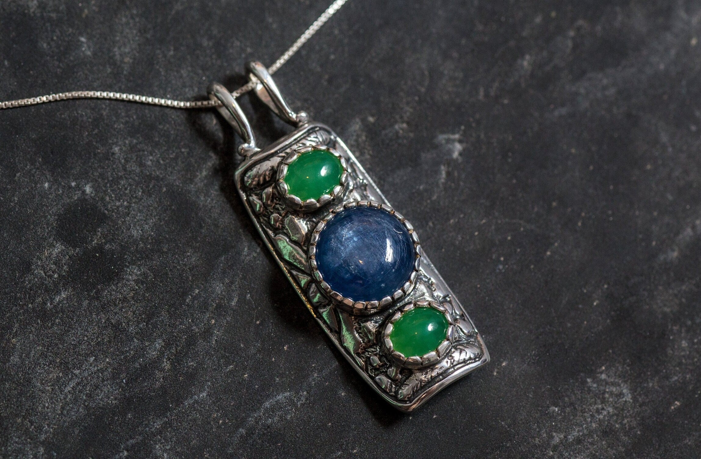 Kyanite Pendant, Natural Kyanite, Chrysoprase Pendant, Tribal Pendant, May Pendant, Statement Pendant, Silver Pendant, Chrysoprase, Kyanite