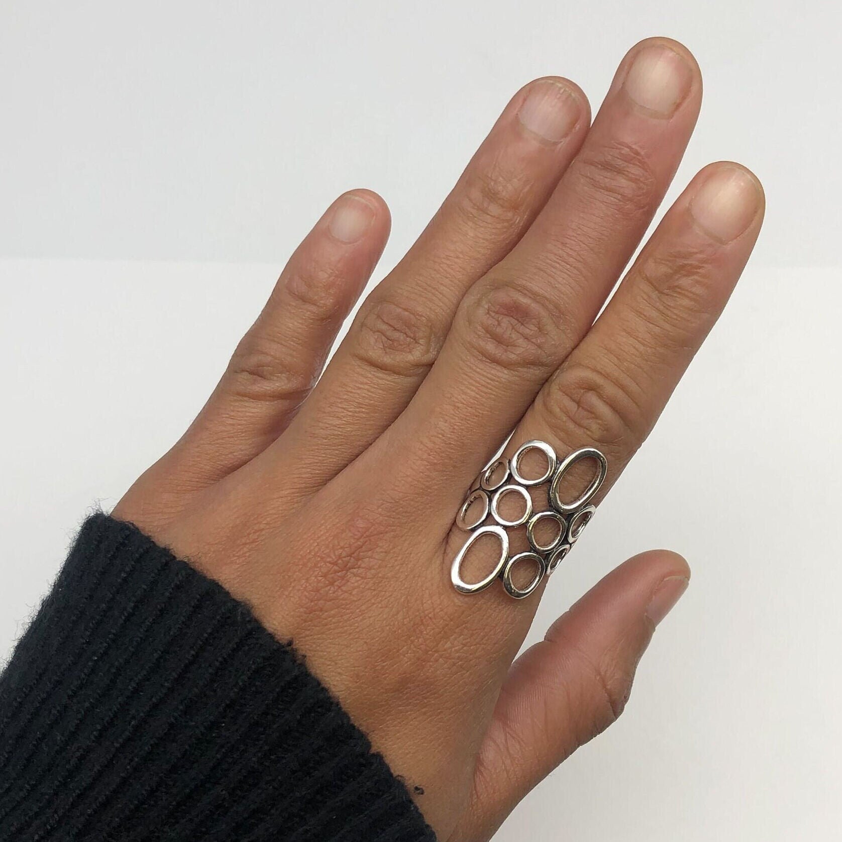 Large Bubble Ring, Artistic Ring, Retro Style Ring, Solid Silver Ring, Long Silver Ring, Unique Design Ring, Artisan Ring, Sterling Silver