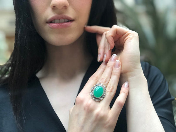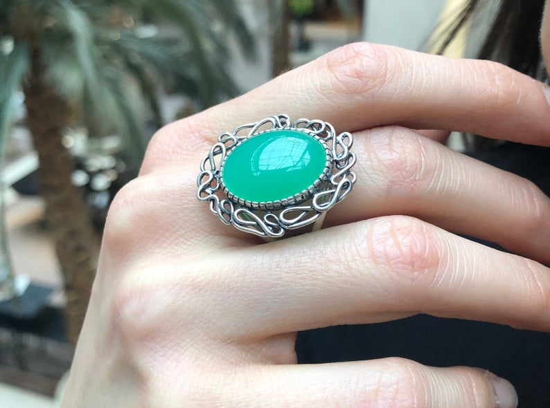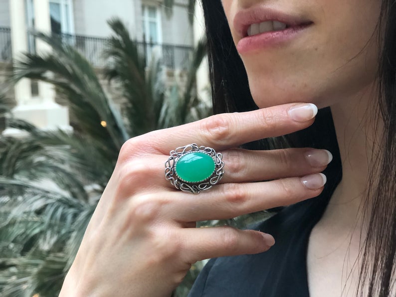 Large Chrysoprase Ring, Natural Chrysoprase, Statement Ring, Vintage Inspired