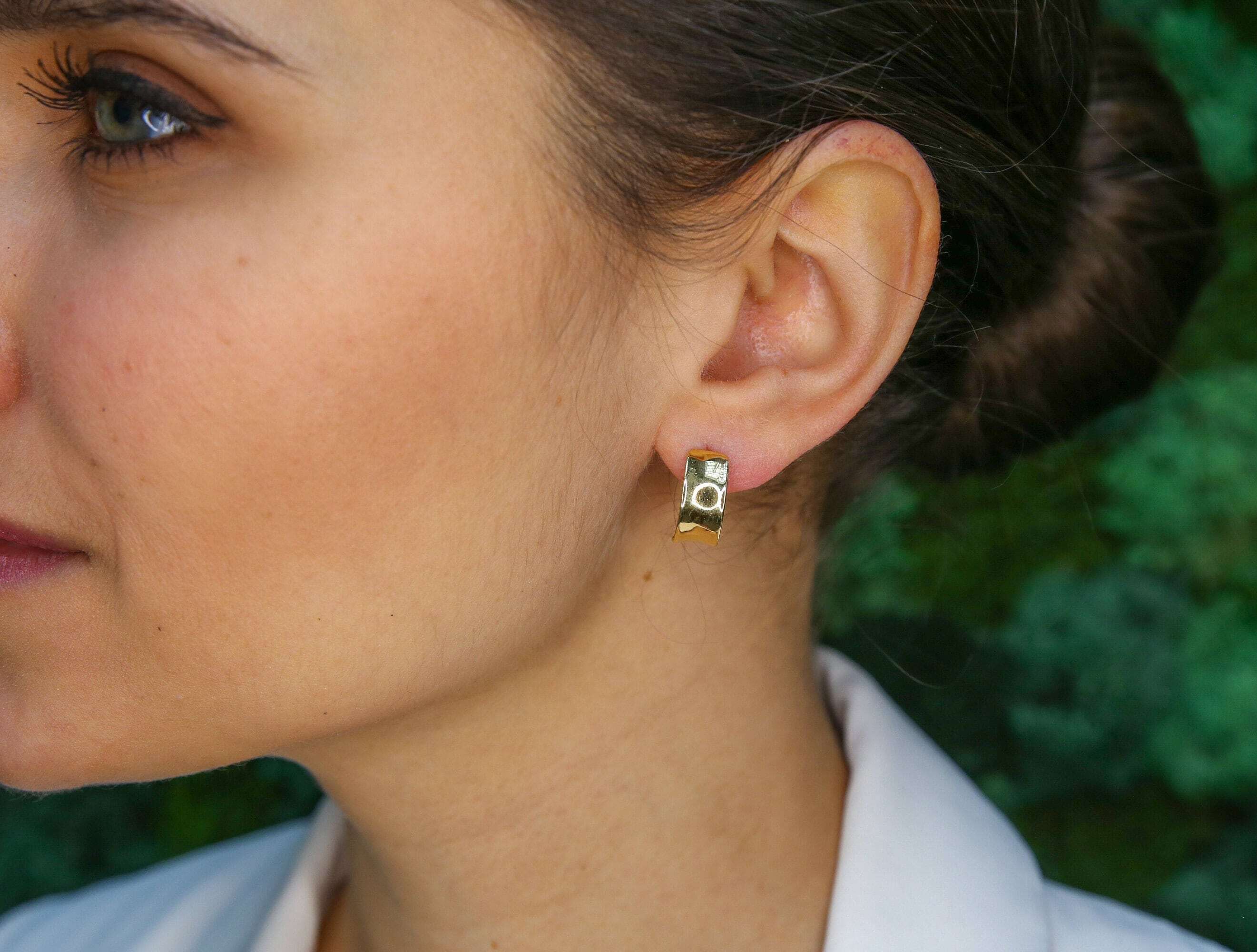Plain Gold Earrings - Half Hoop Earrings, Minimalist Gold Earrings