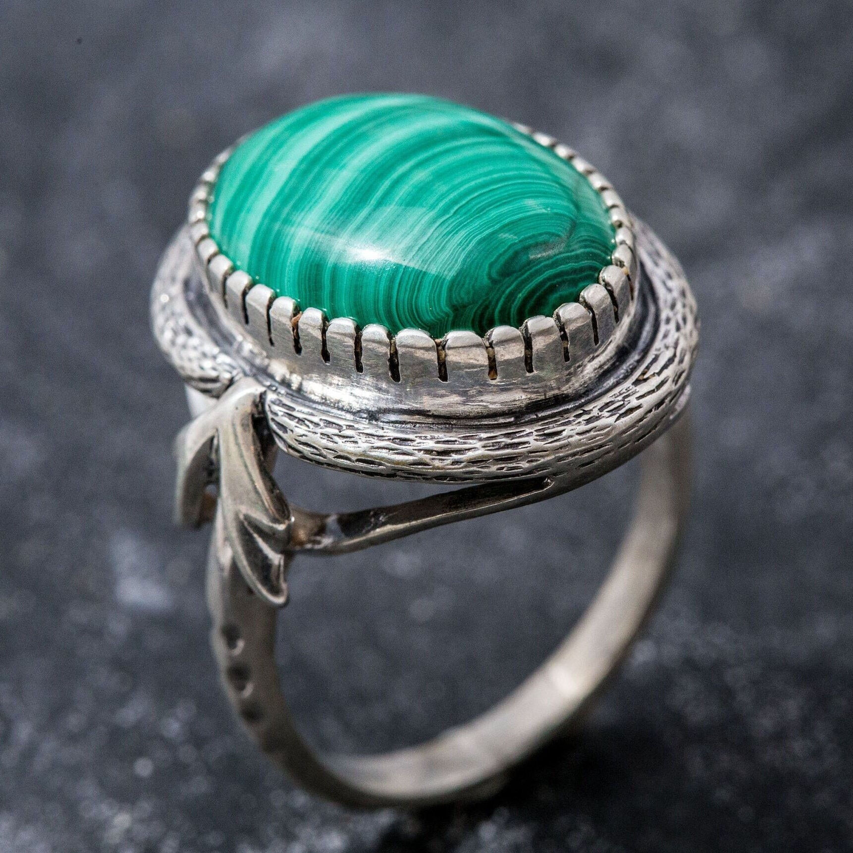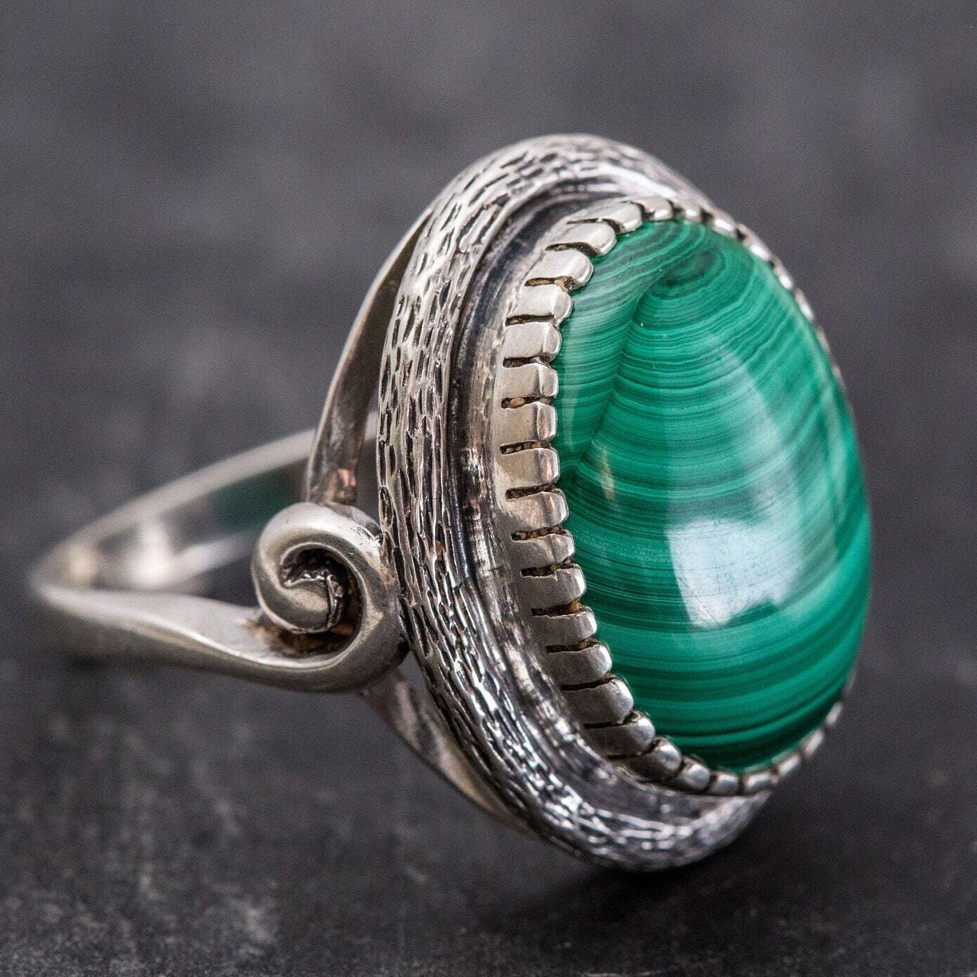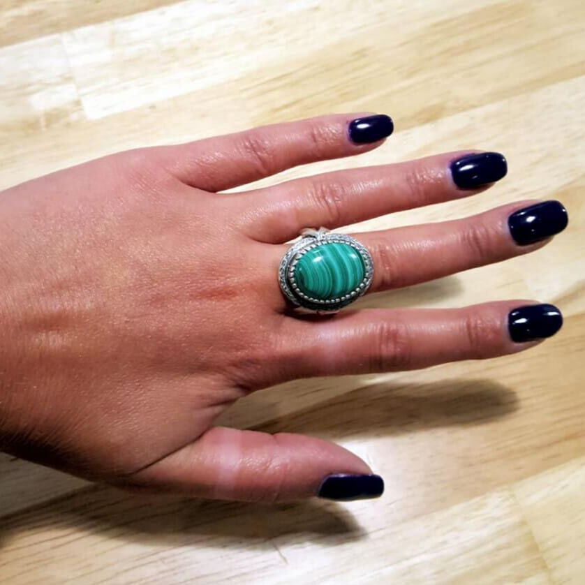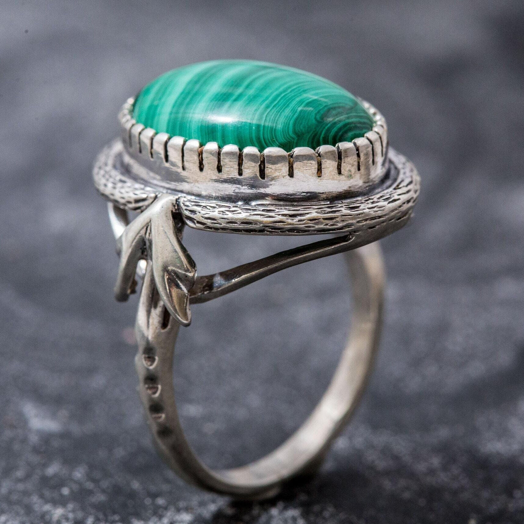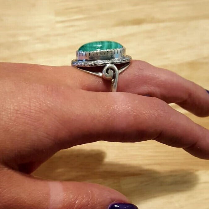 Large Malachite Ring, Natural Malachite, Vintage Rings, Large Stone Ring, Natural Stone, 15 Carat Stone, Green Ring, Solid Silver, Malachite