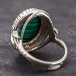 Malachite Statement Ring - Green Gemstone Ring - Malachite Bezel Ring