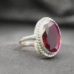 Beautiful 925 Sterling Silver ring with an oval Created Red Ruby, symbolizing love and ideal for July birthday gifts.