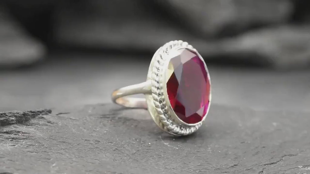 Large Ruby Ring - Red Statement Ring - Vintage Oval Ring