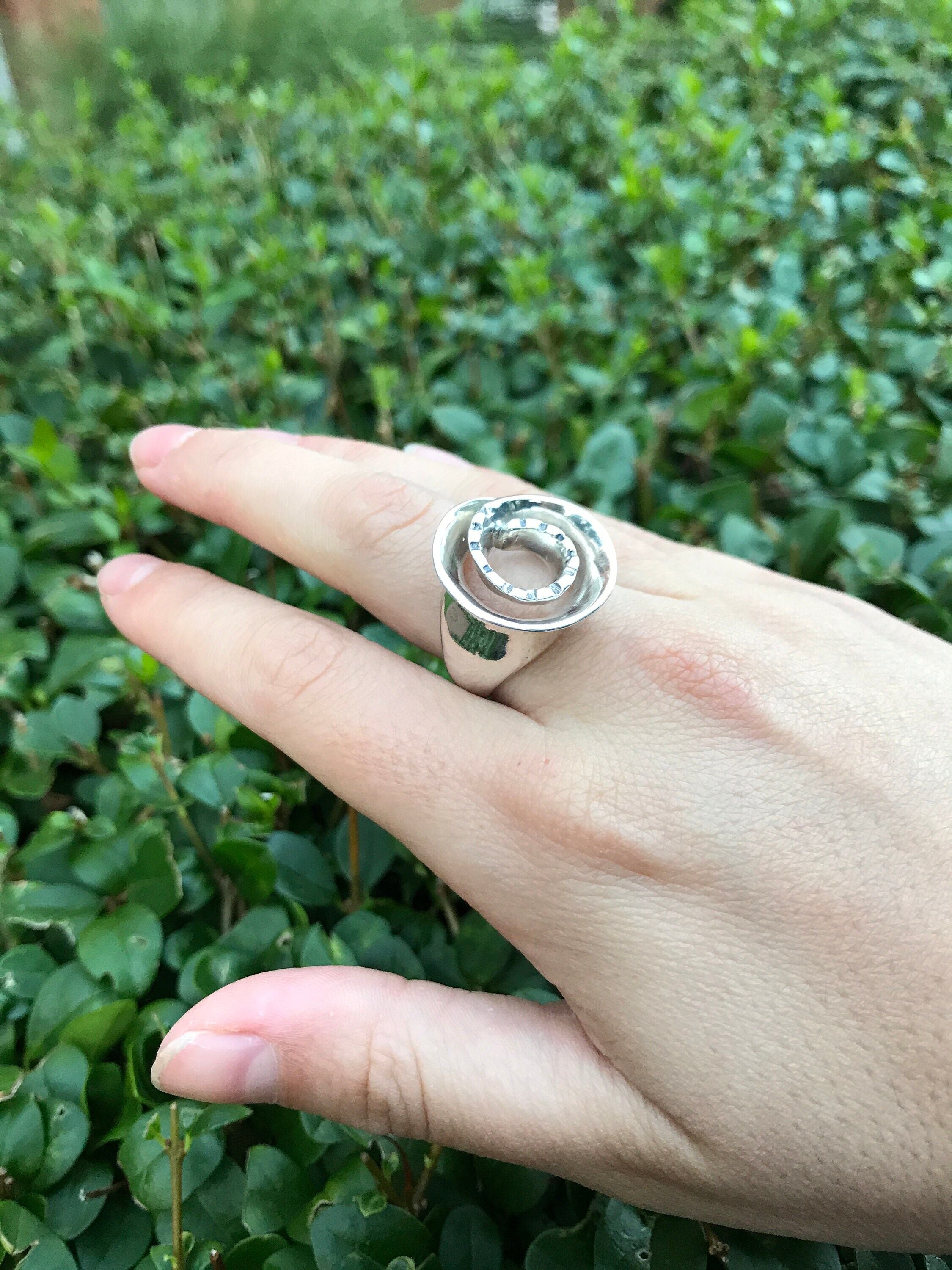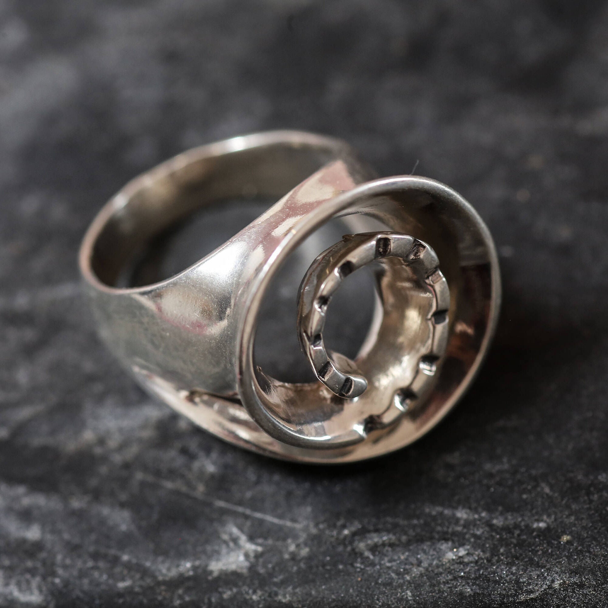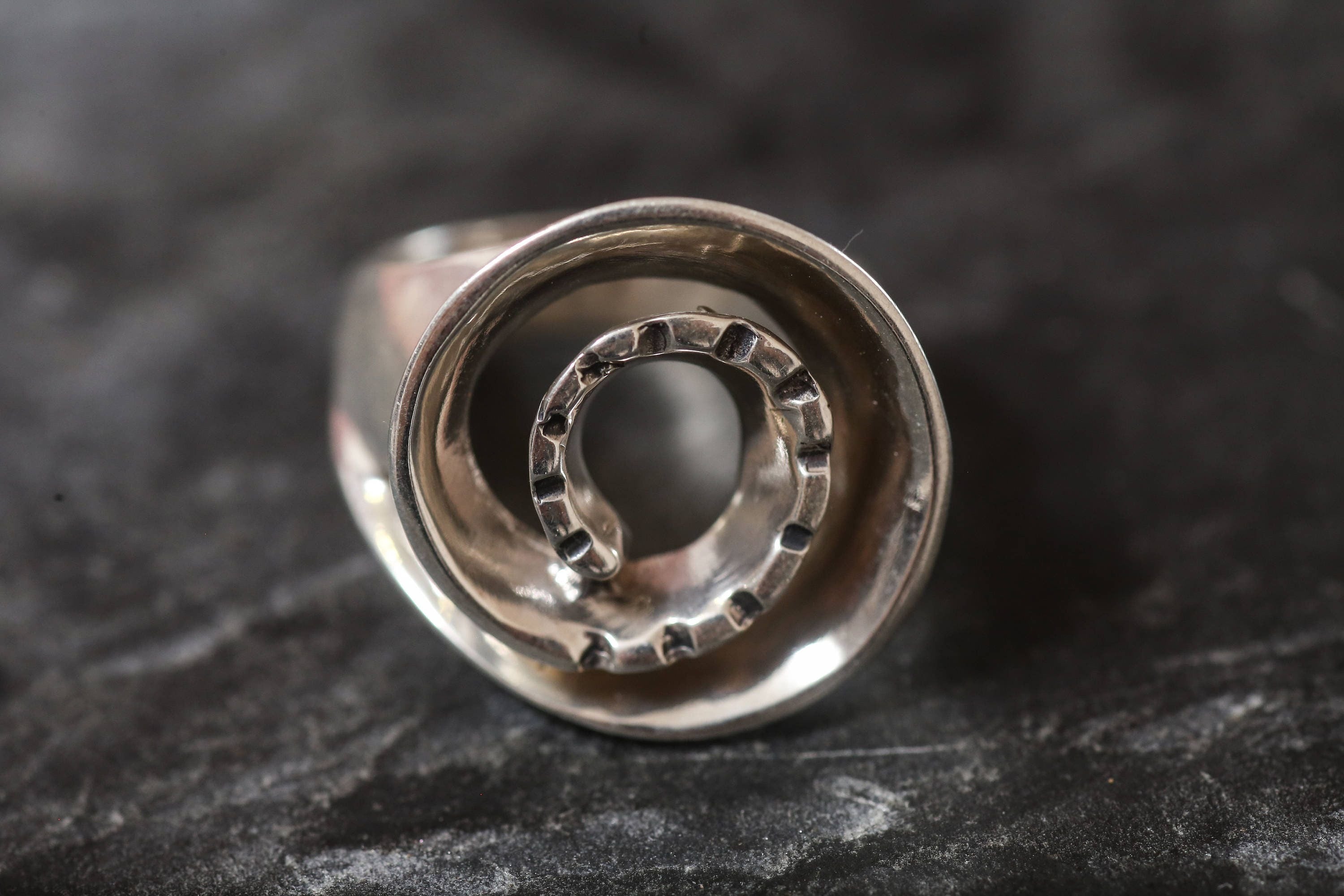 Large Silver Ring, Swirl Ring, Statement Ring, Abstract Ring, Spiral Ring, Artisan Ring, Bohemian Ring, Big Round Ring, Sterling Silver Ring