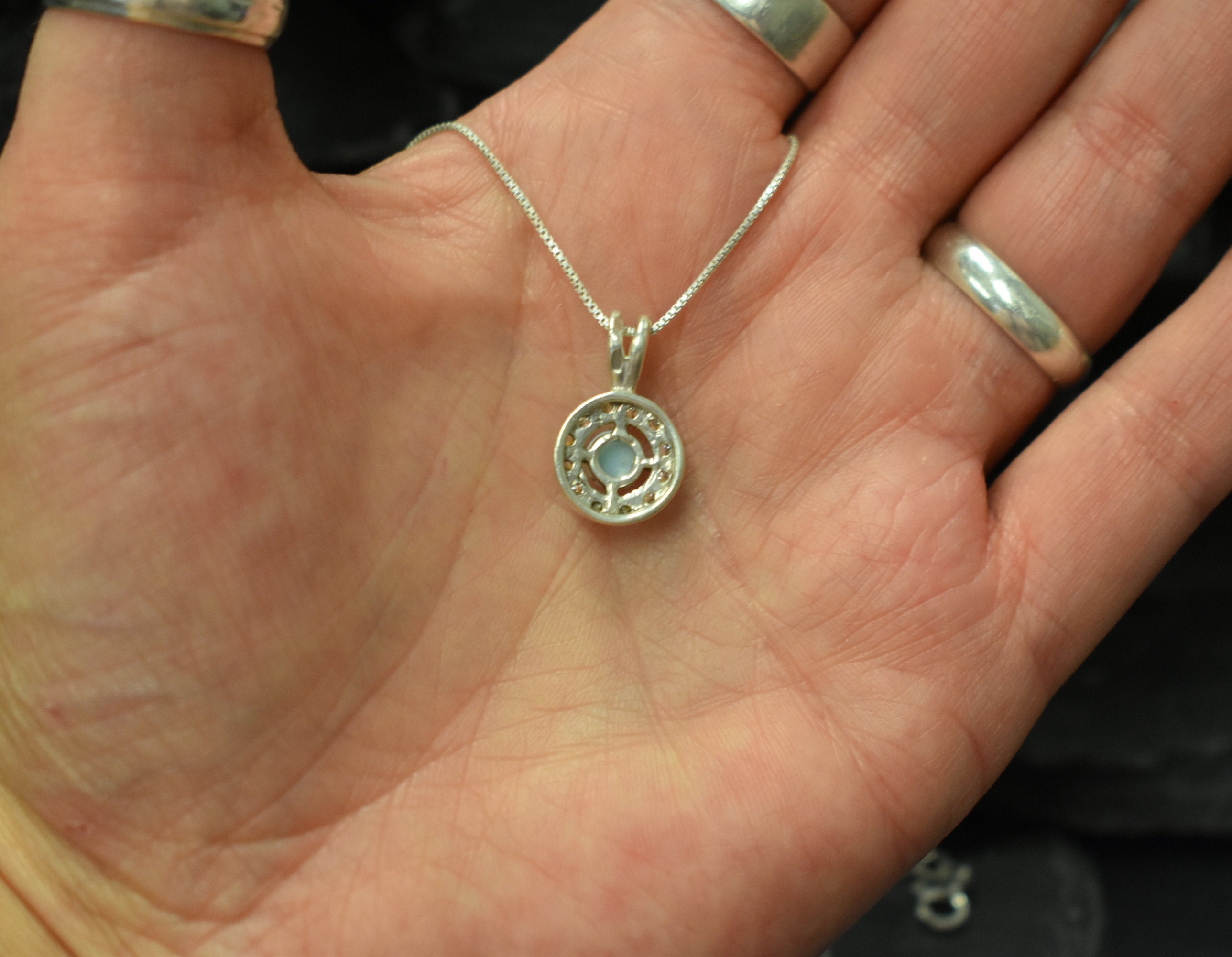 Larimar Pendant - Natural Larimar Necklace - Round Sky Blue Pendant