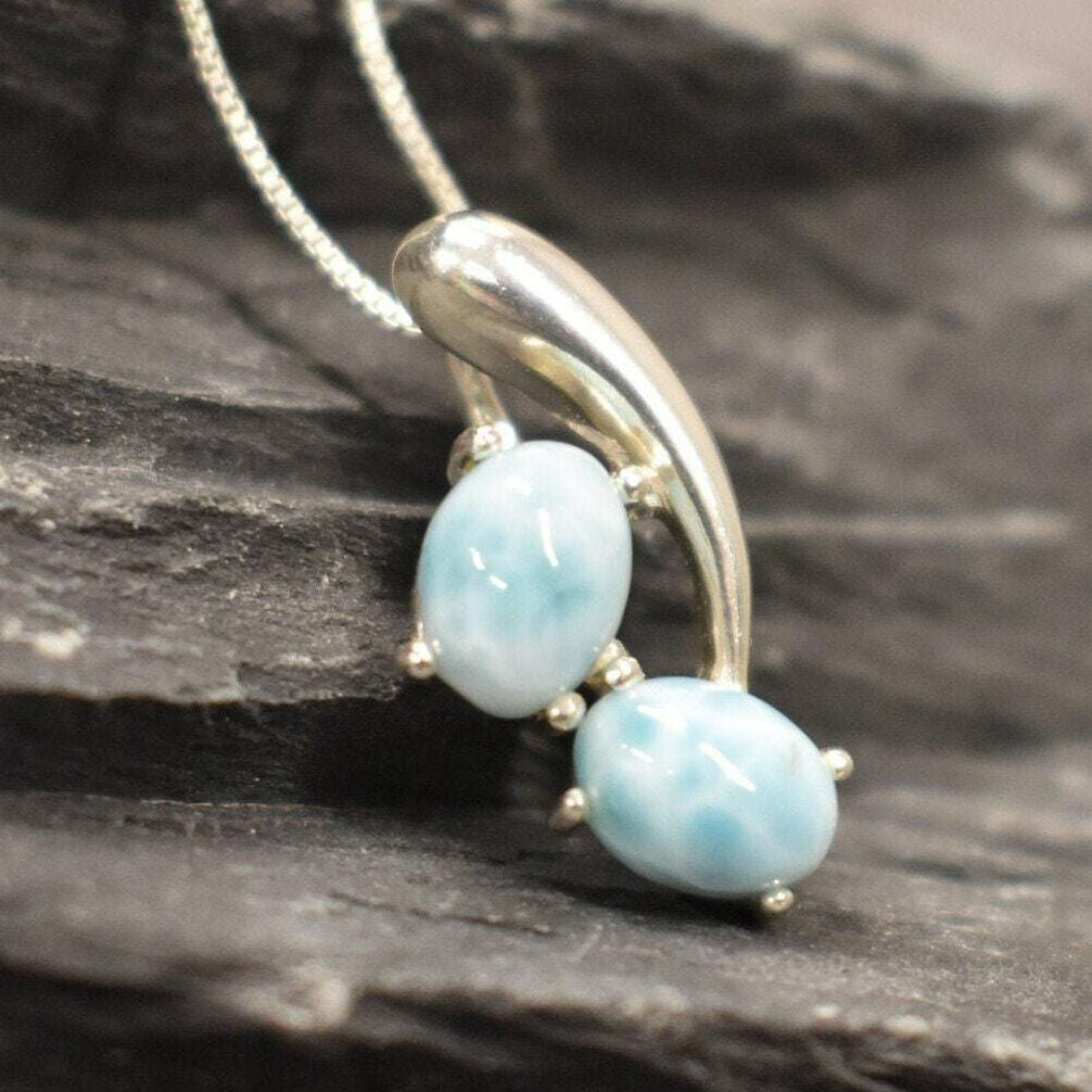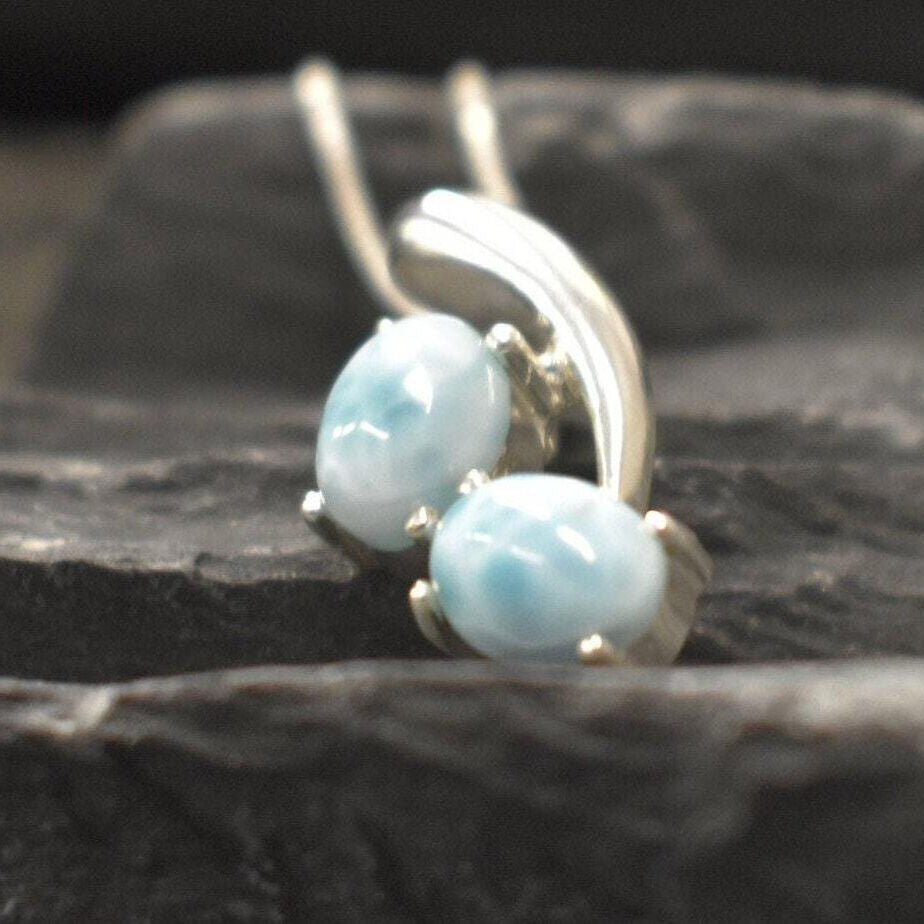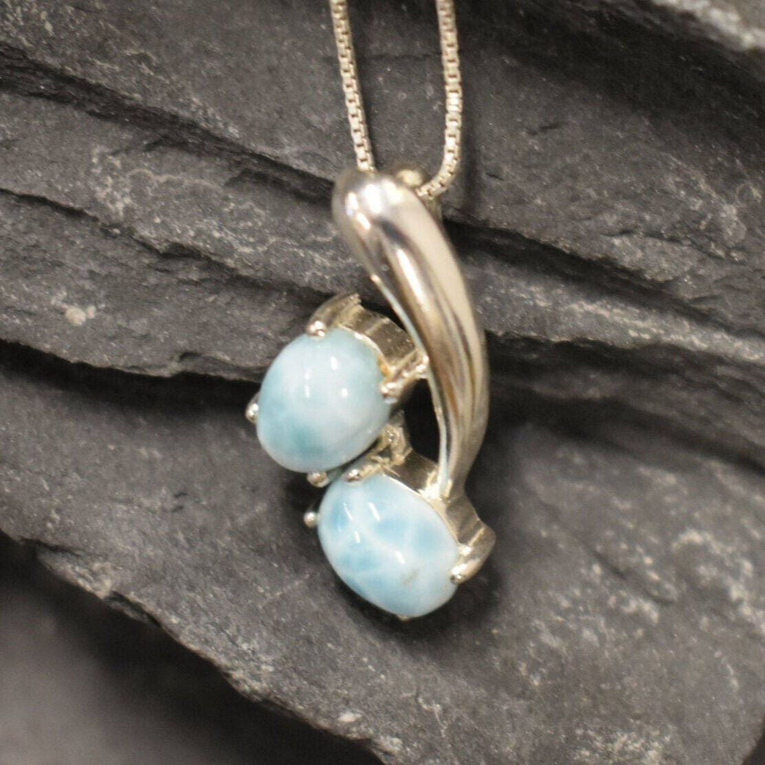 Larimar Pendant, Natural Larimar, Sky Blue Pendant, Two Stone Pendant, Dainty Pendant, Vintage Pendant, Larimar Necklace, 925 Silver Pendant