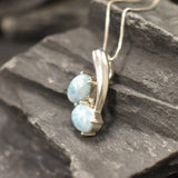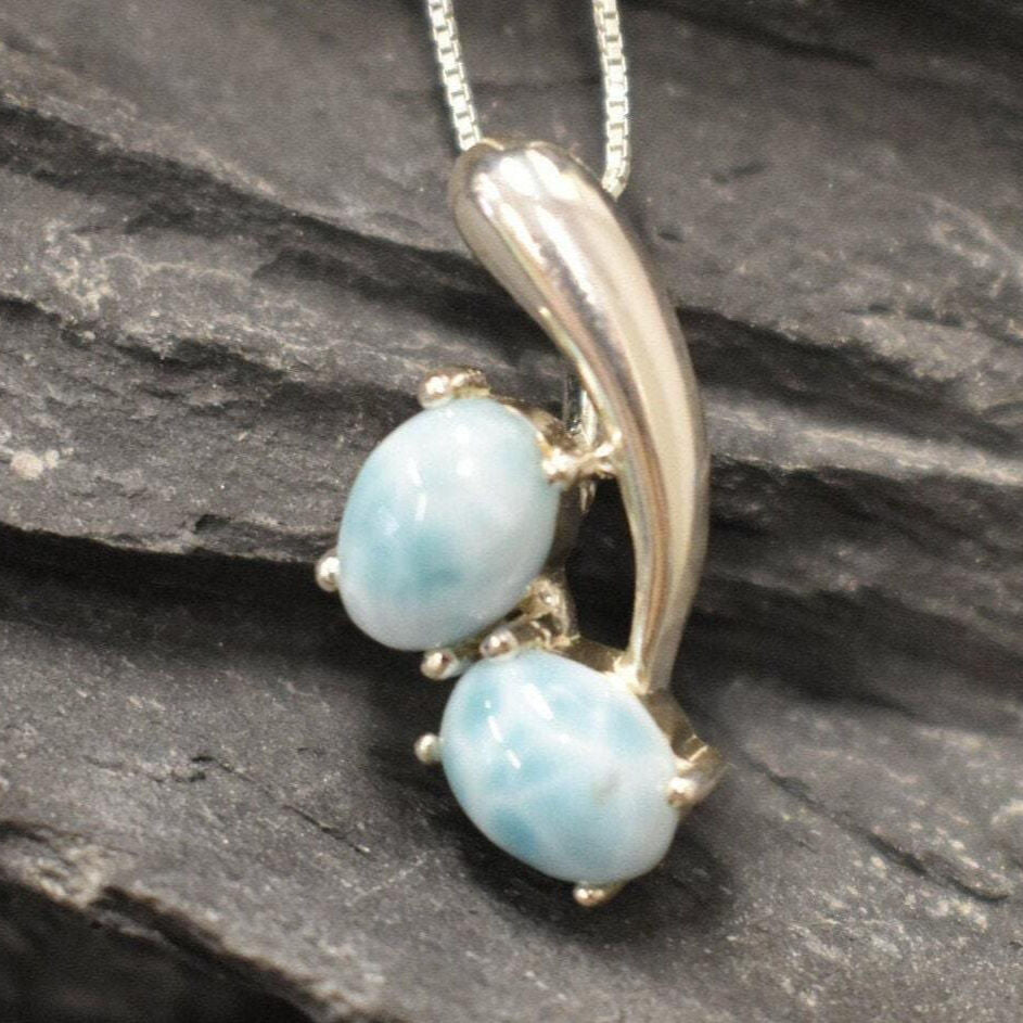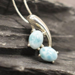GENUINE Larimar Pendant - Twin Stone Necklace - Sky Blue Pendant