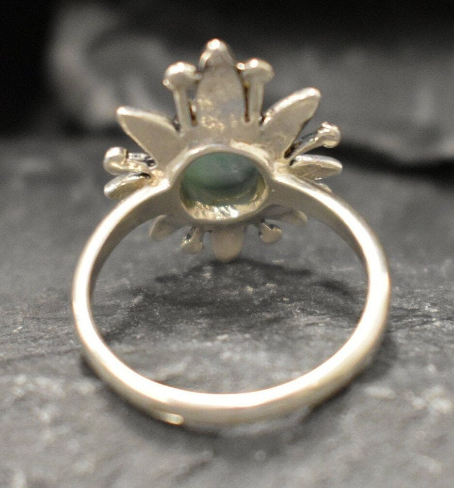 Blue Larimar Ring, Natural Larimar, Lotus Ring, Vintage Ring, Flower Ring, Sky Blue Ring, Leaf Ring, Antique Ring, Sterling Silver Ring