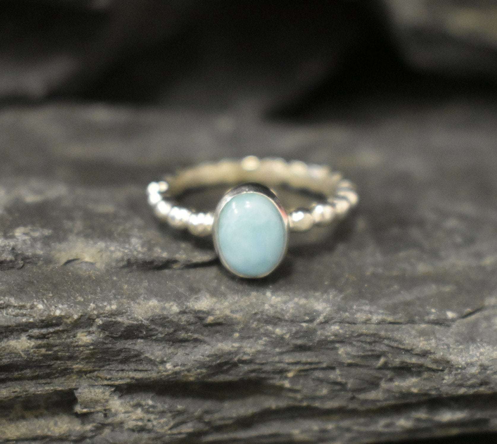 Larimar Ring, Natural Larimar, March Birthstone, Solitaire Ring, Blue Dainty Ring, Blue Vintage Ring, Jewel of Atlantis, Solid Silver Ring