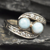 Larimar Ring - Blue Bypass Ring - Vintage Two Stone Ring