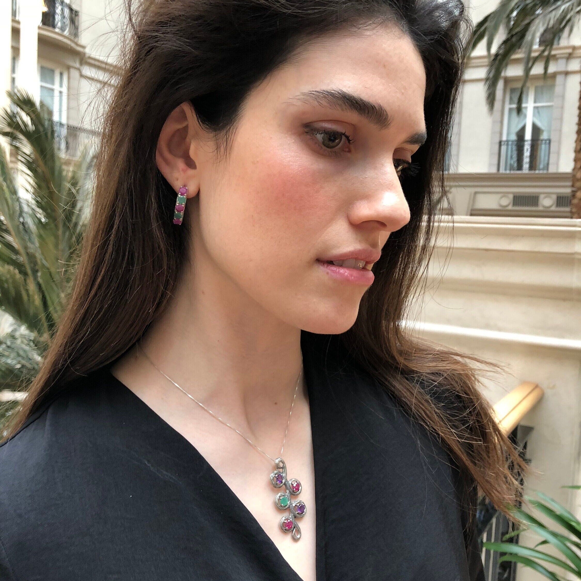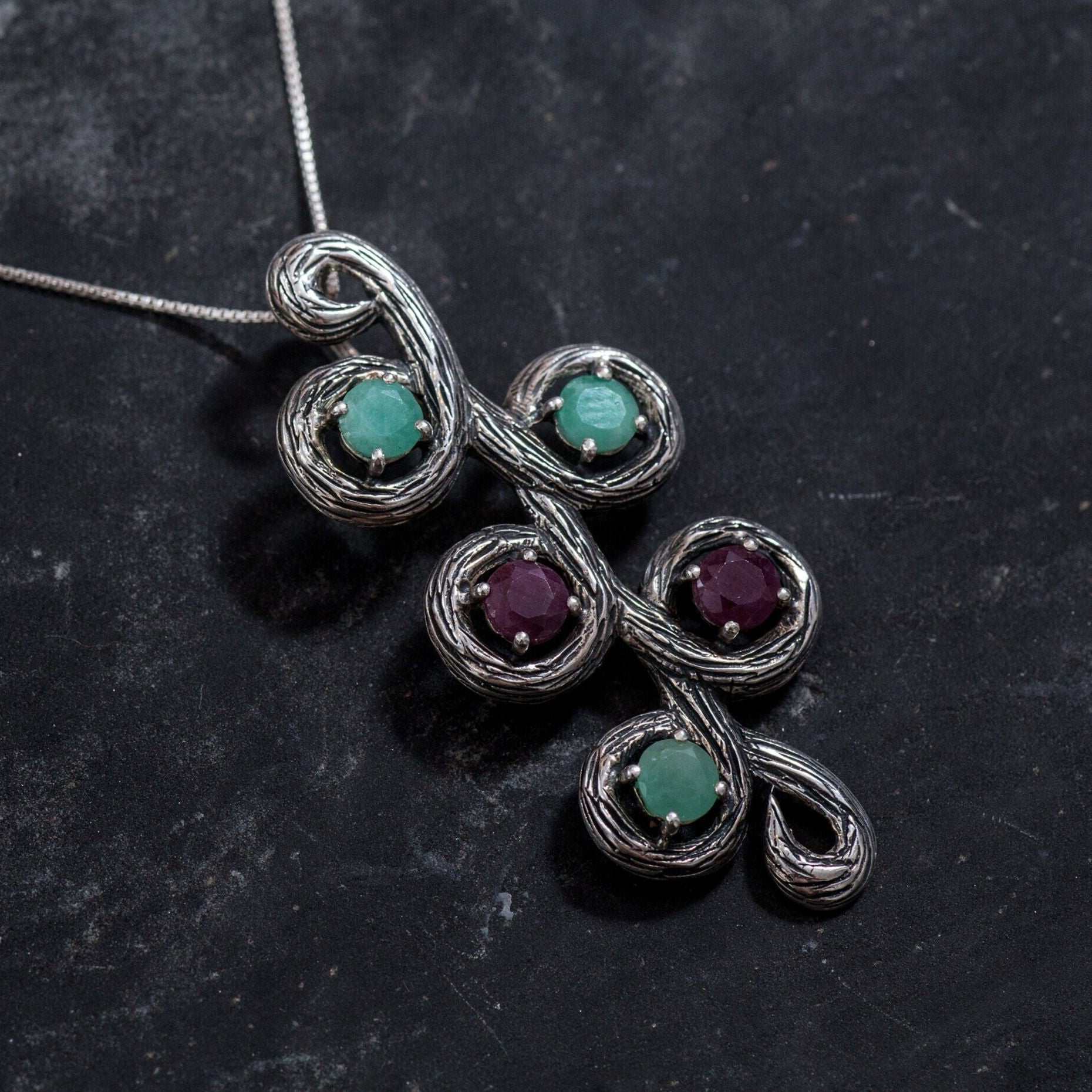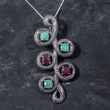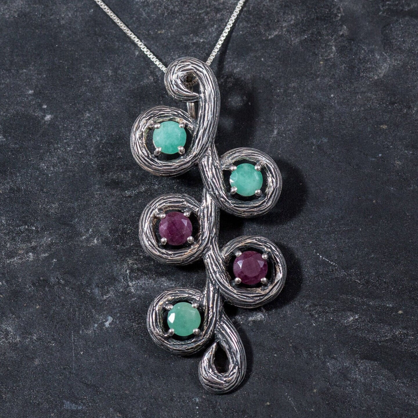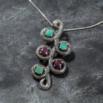 Leaf Emerald Necklace - Real Ruby Pendant - Large Branch Pendant