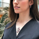 Leaf Emerald Necklace set with a Natural Ruby (Burma) & Natural Emerald (Colombia) in a diamond cut, natural inclusions & color, at 5mm each (2.5 Cts combined)
