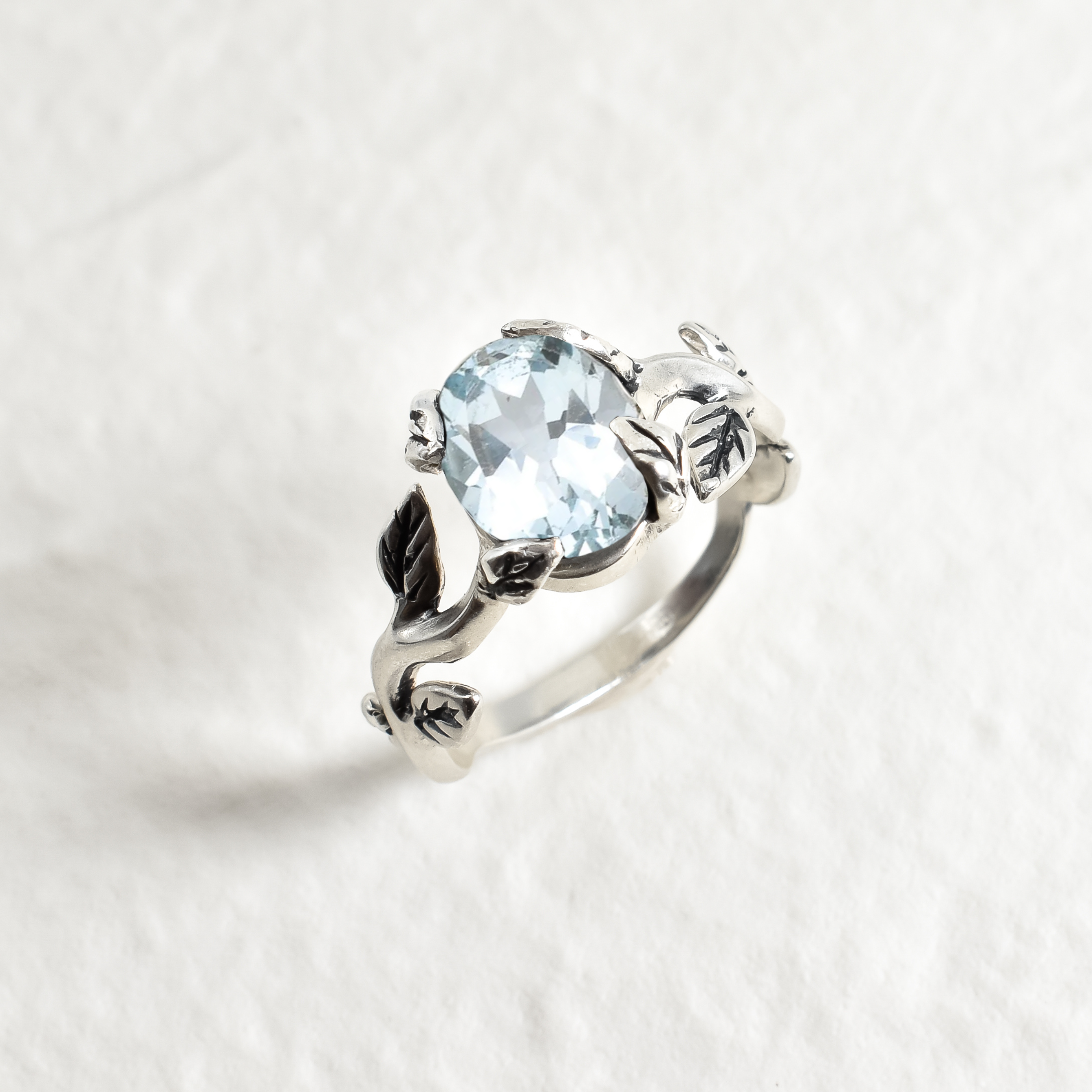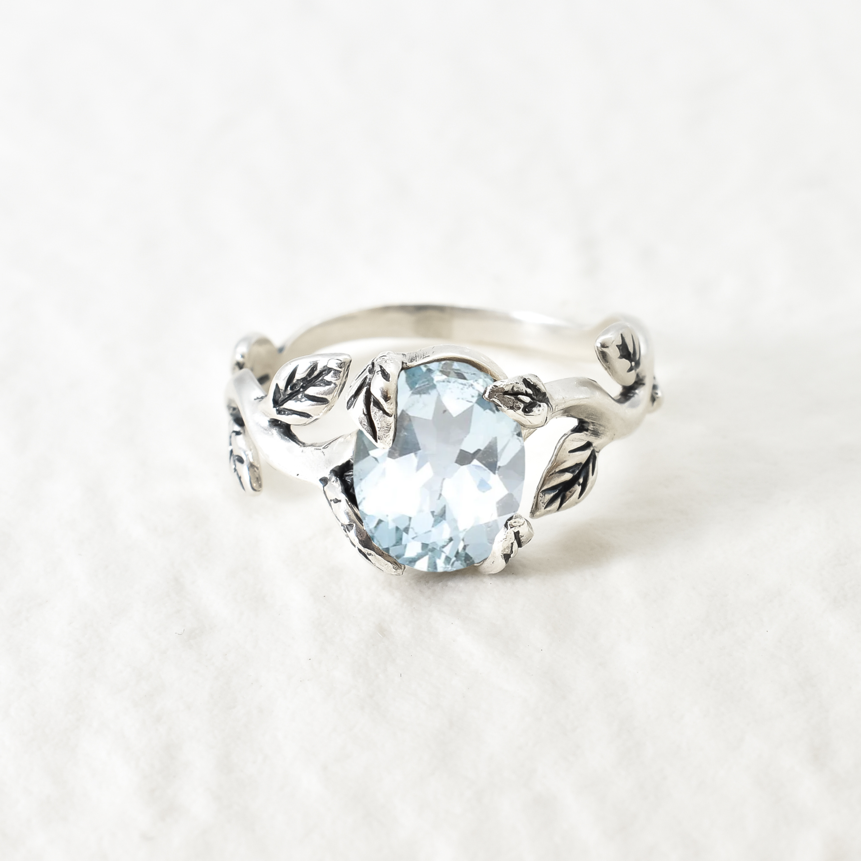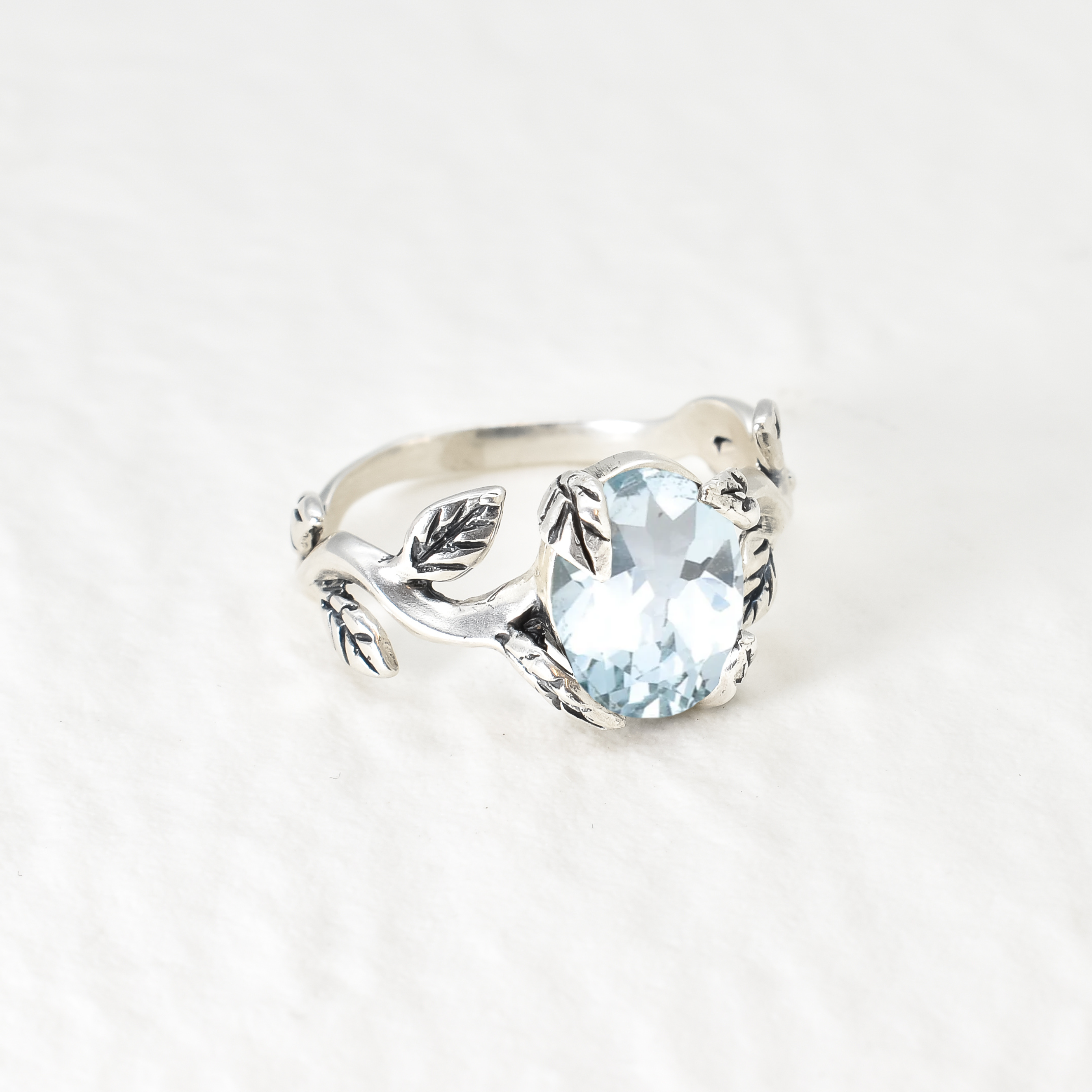Leaf Topaz Ring - Blue Topaz Ring - Vintage Branch Ring