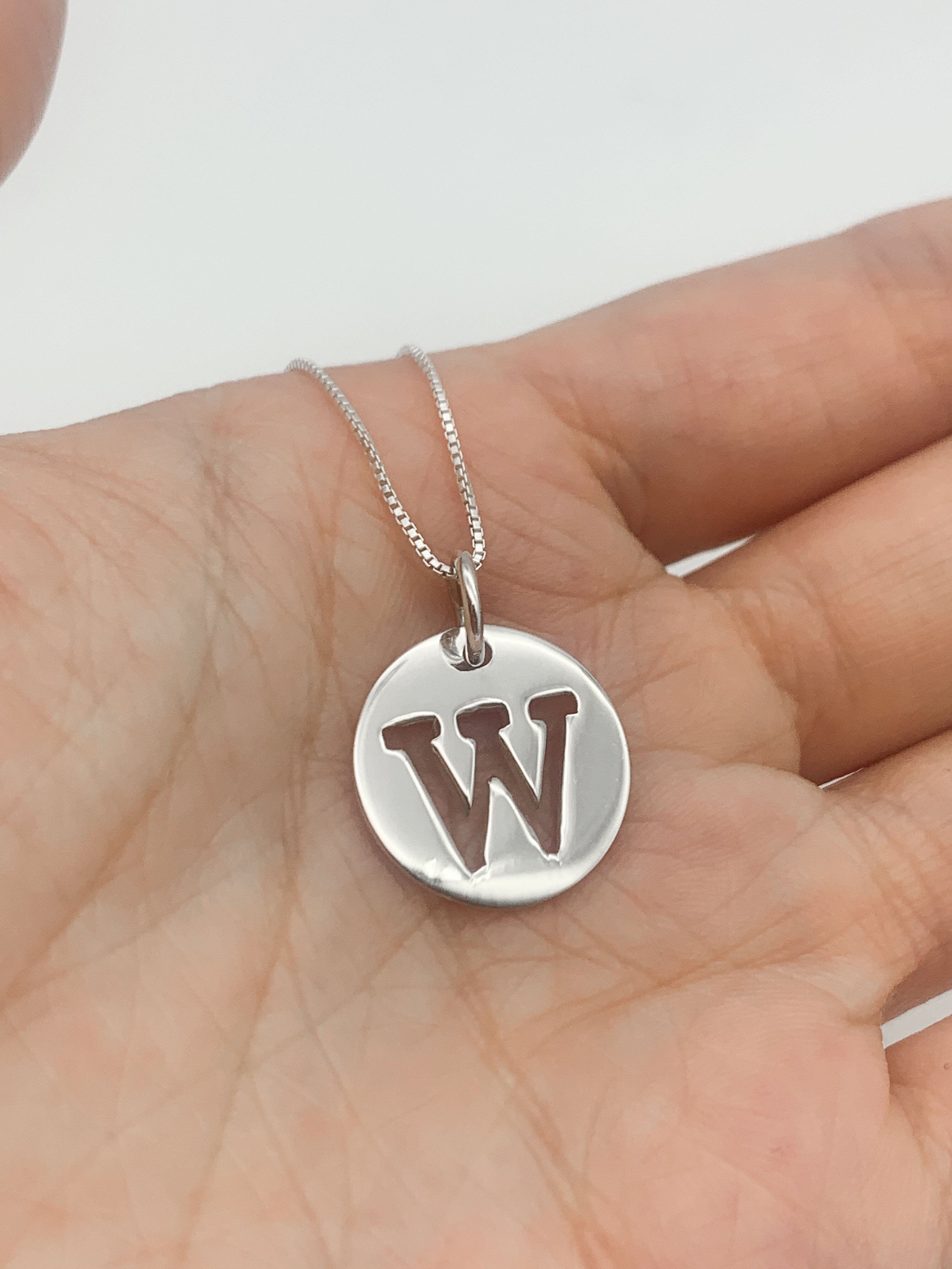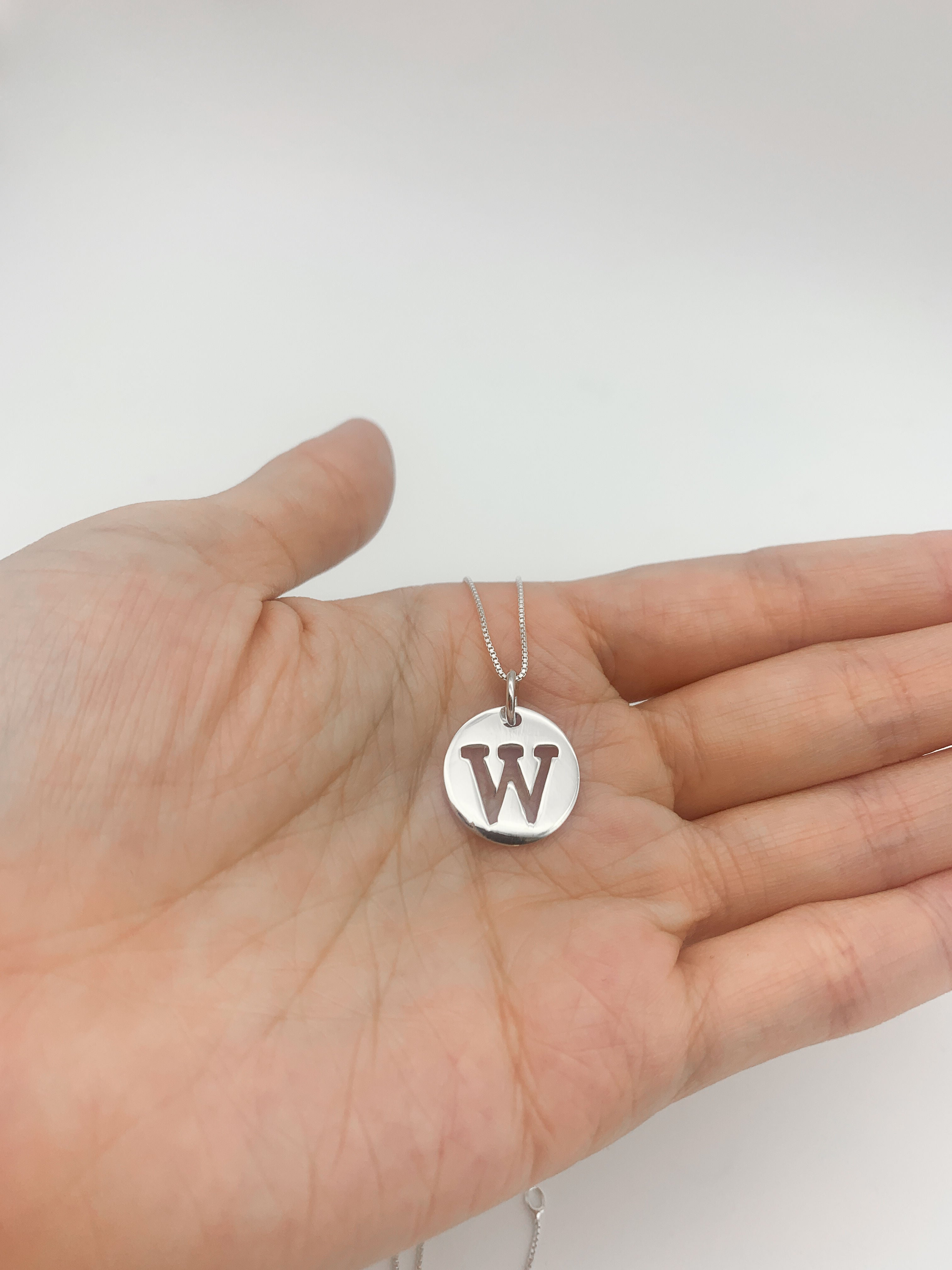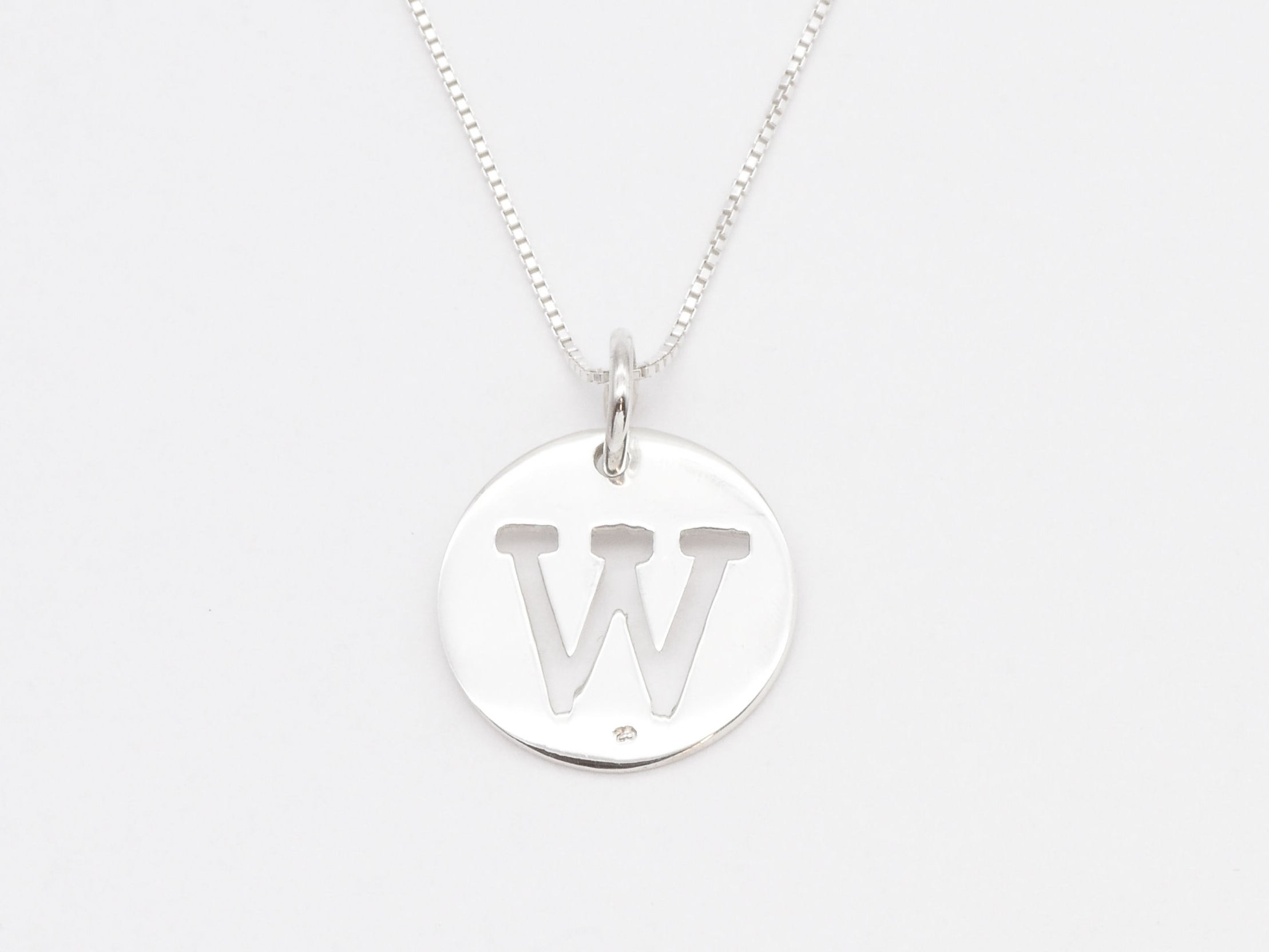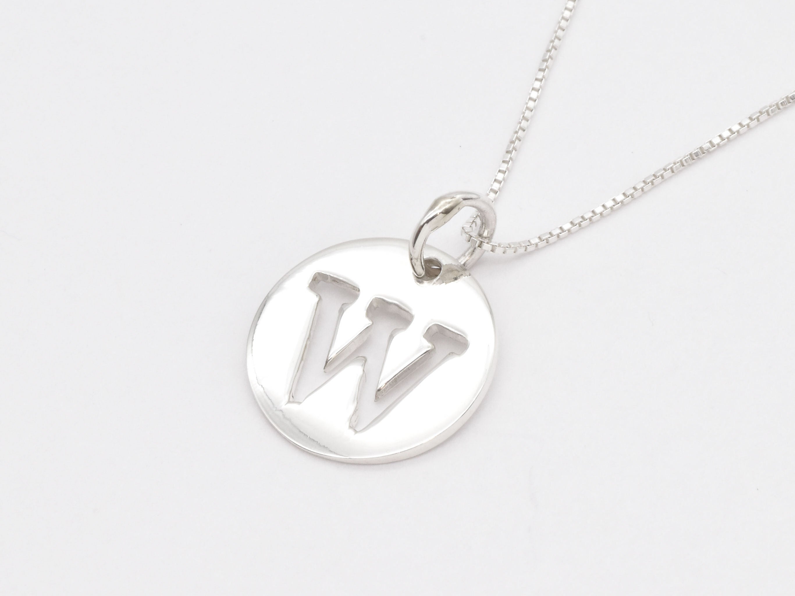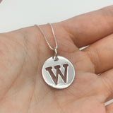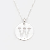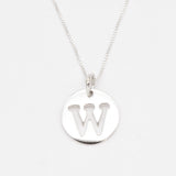 Letter W Pendant - Silver Disc Necklace, Alphabet Letter Pendant