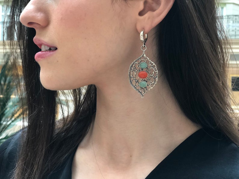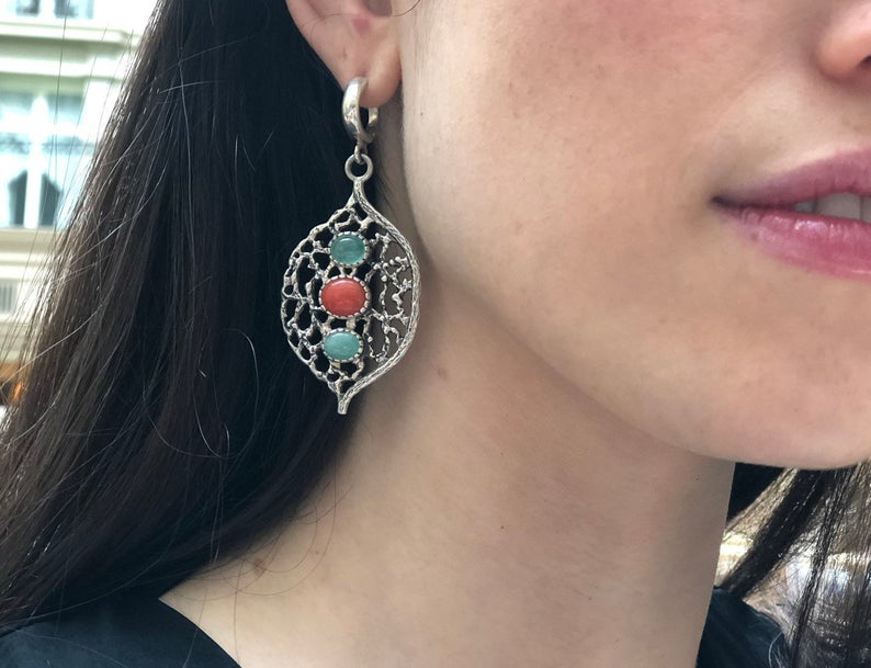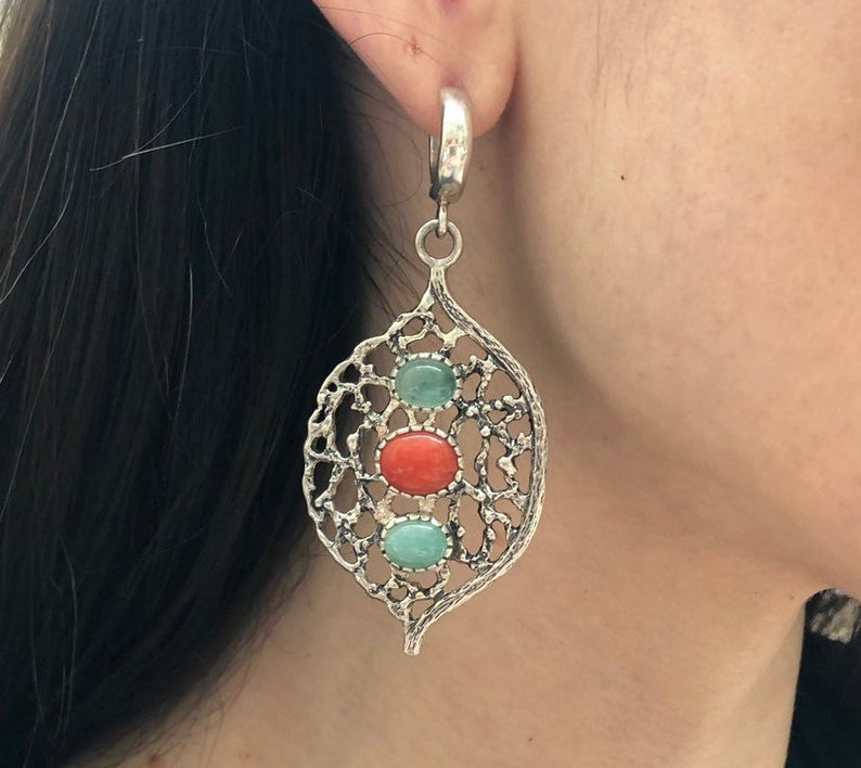 Large Emerald Earrings - Natural Emerald Earrings - Heavy Dangling Earrings