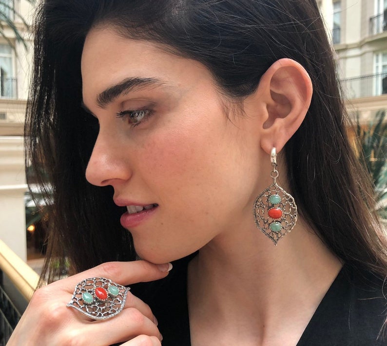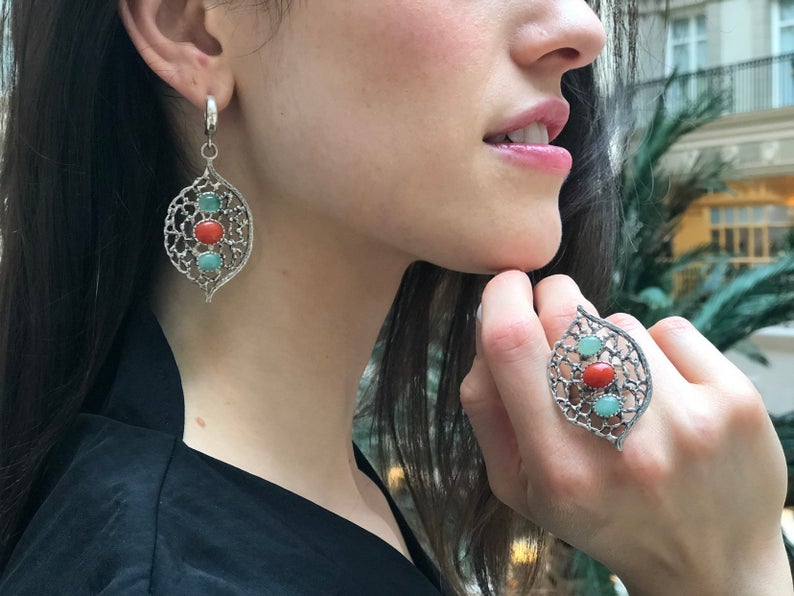 • Natural Coral (Sardinia) & Natural Emerald (Burma)