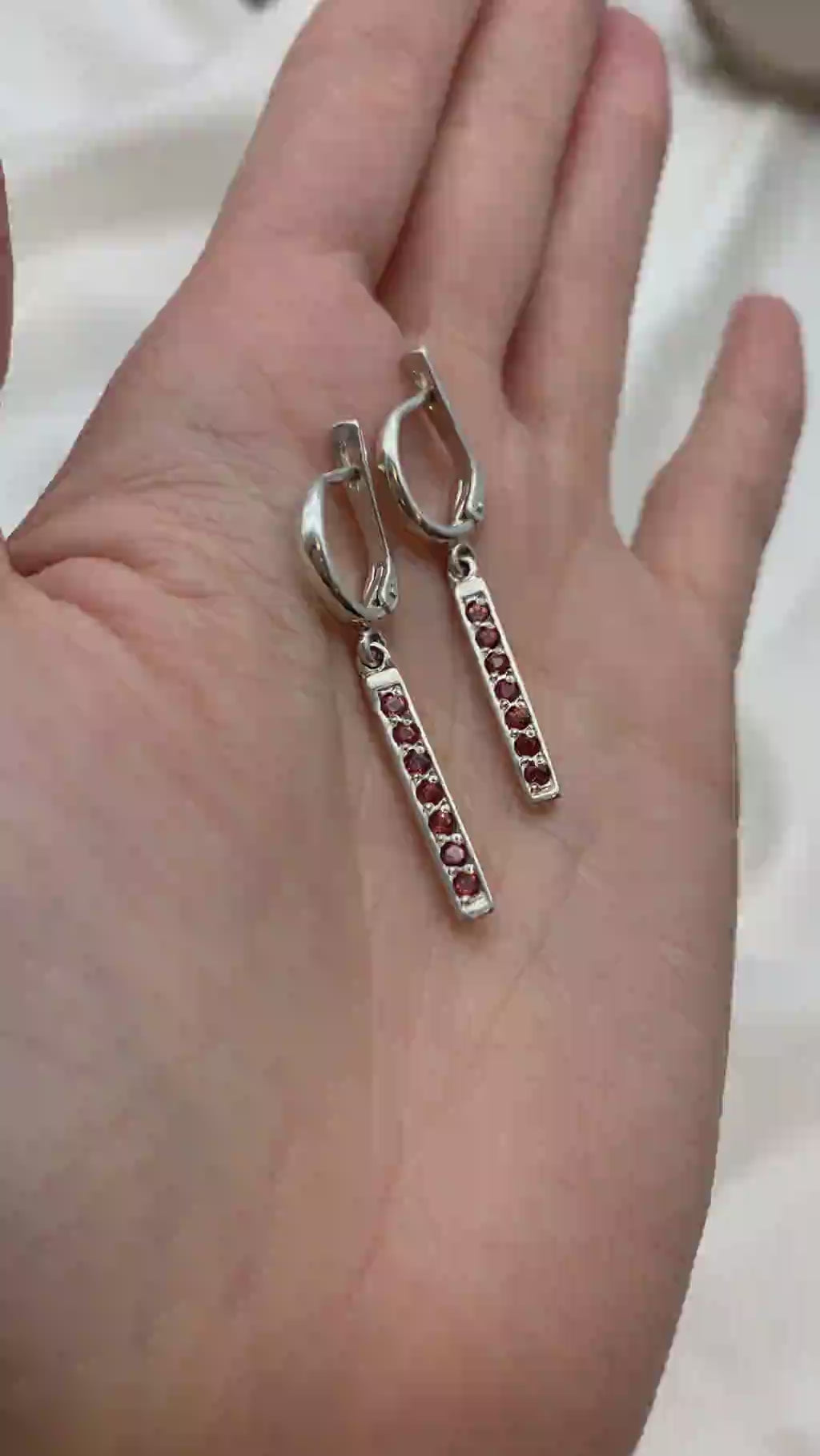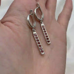 Long Garnet Earrings - Dangling Garnet Earrings, Silver Bar Earrings