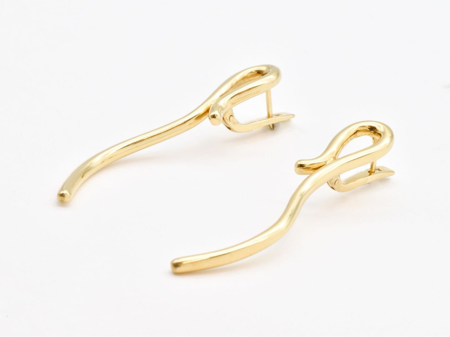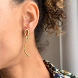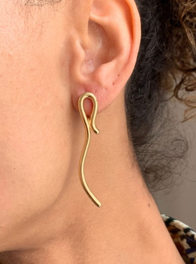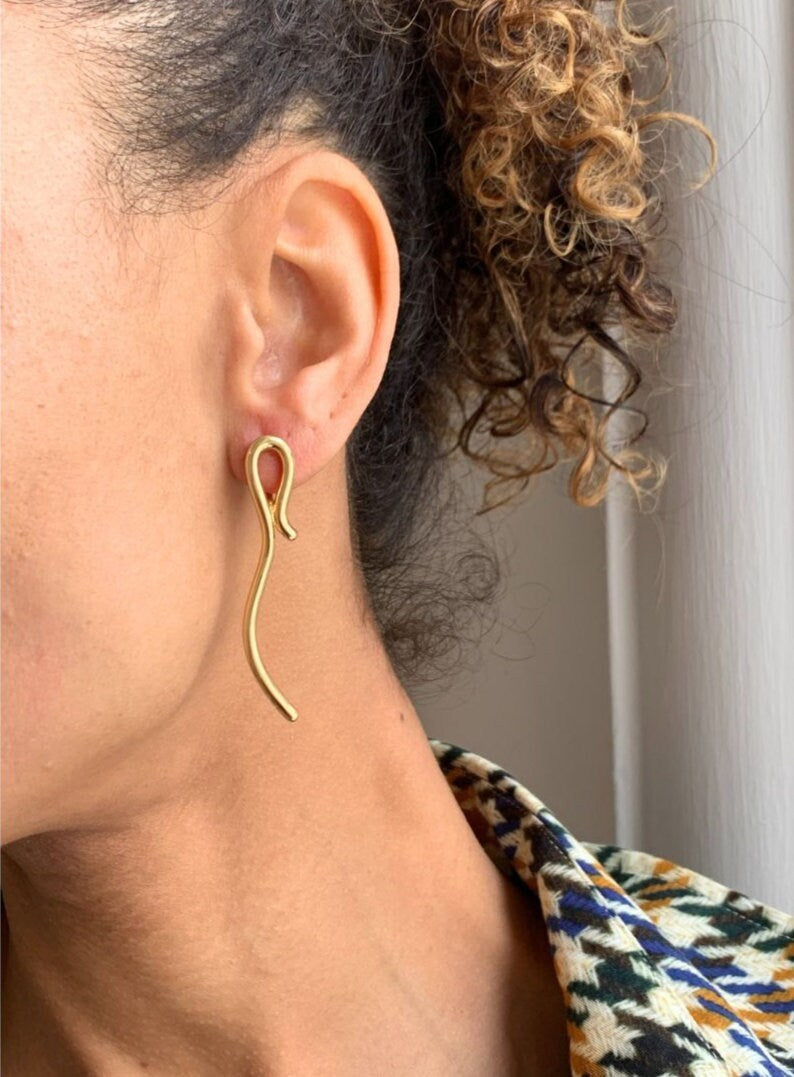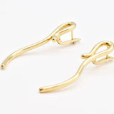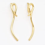 Long Gold Curvy Earrings - Artistic Gold Earrings, Unique Gold Earrings