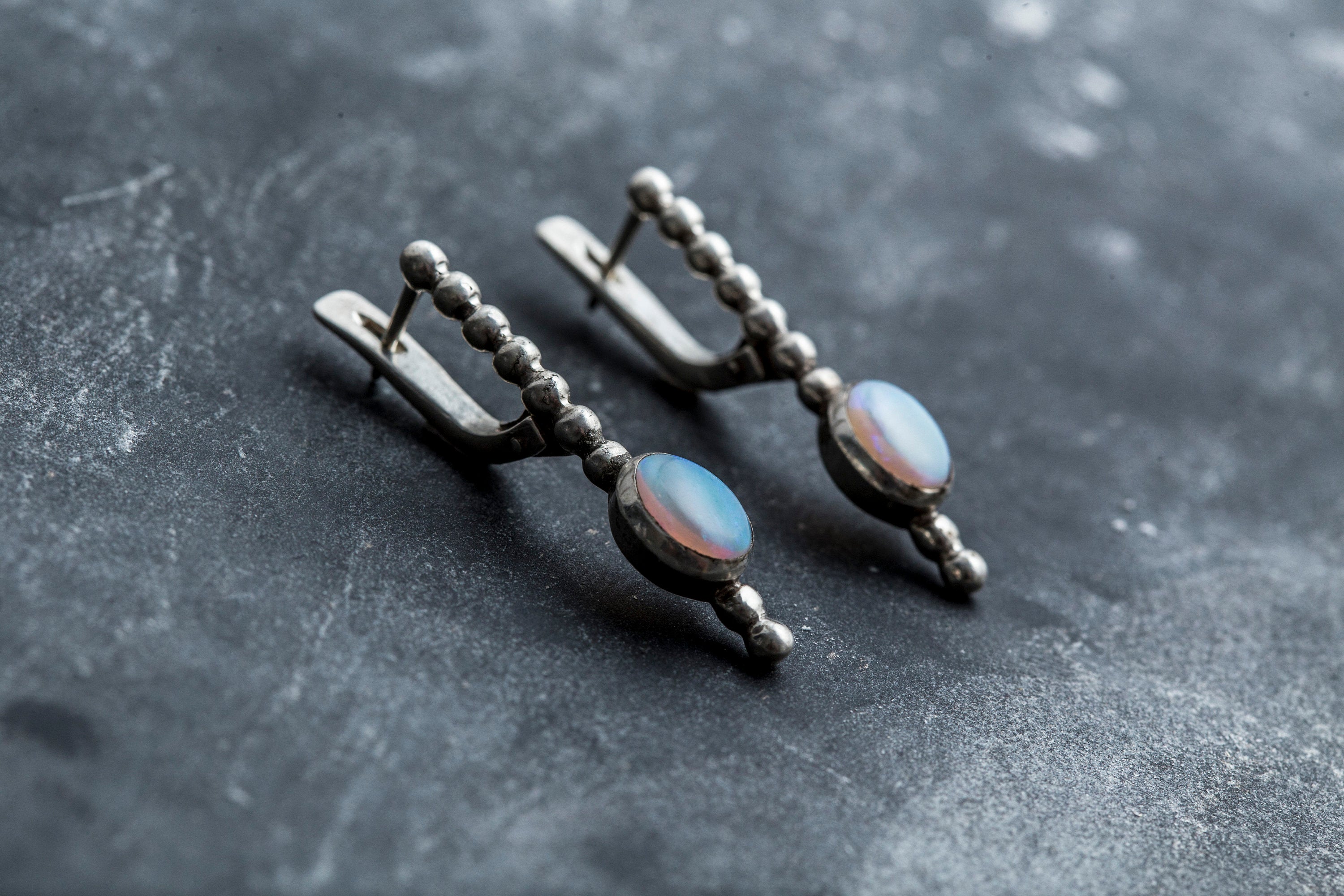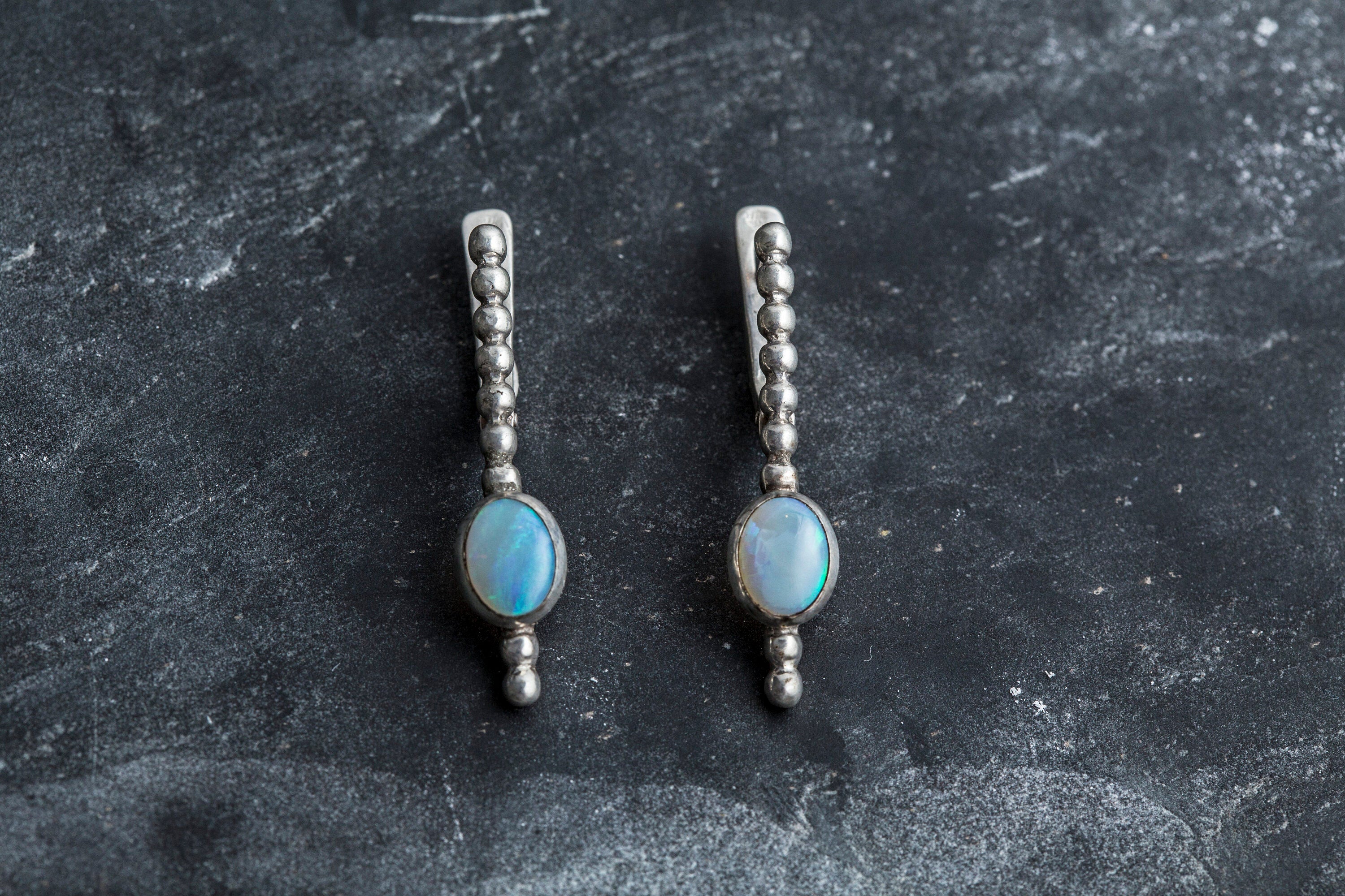 Long Opal Earrings, Opal Earrings, Natural Opal, October Birthstone, Australian Opal, Unique Design, Rainbow Opal, Silver Earrings, Opal