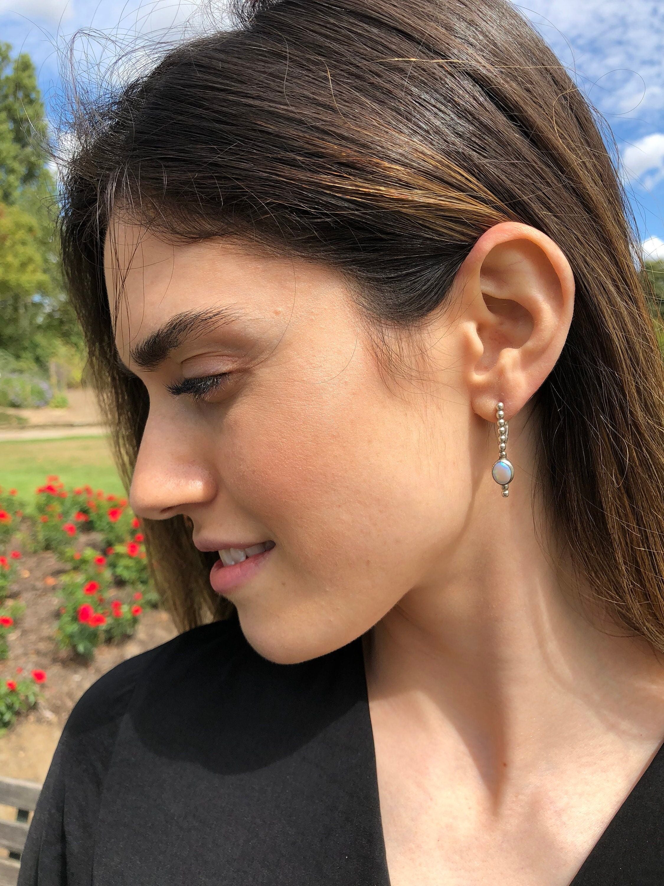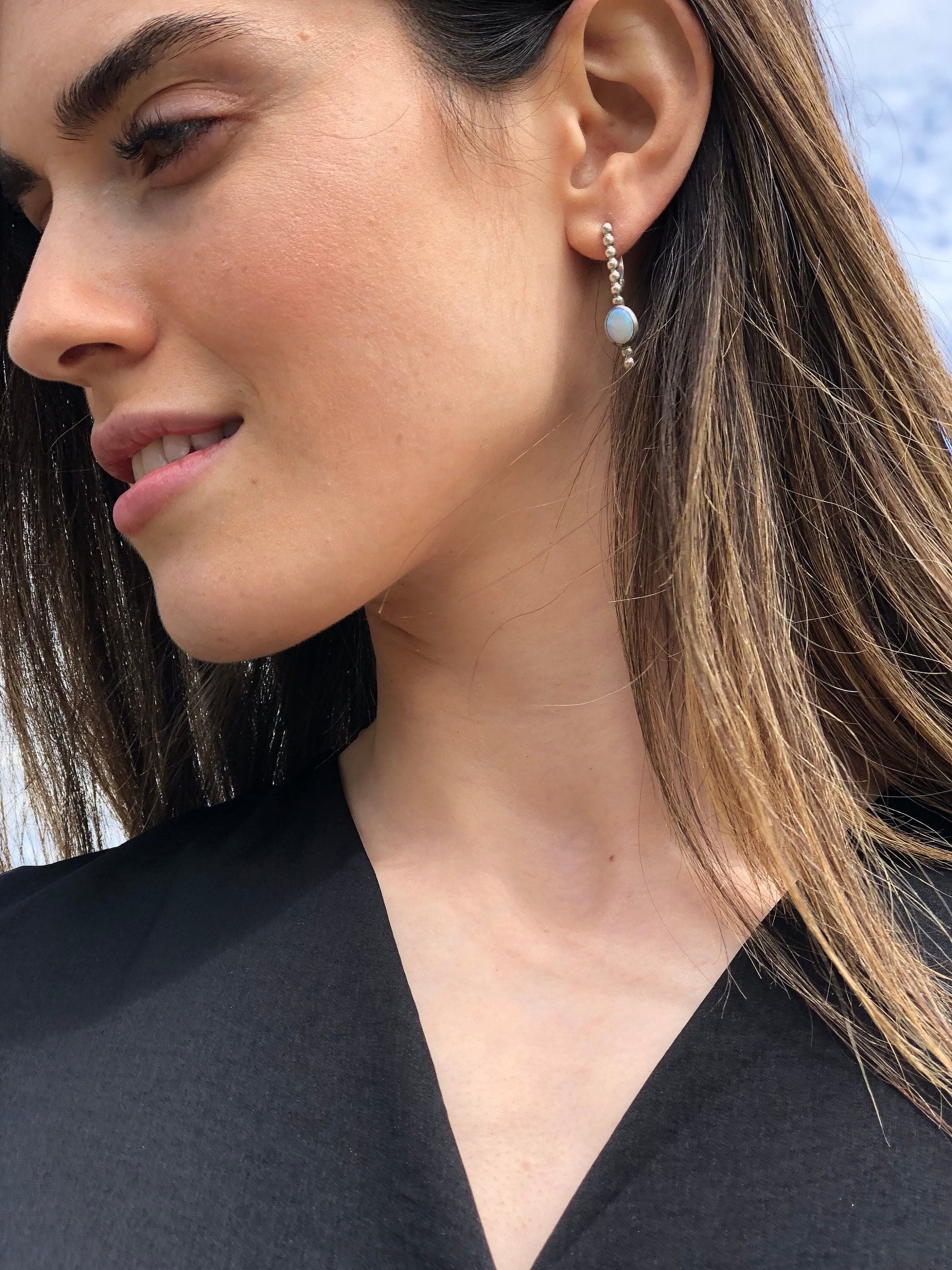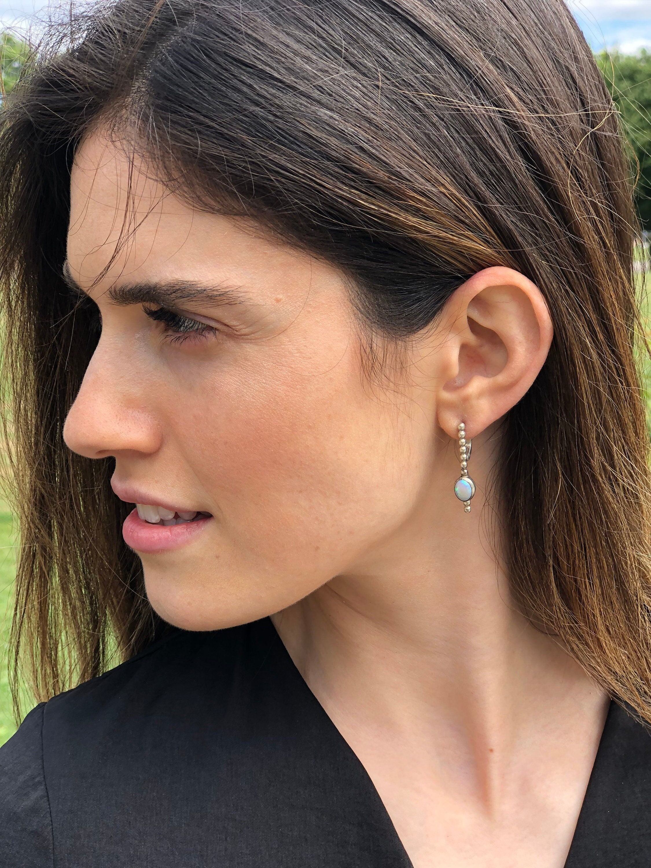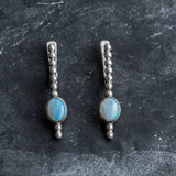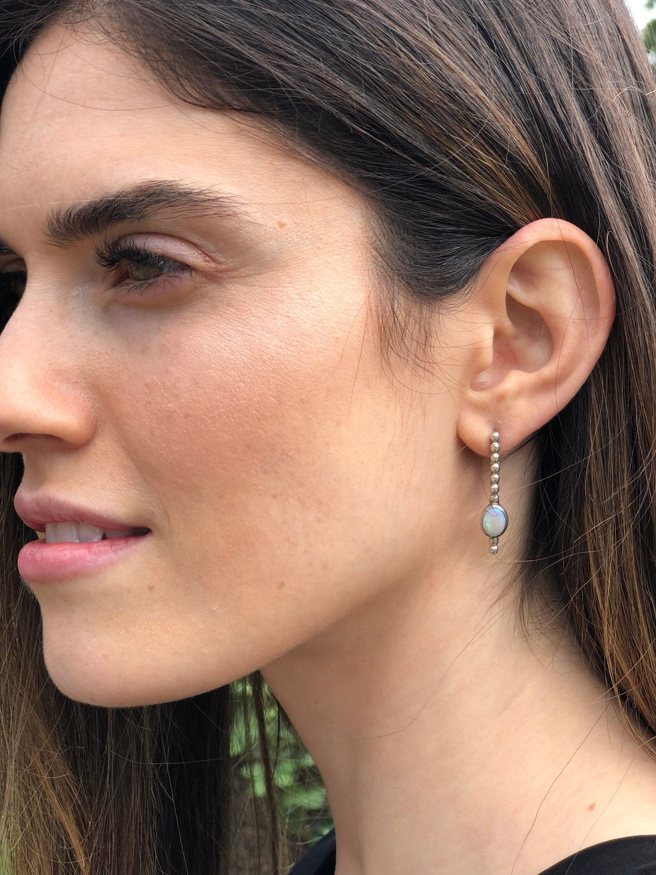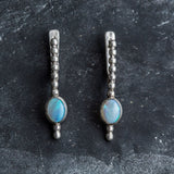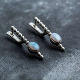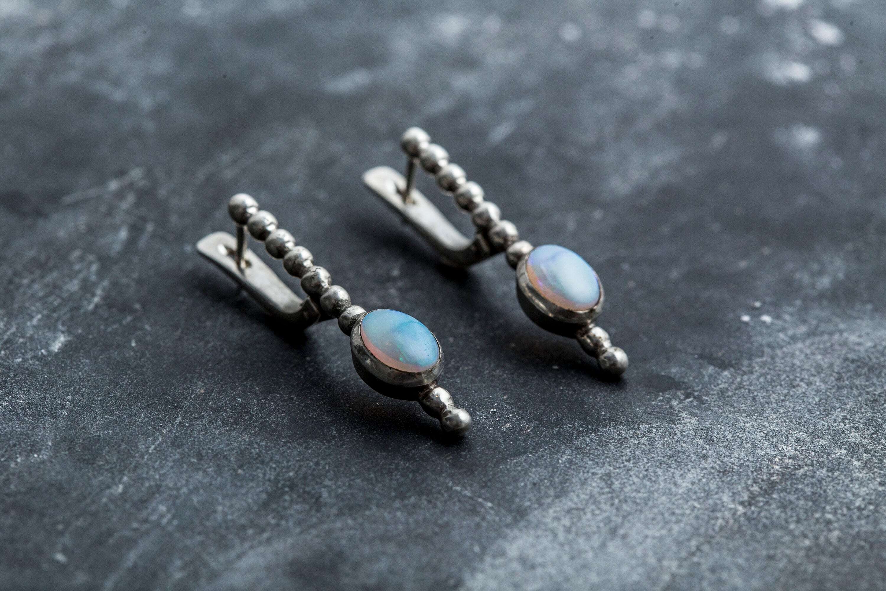 Long Drop Earrings - Genuine Opal Earrings - White Oval Earrings