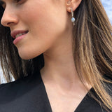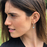 Long Drop Earrings set with a Natural Australian Opal with natural stunning fire patterns, at 8x6mm each (4 Cts a pair) from Australia.