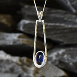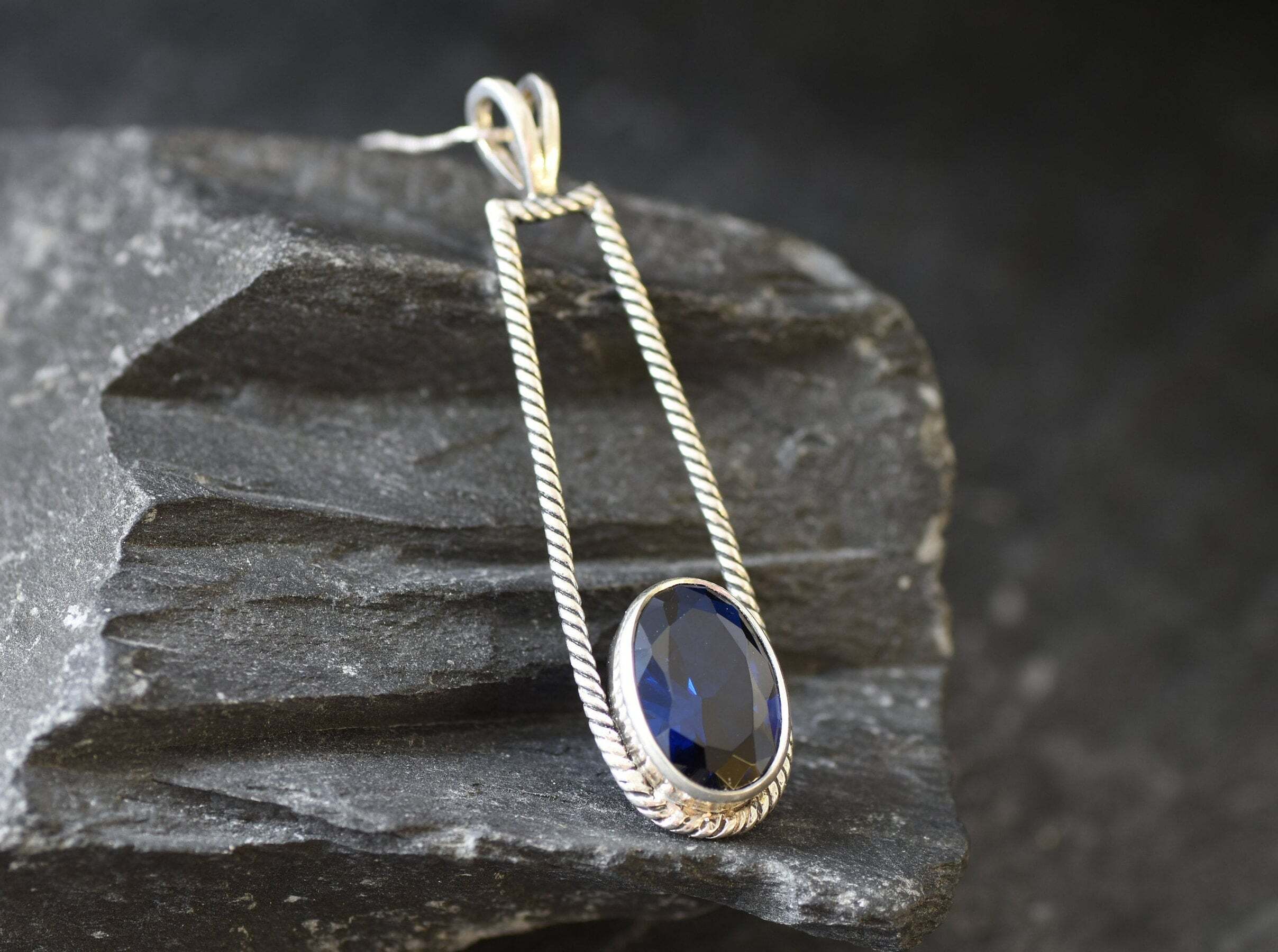 Long Sapphire Pendant - Blue Statement Necklace - Vintage Oval Necklace