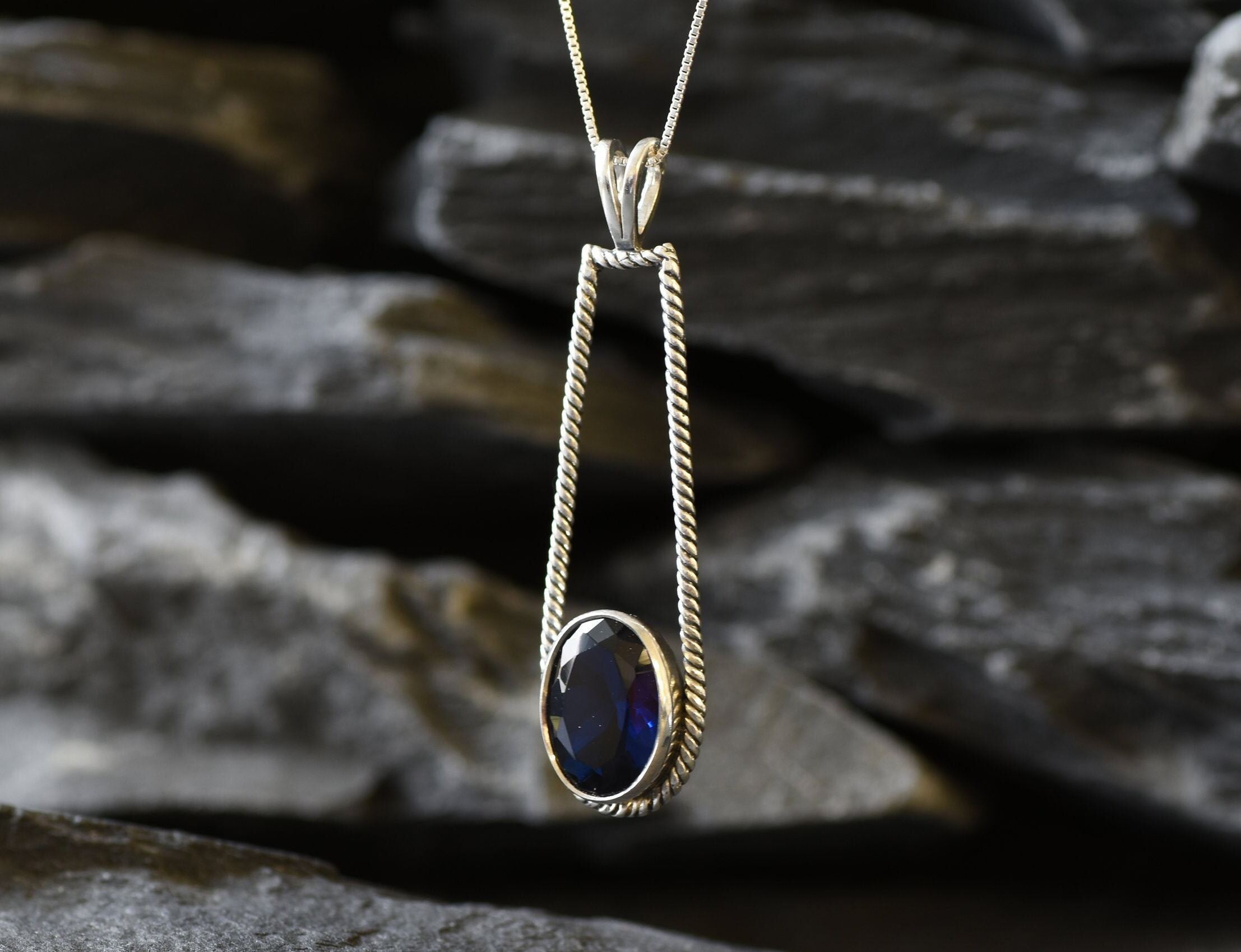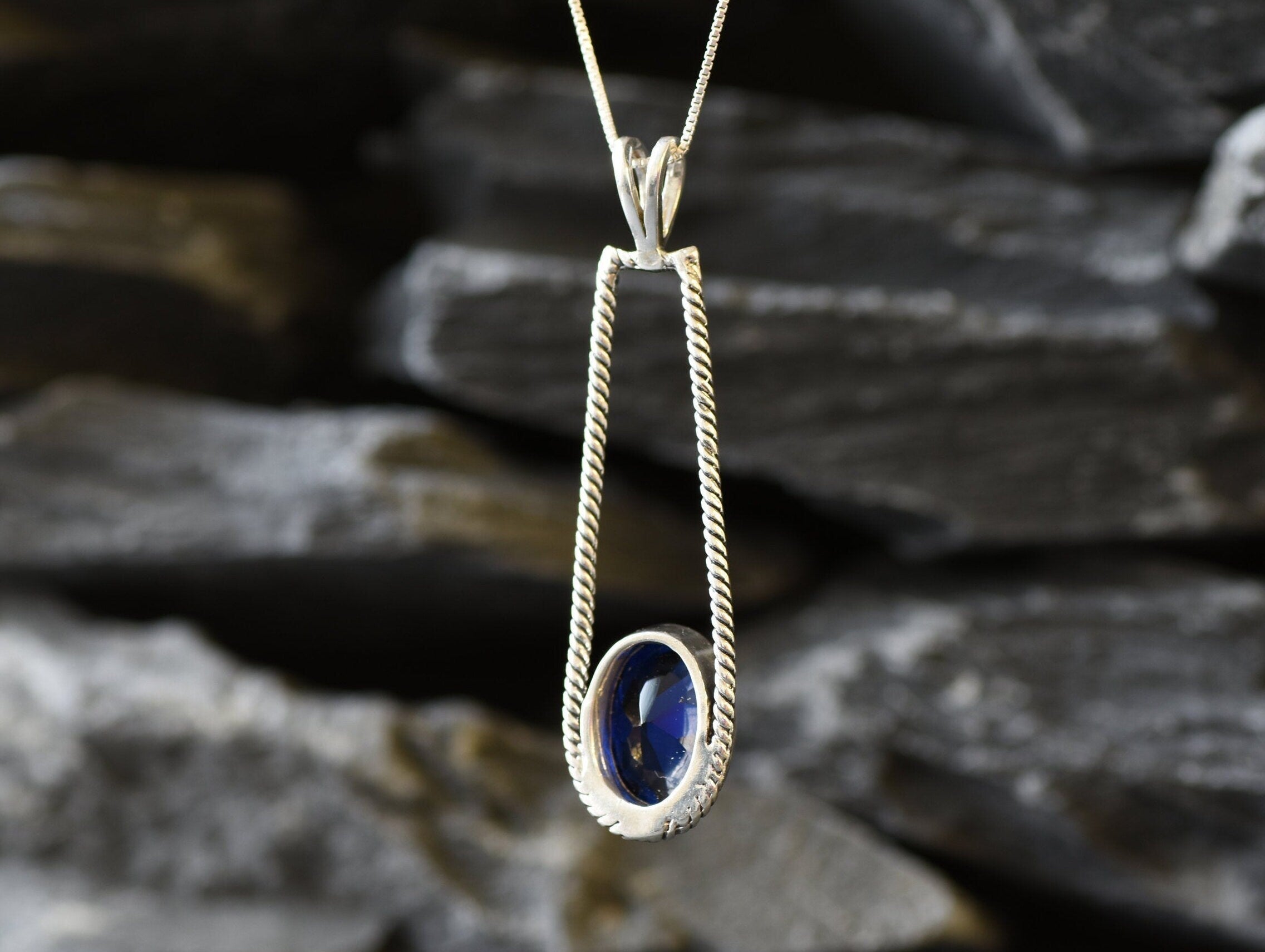 Created Sapphire Pendant made in 925 Sterling Silver with Oval Created Blue Sapphire in Bezel setting, September Birthstone gift idea, symbolizes sincerity, truth, and faithfulness, ideal for everyday wear and perfect for birthday gifting and special occasions.