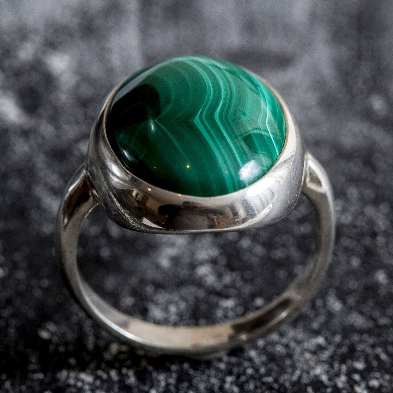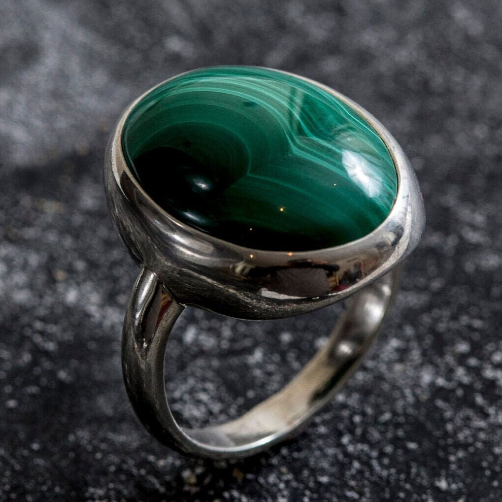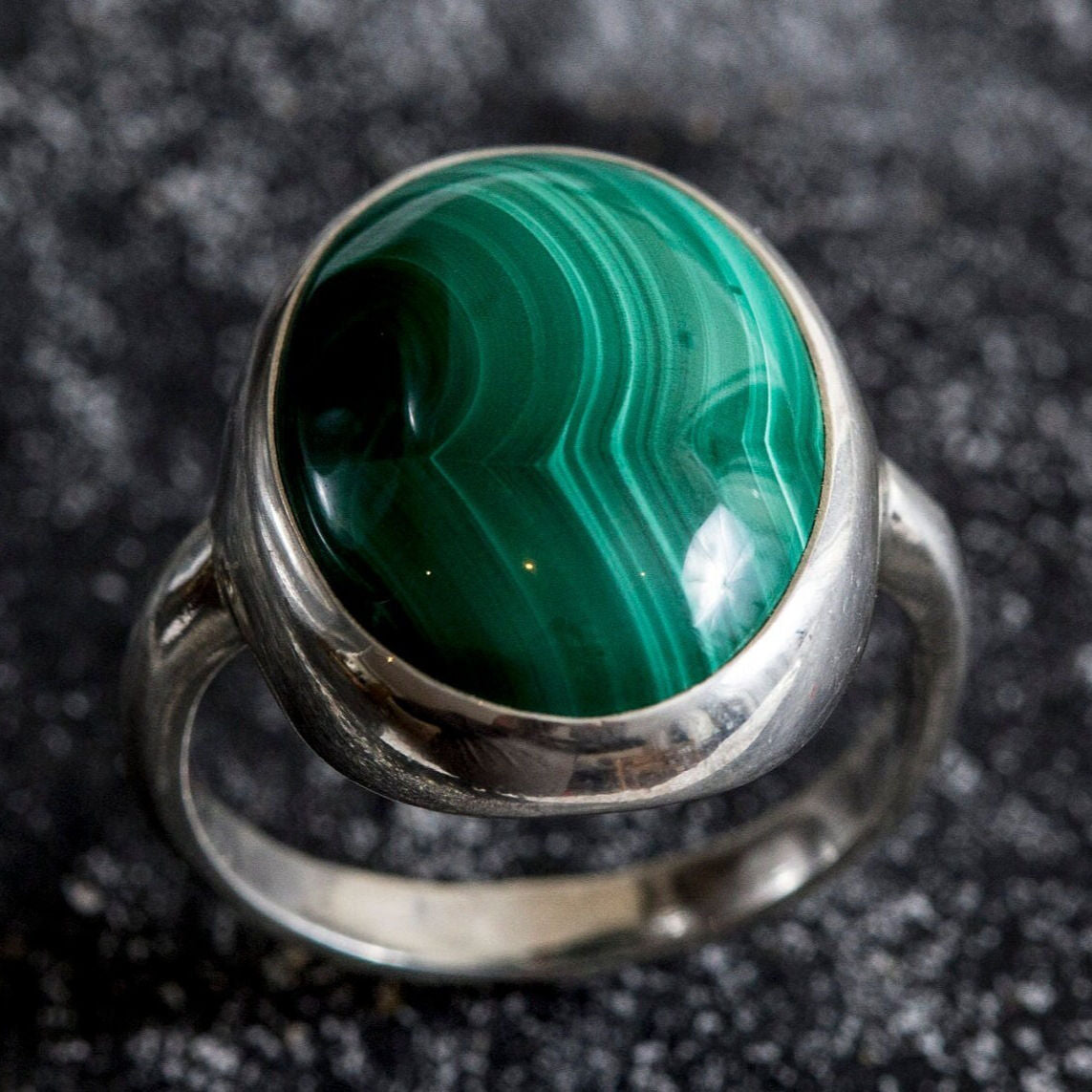 Large Malachite Ring, Natural Malachite, Green Malachite Ring, Vintage Rings, Large Stone Ring, Green Ring, Solid Silver Ring, Malachite
