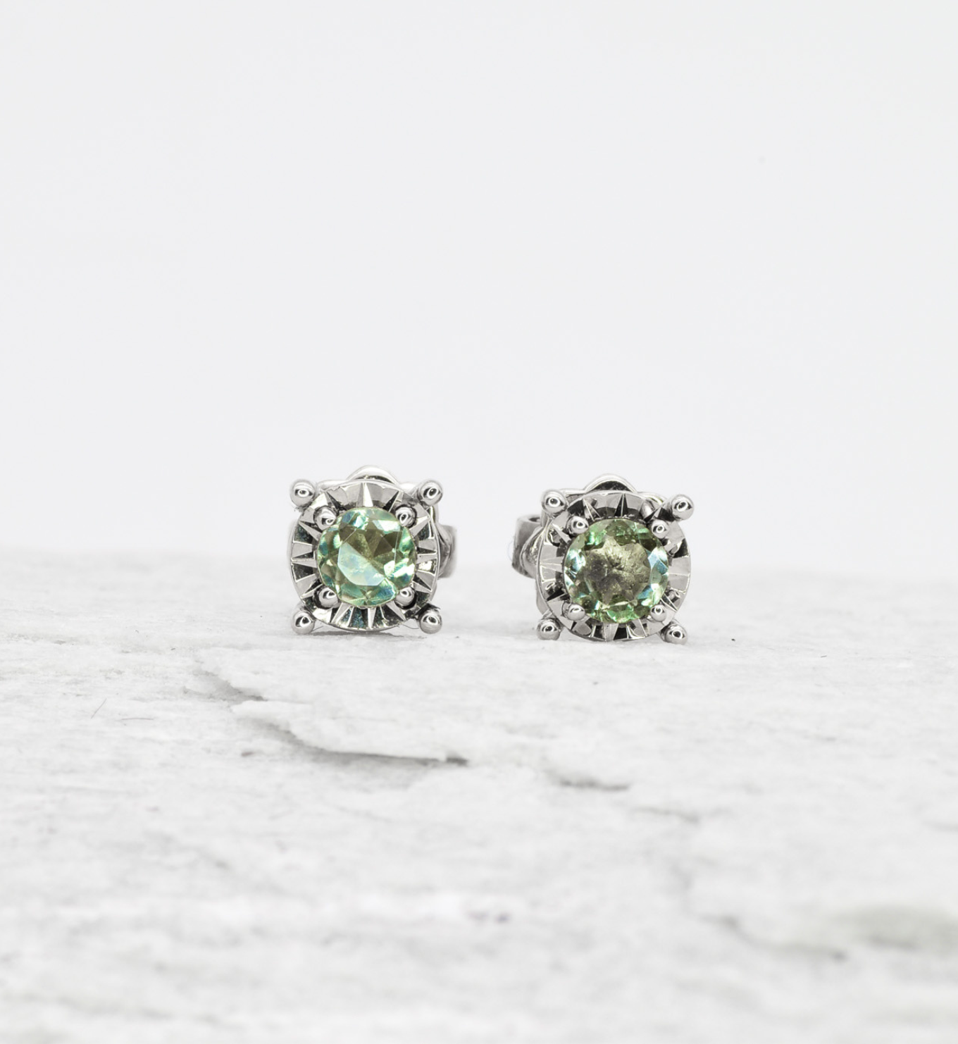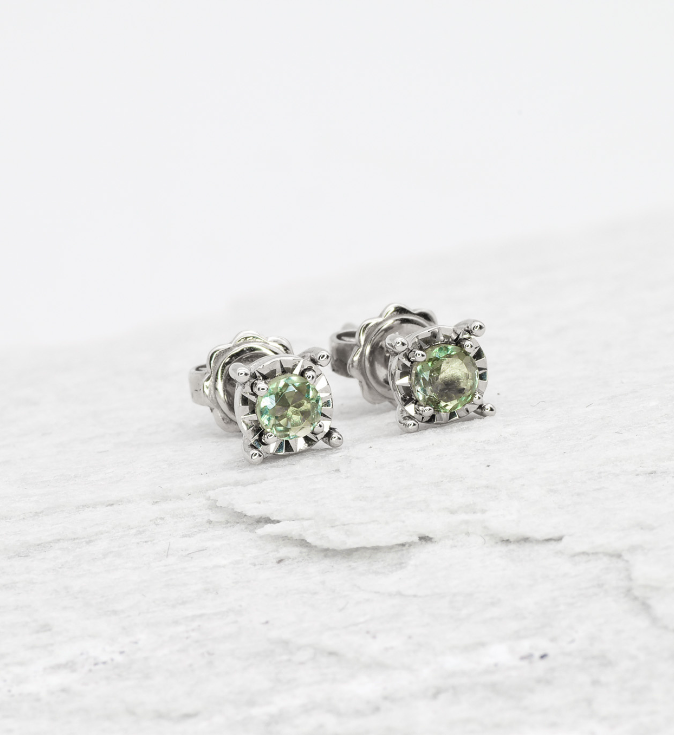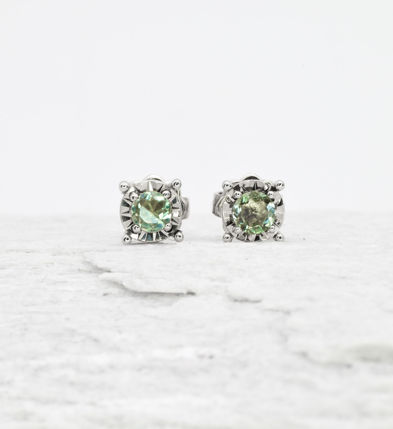 Minimalist Aquamarine Studs - Genuine Aquamarine Earrings - 18k White Gold Earrings