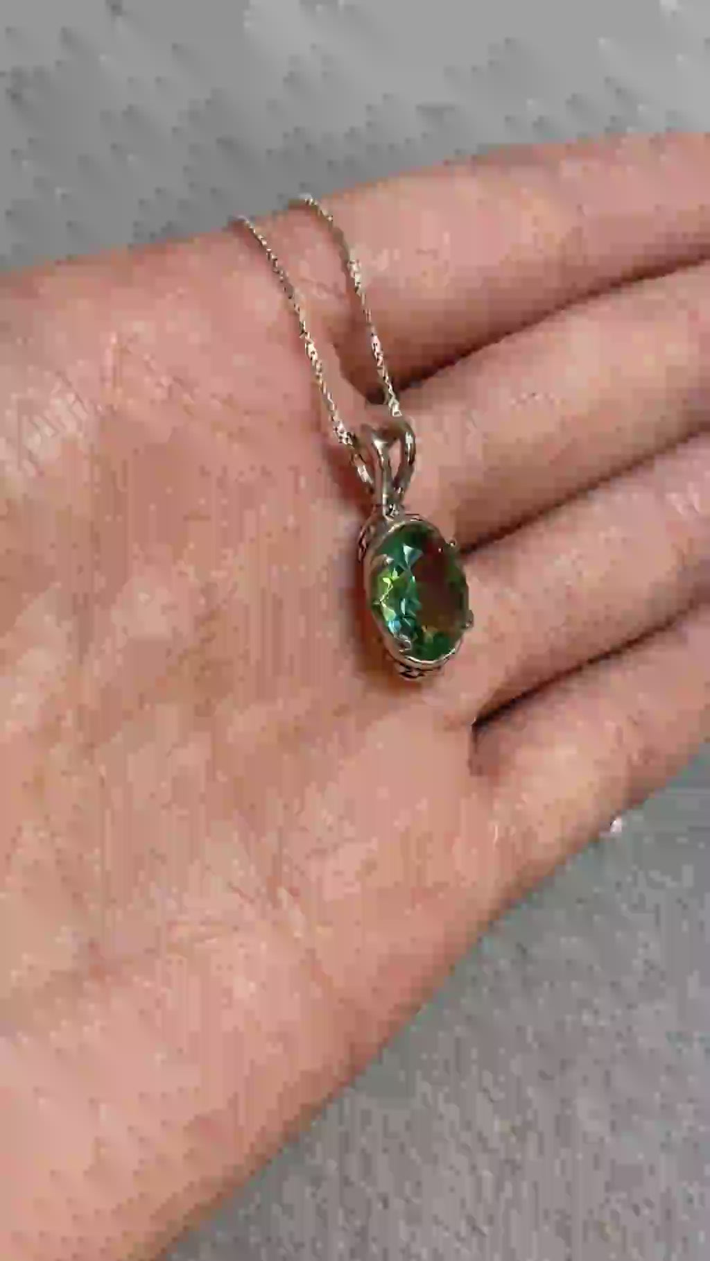 Mint Emerald Pendant set with a Created Mint Emerald in a flawless diamond cut & green color, at 10x8mm size, (3 Cts). Solid 925 Sterling Silver ☞ made to last Click here for ☞