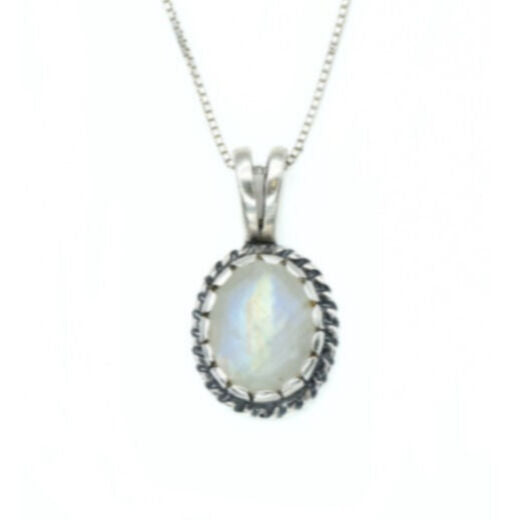 Vintage Moonstone Pendant - Rainbow Moonstone Necklace - White Oval Necklace