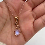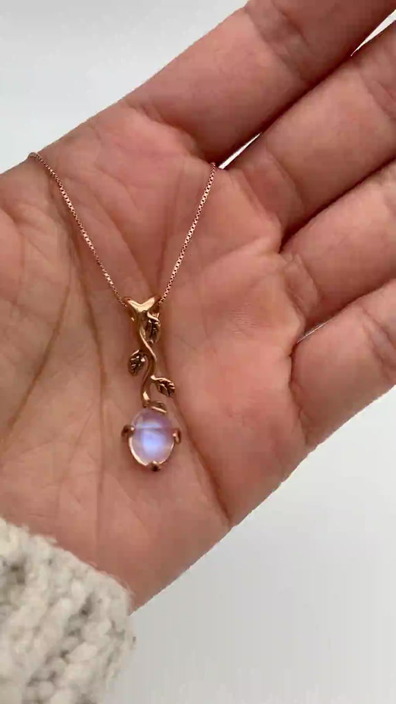 Moonstone Pendant - Natural Moonstone Necklace - Pink Leaf Pendant
