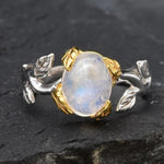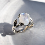 Rainbow Moonstone Ring, Leaf Ring, Vintage Ring, June Birthstone, Natural Moonstone Ring, Flower Ring, Silver Branch Ring, Solid Silver Ring(1)