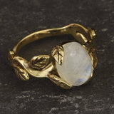 Gold Moonstone Ring - Genuine Moonstone Ring - Pink Leaf Ring