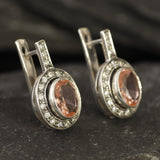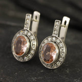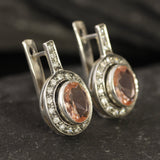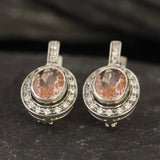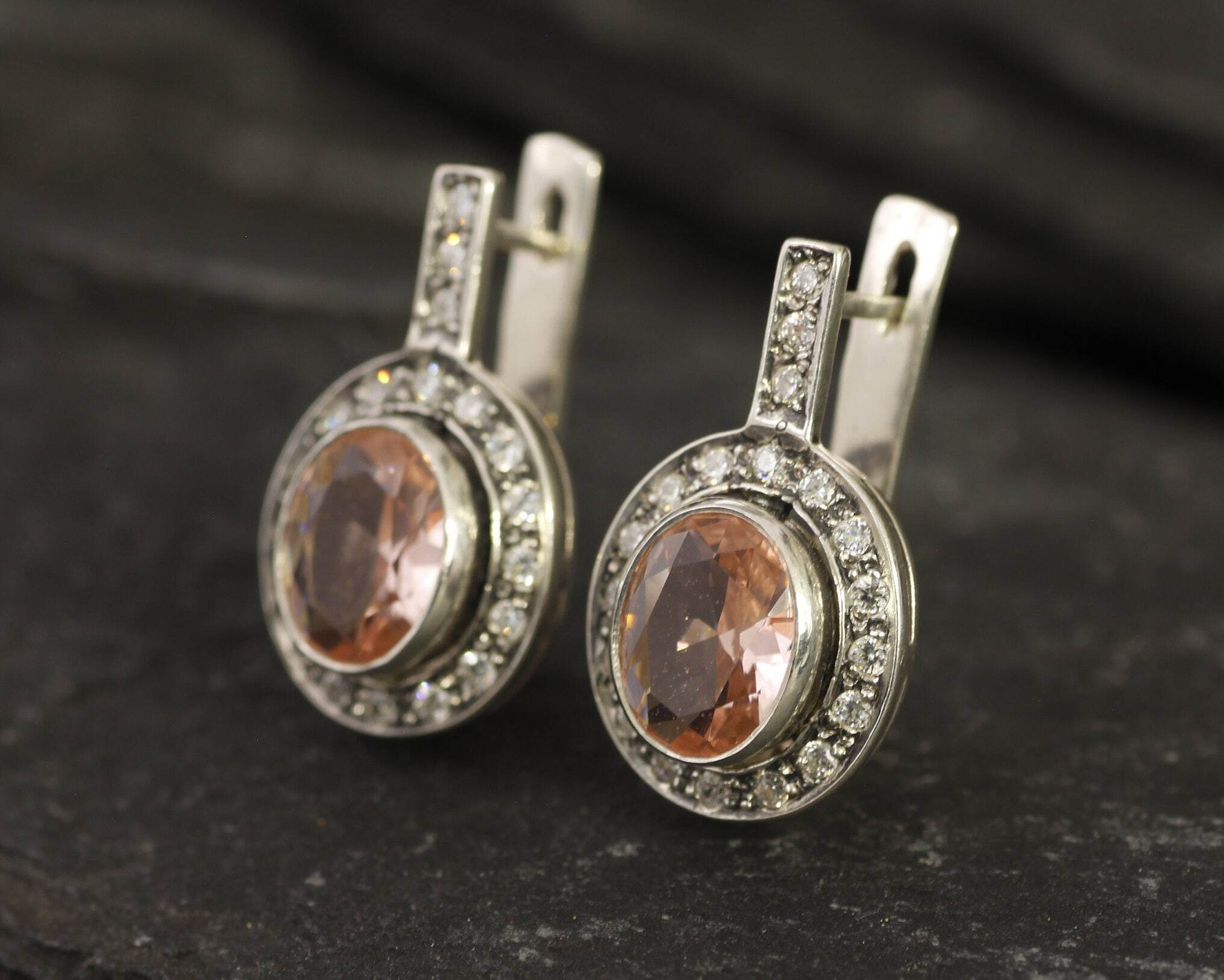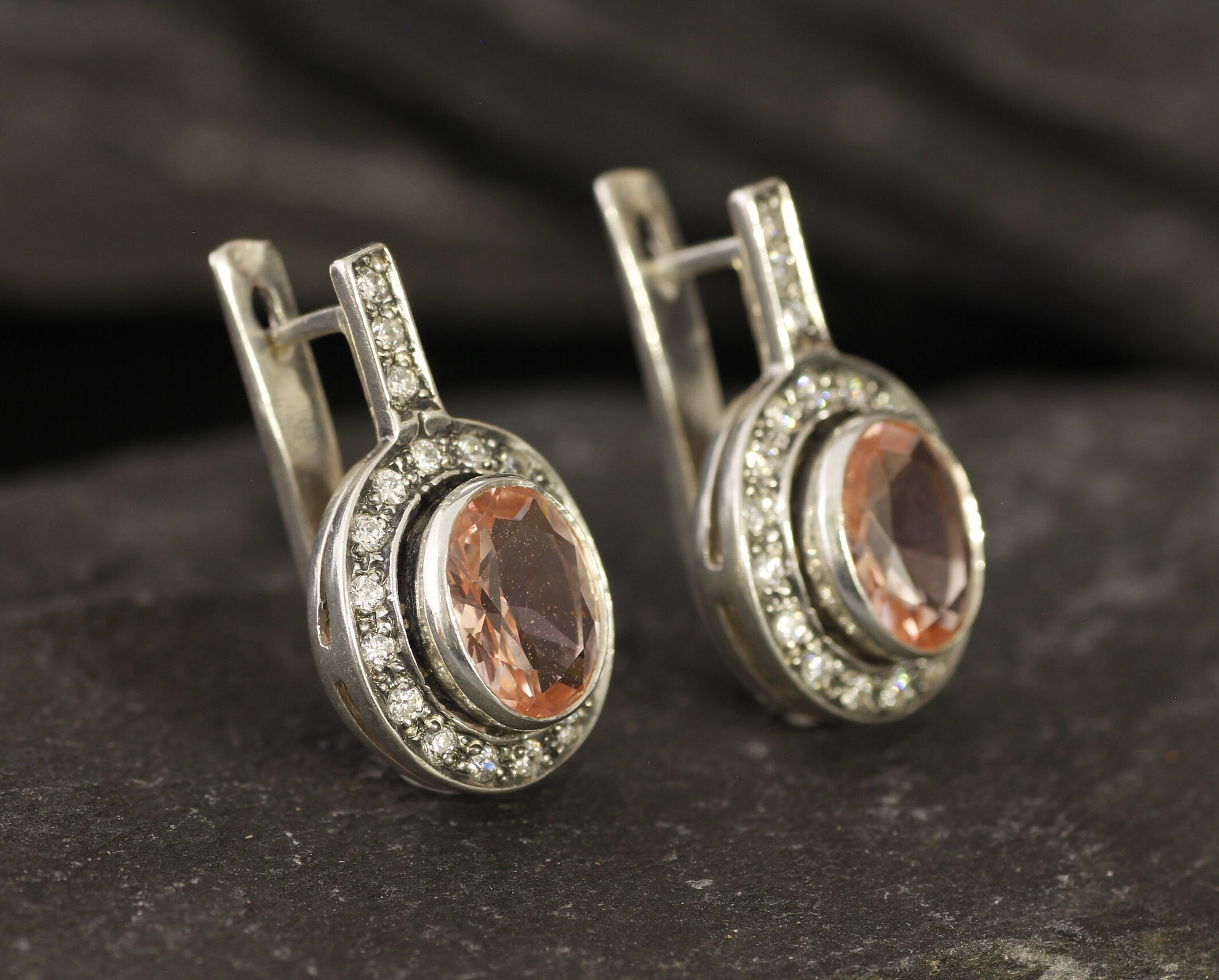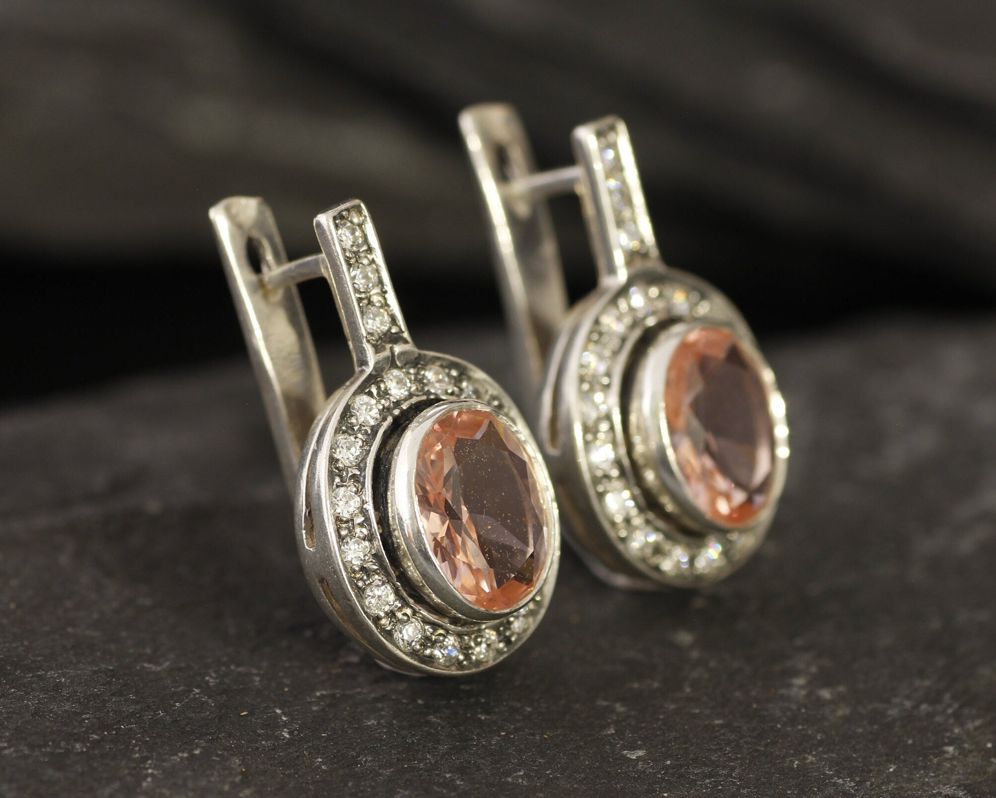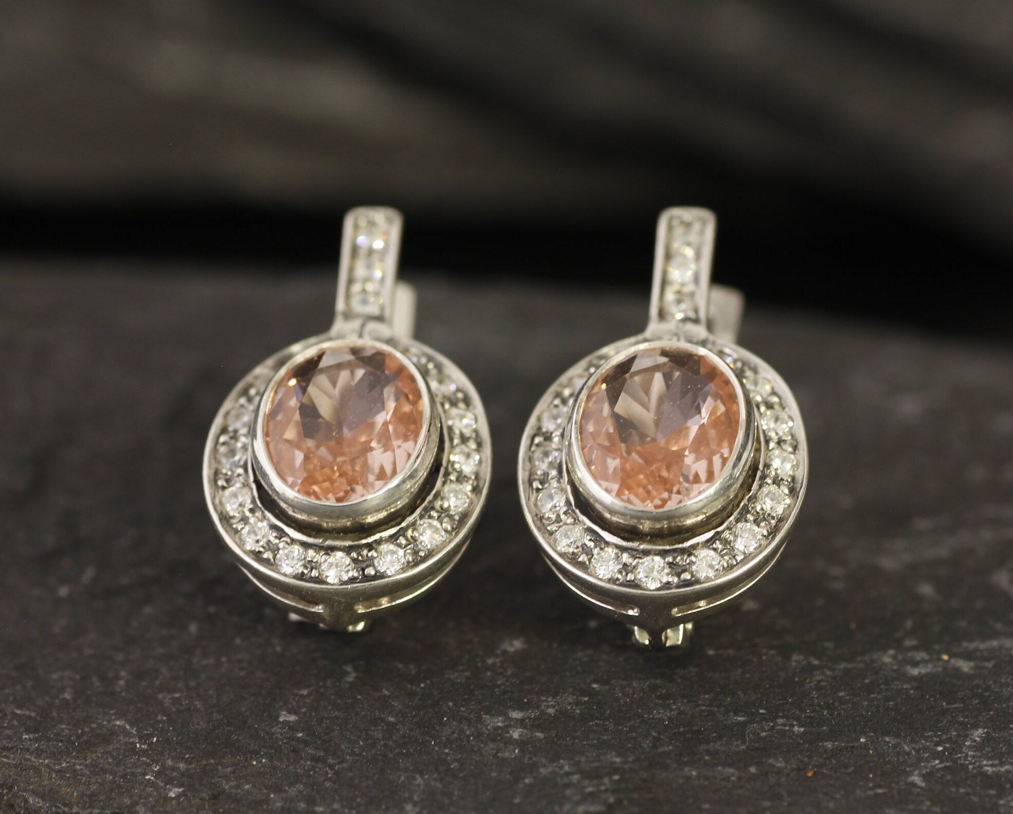 Morganite Earrings, Created Morganite, Victorian Earrings, Vintage Earrings, Pink Diamond Earrings, Pink Morganite, Solid Silver Earrings