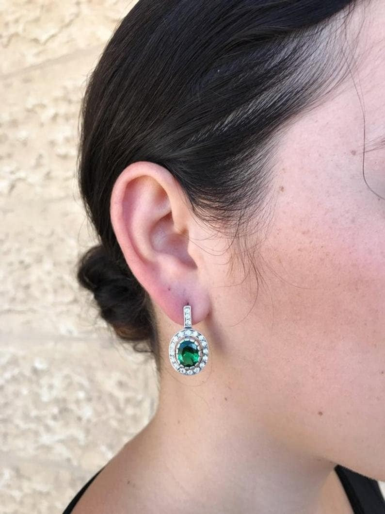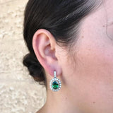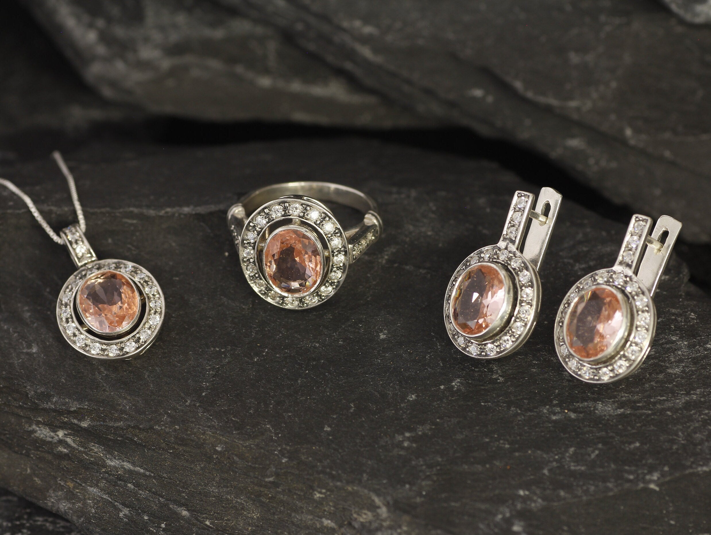 Pink Morganite Earrings set with Created Morganite in a top grade, perfect diamond cut & flawless clarity, at 10x8mm each (6 Cts a pair) surrounded with small CZ Diamonds.