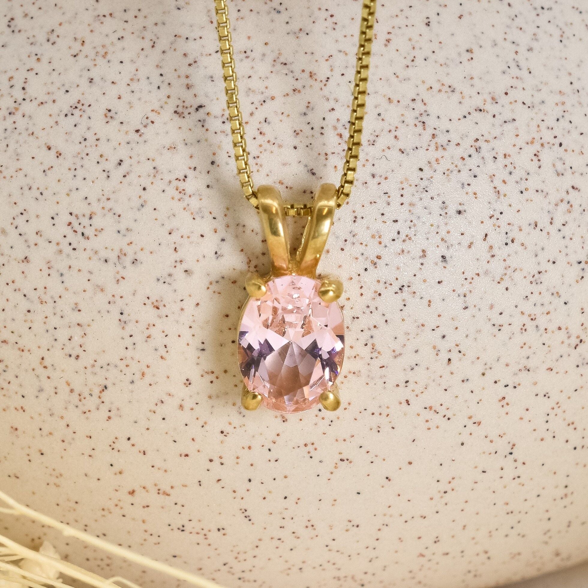 Morganite Pendant, Created Morganite, Pink Dainty Pendant, Pink Oval Pendant, Pink Diamond Pendant, Dainty Pendant, Pink Pendant, 925 Silver