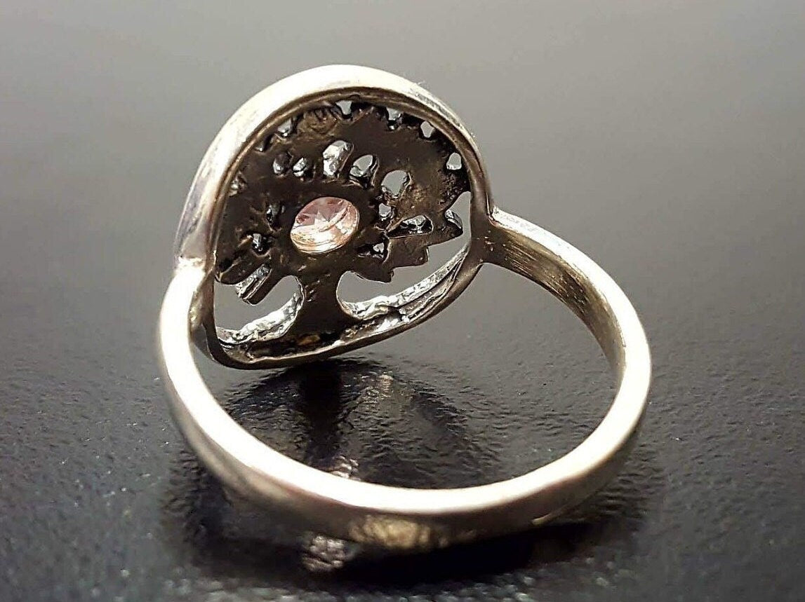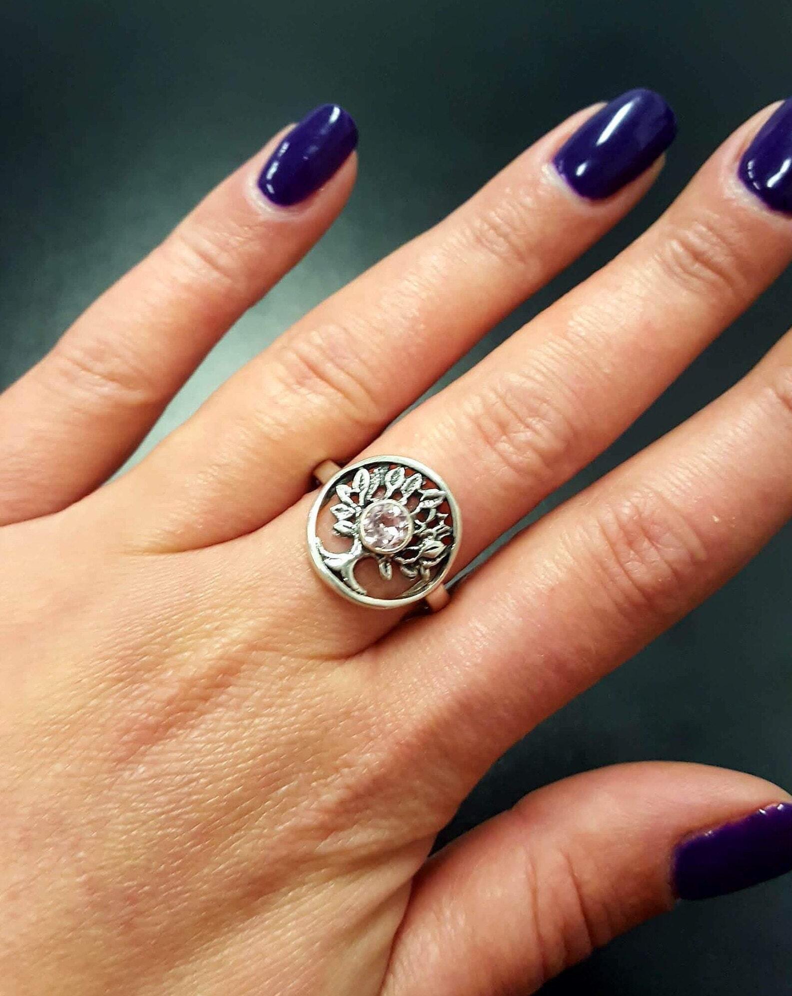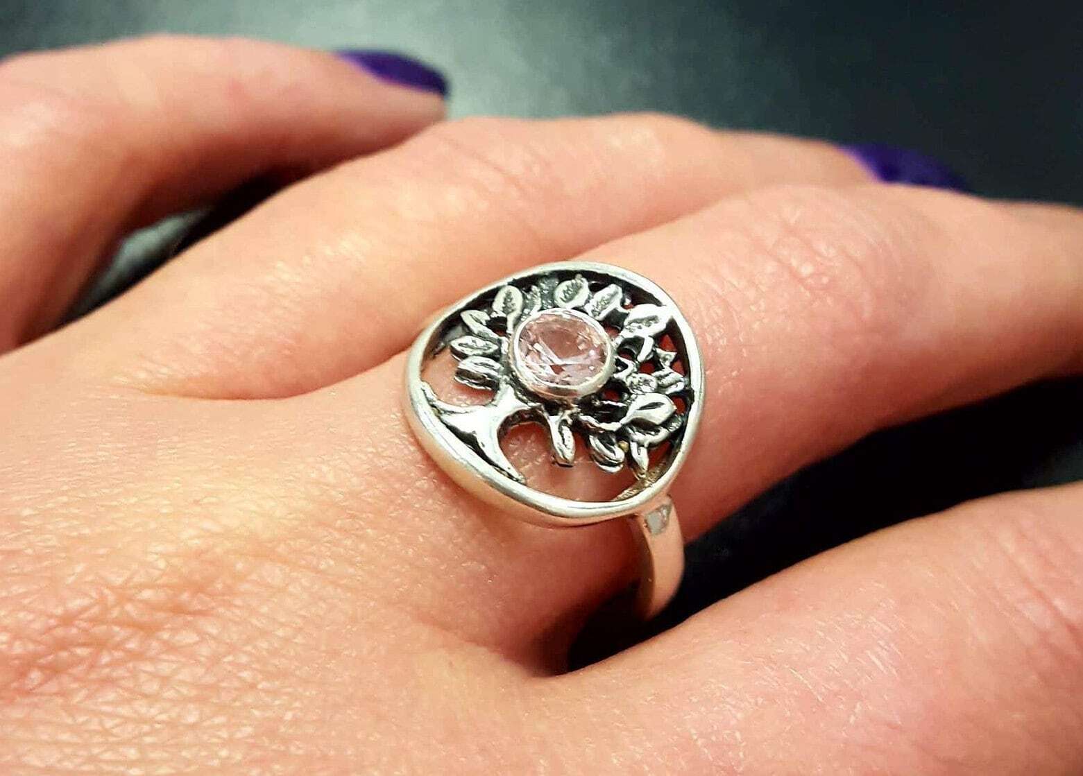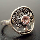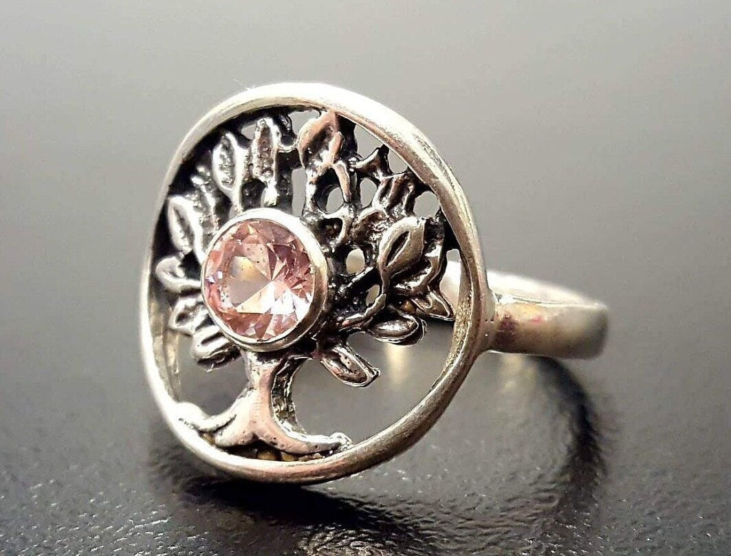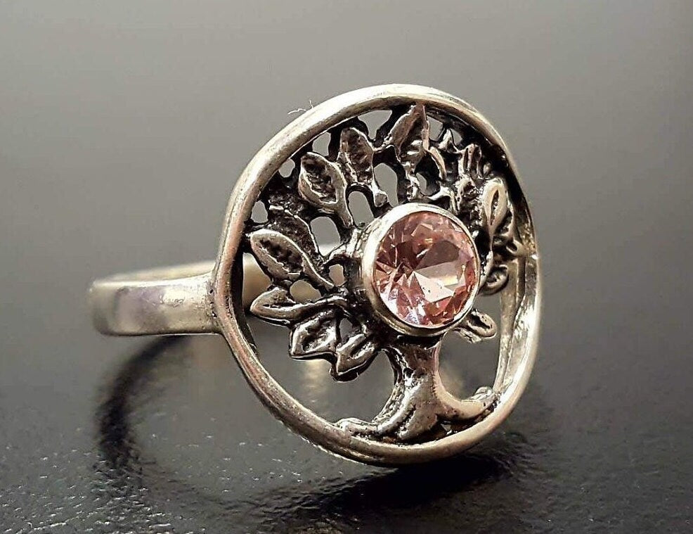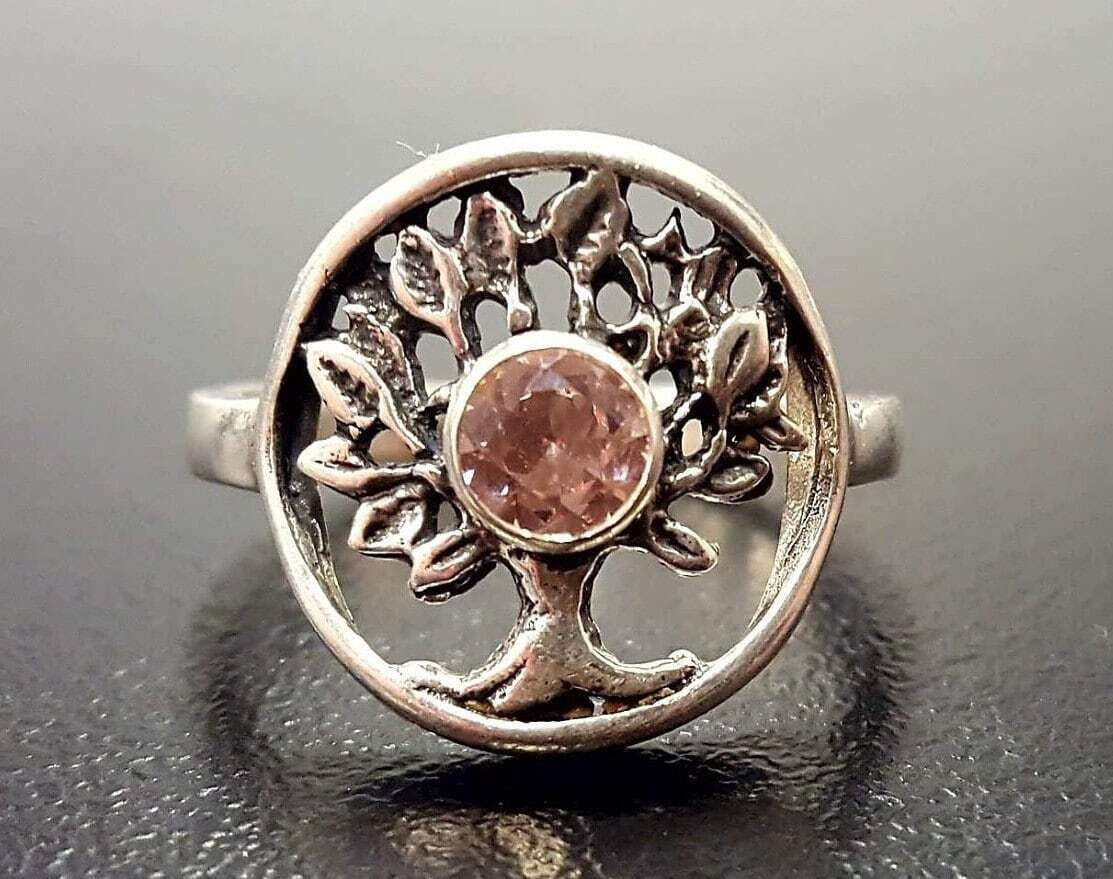 Morganite Ring, Created Morganite, Pink Ring, Tree Ring, Pink Diamond Ring, Silver Tree Ring, Unique Stone Ring, 925 Silver Ring, Morganite