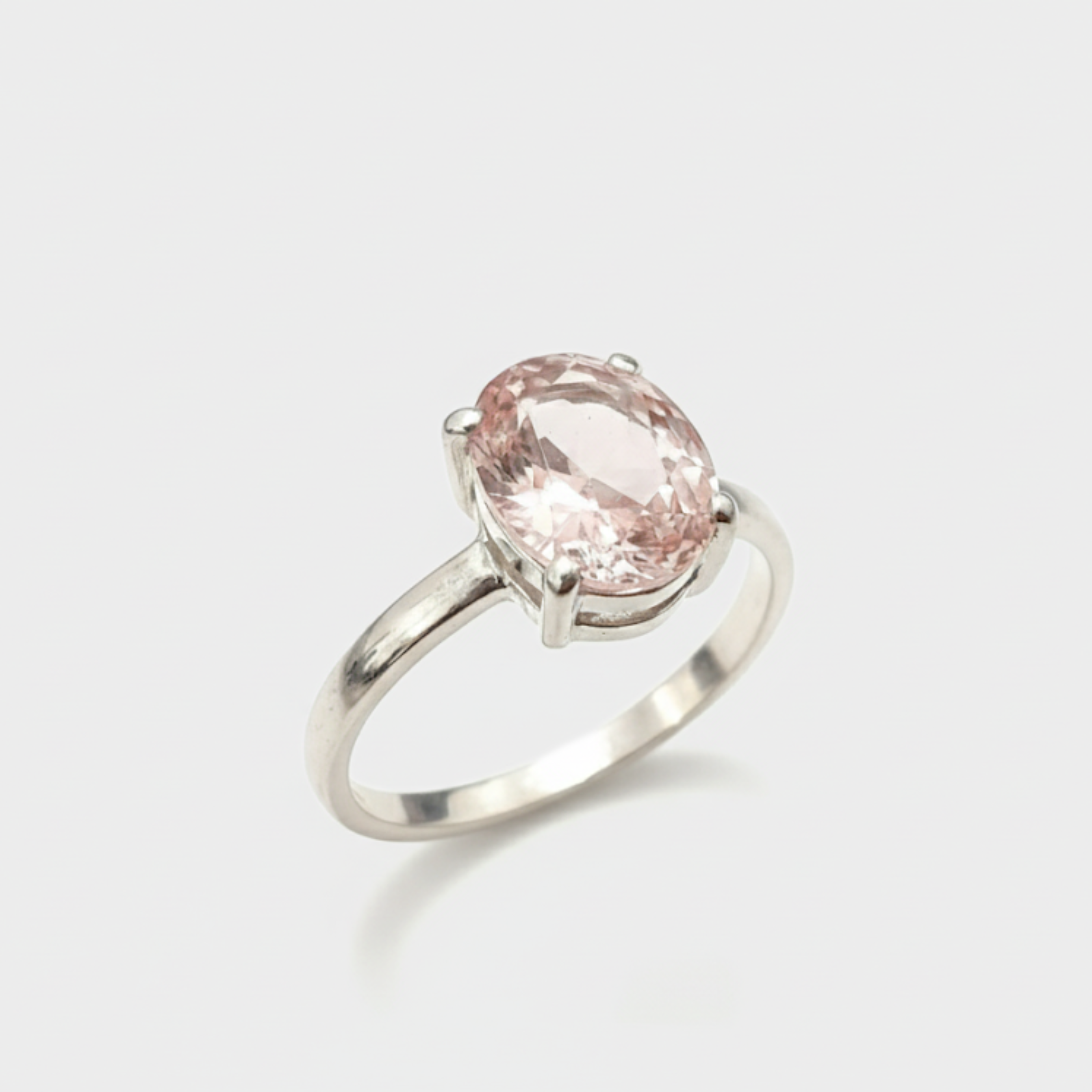Pink Morganite Ring set with a Created Morganite in a top grade, perfect diamond cut & flawless clarity, at 10x8mm (3 Cts).
