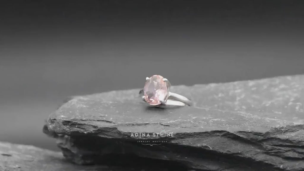 Pink Morganite Ring - Pink Solitaire Ring - Dainty Vintage Ring
