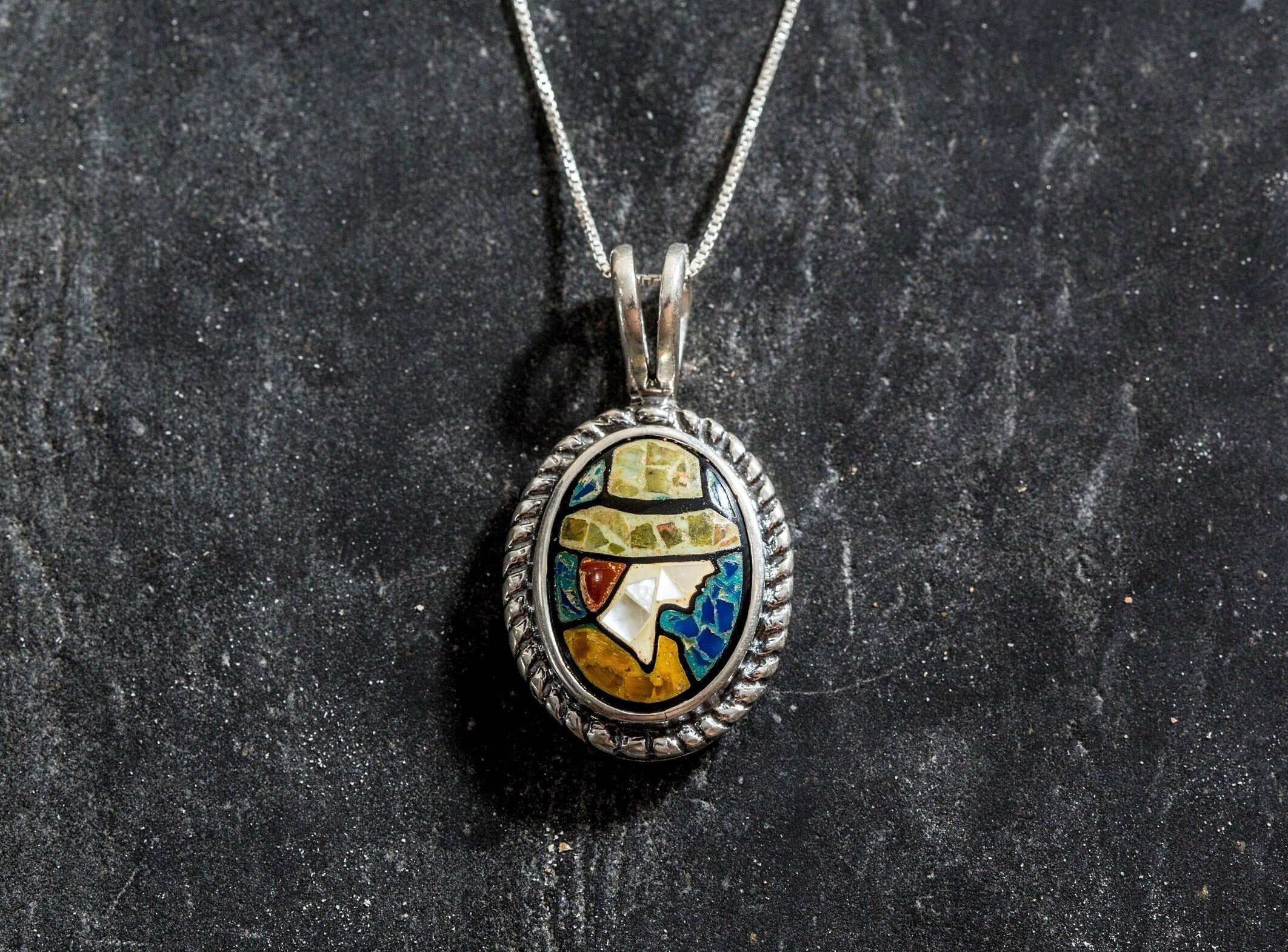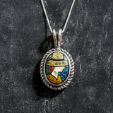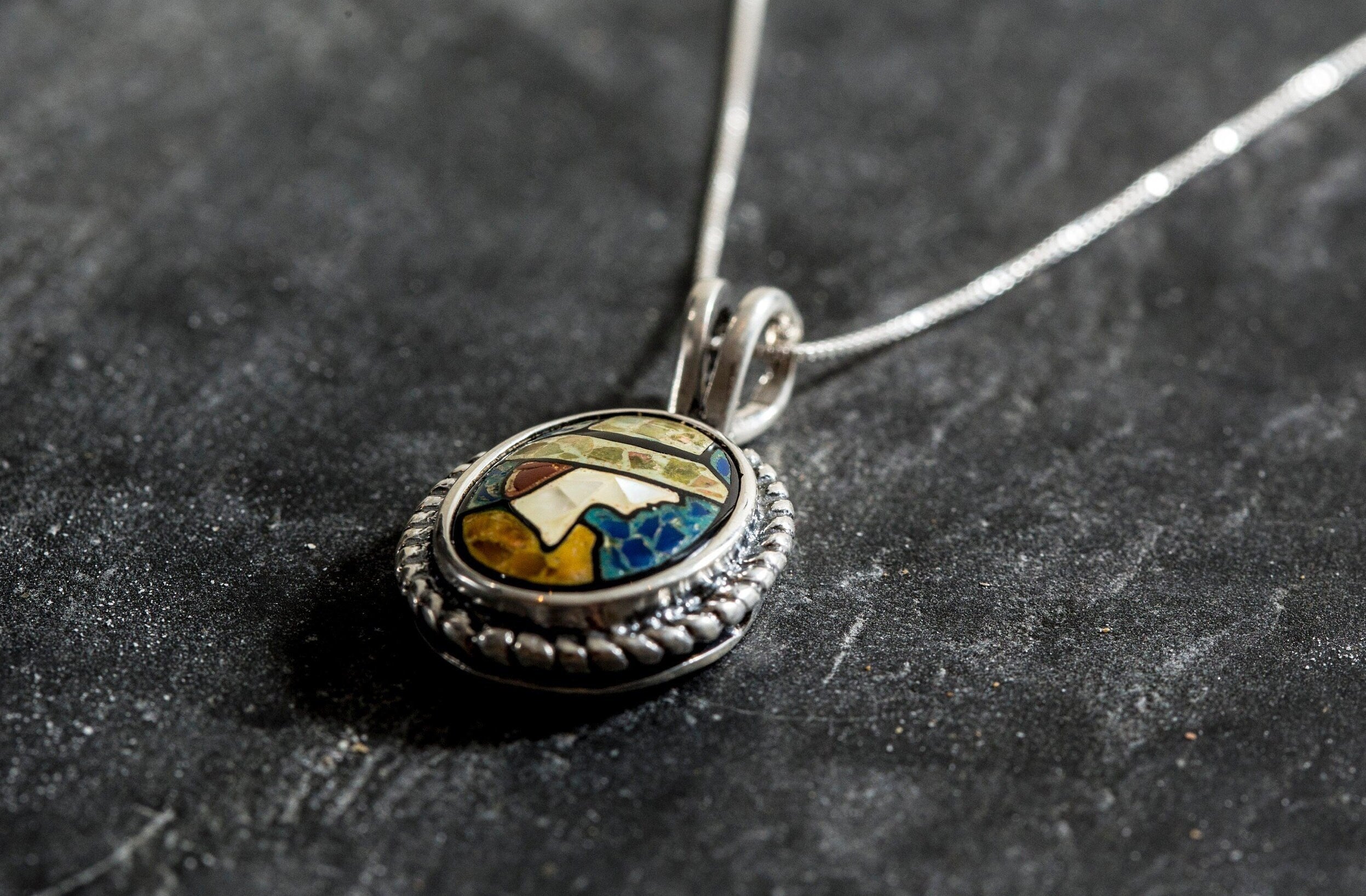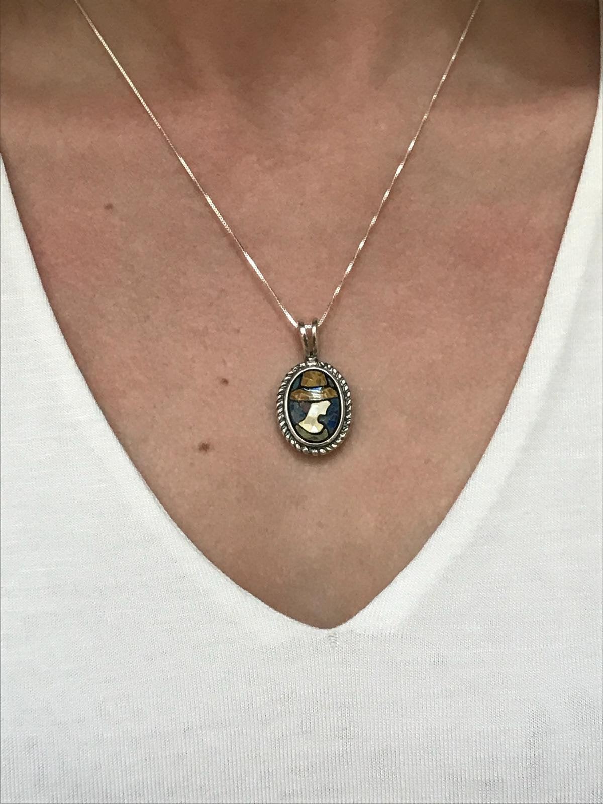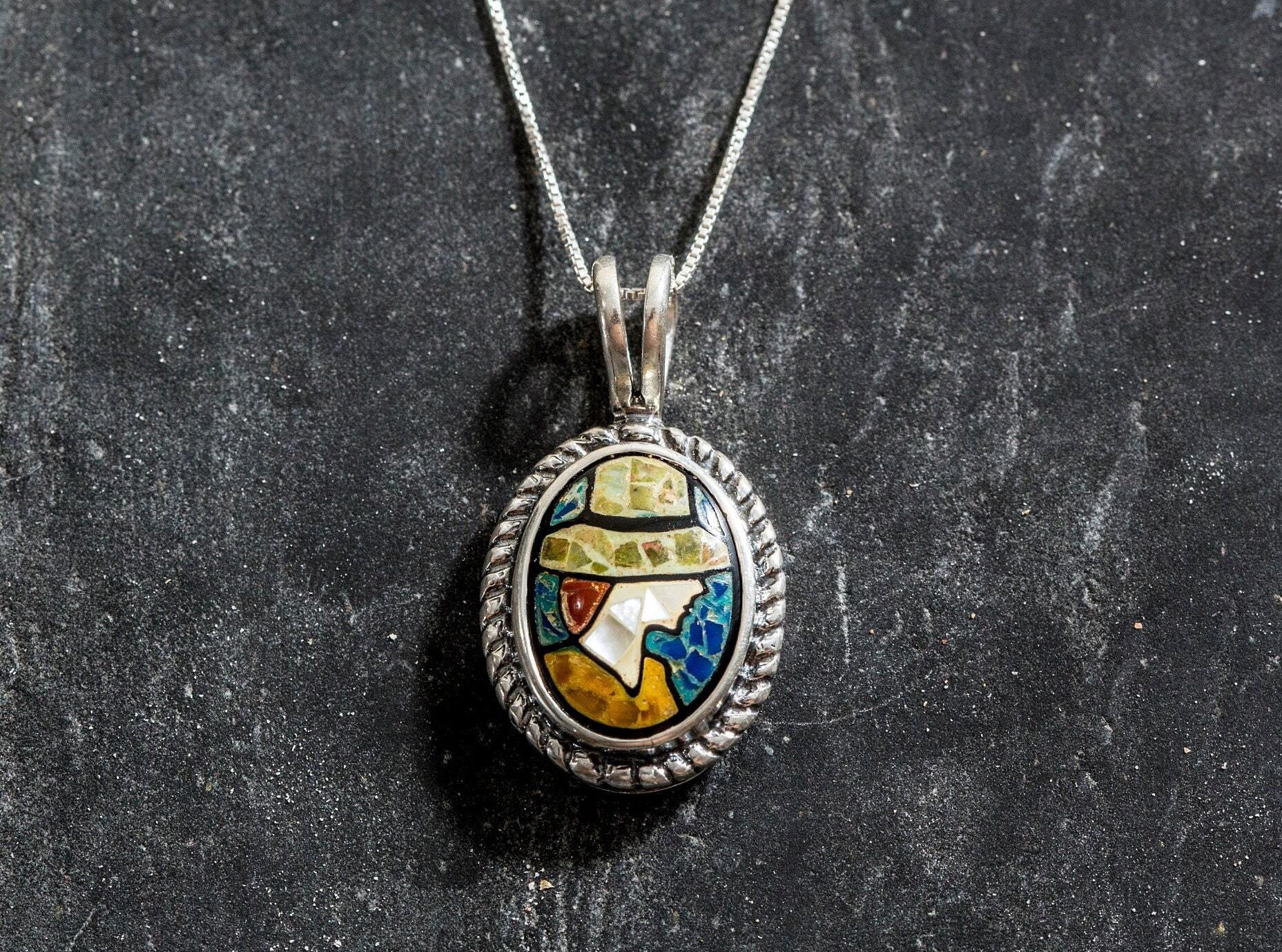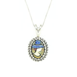 Mosaic Necklace set with a Mosaic image of a lady made of Natural Shell Pearl, at 18x13mm size.