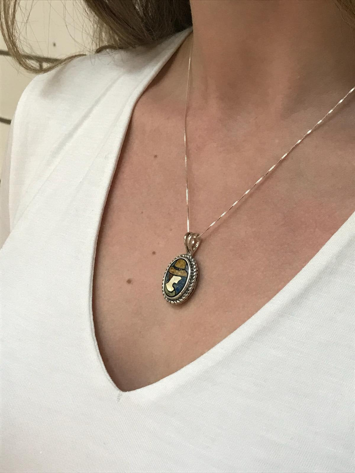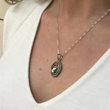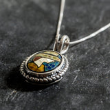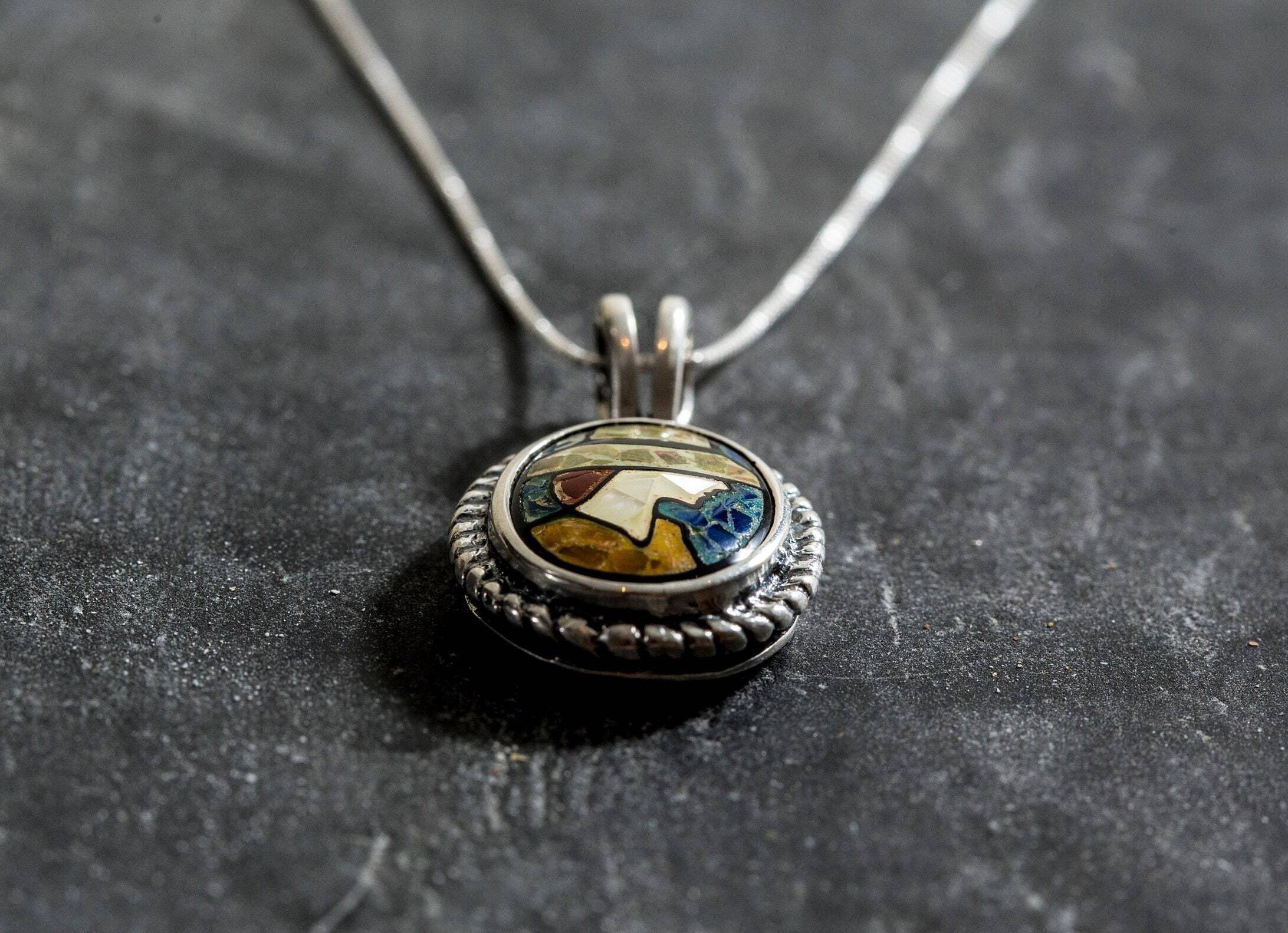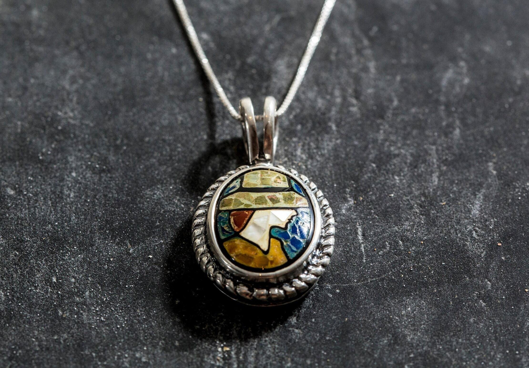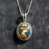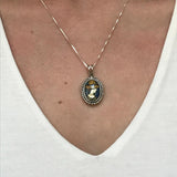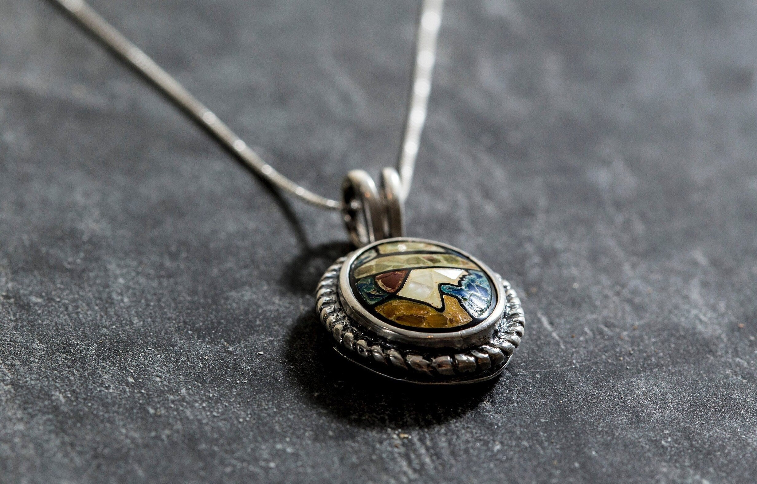 Mosaic Necklace set with a Mosaic image of a lady made of Natural Shell Pearl, at 18x13mm size.