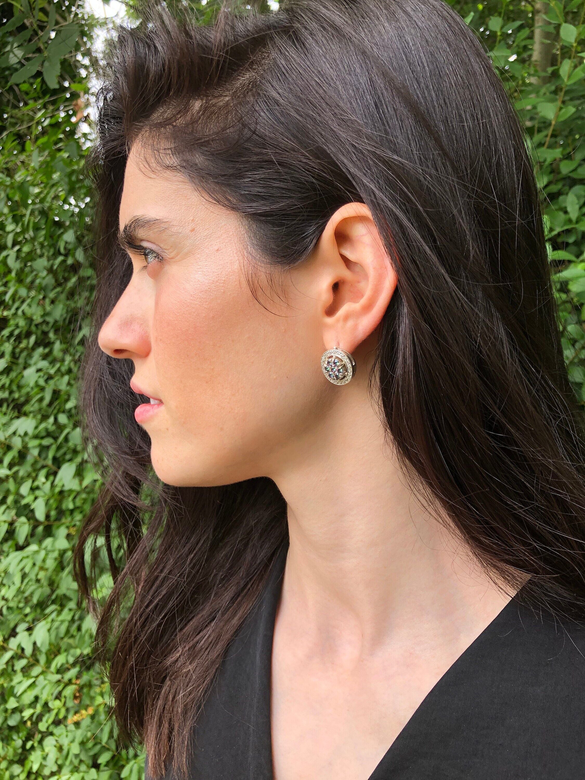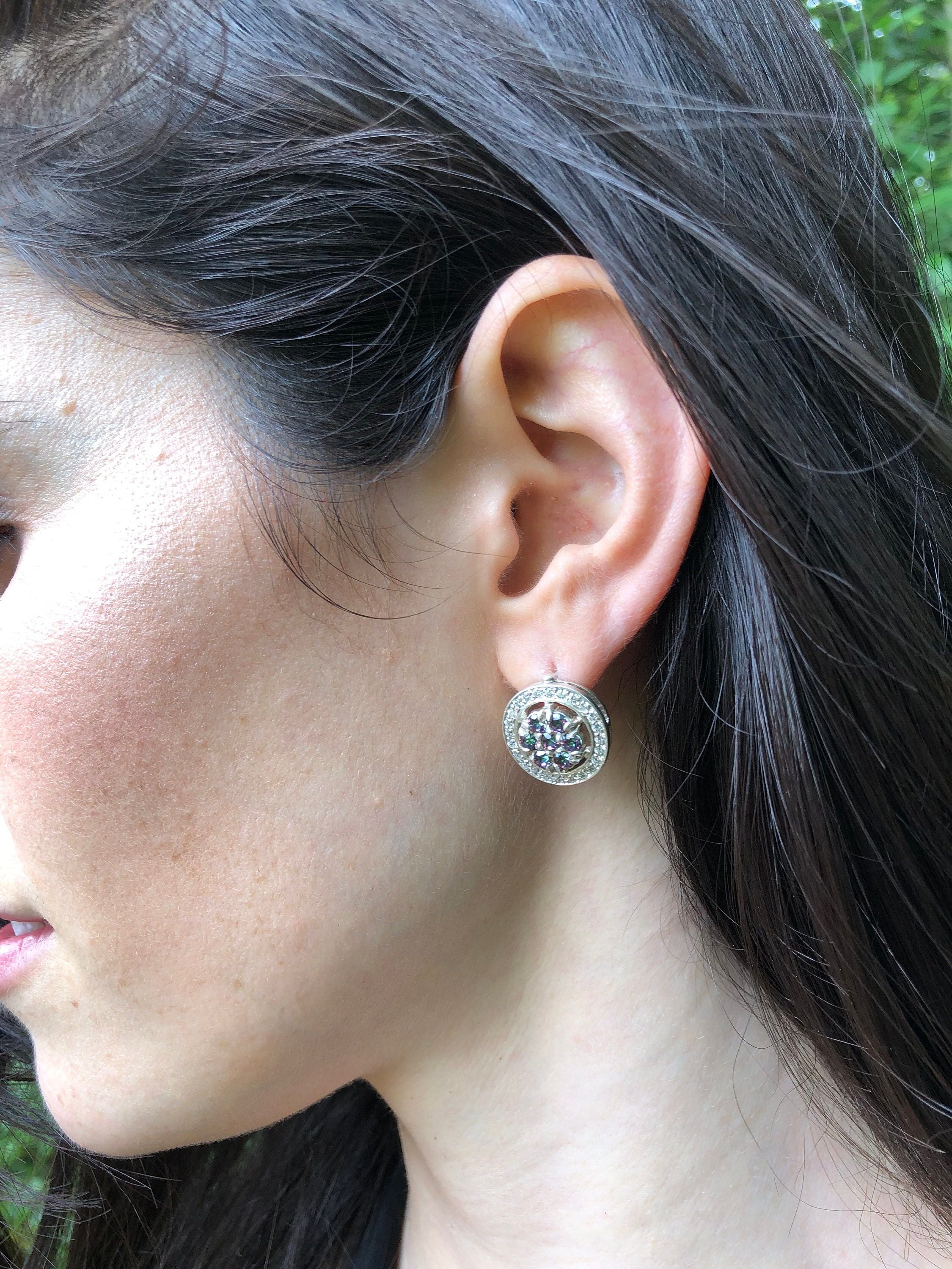 Mystic Topaz Earrings, Natural Mystic Topaz, December Birthstone, Flower Earrings, Vintage Earrings, Natural Topaz Earrings, Silver Earrings