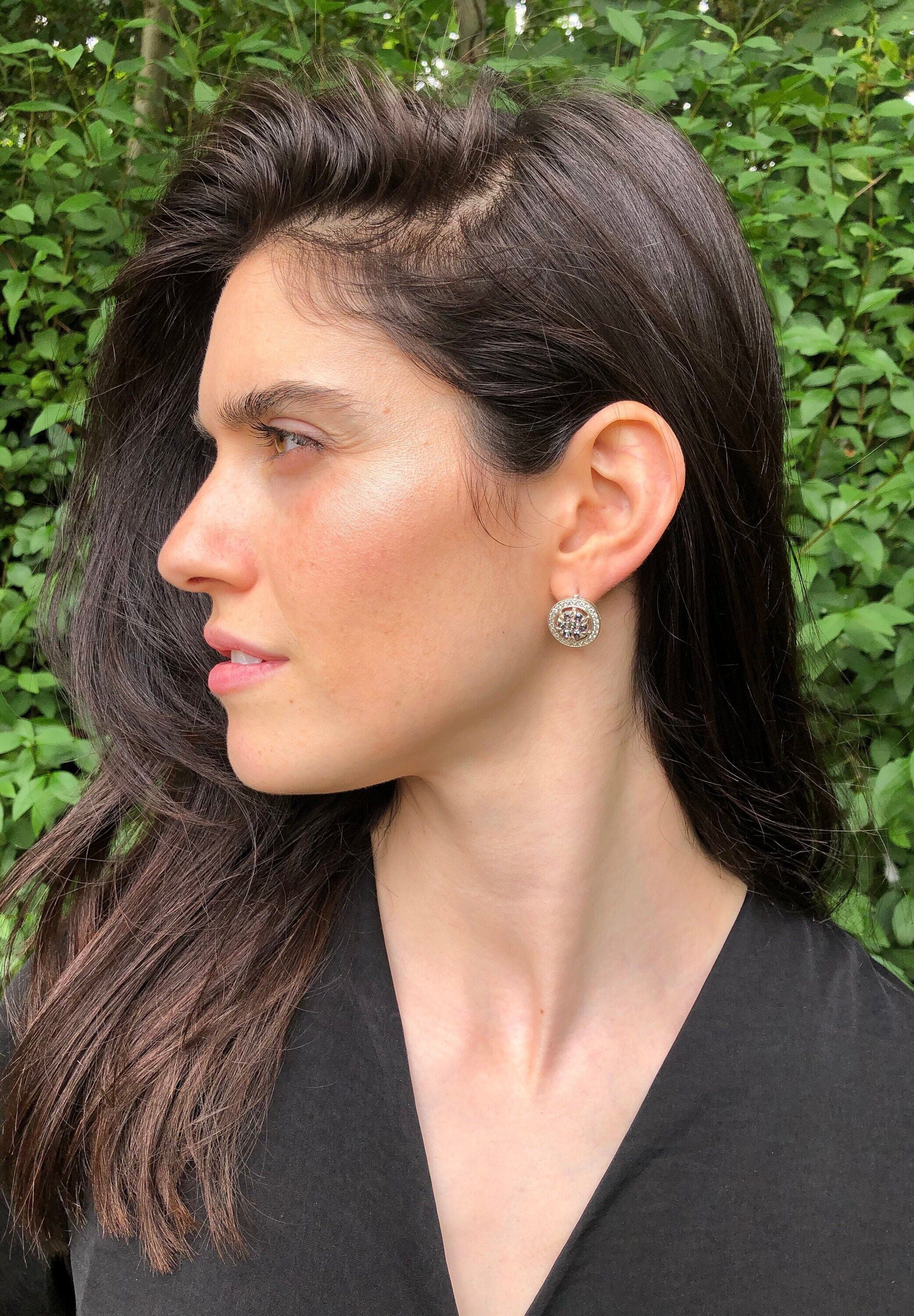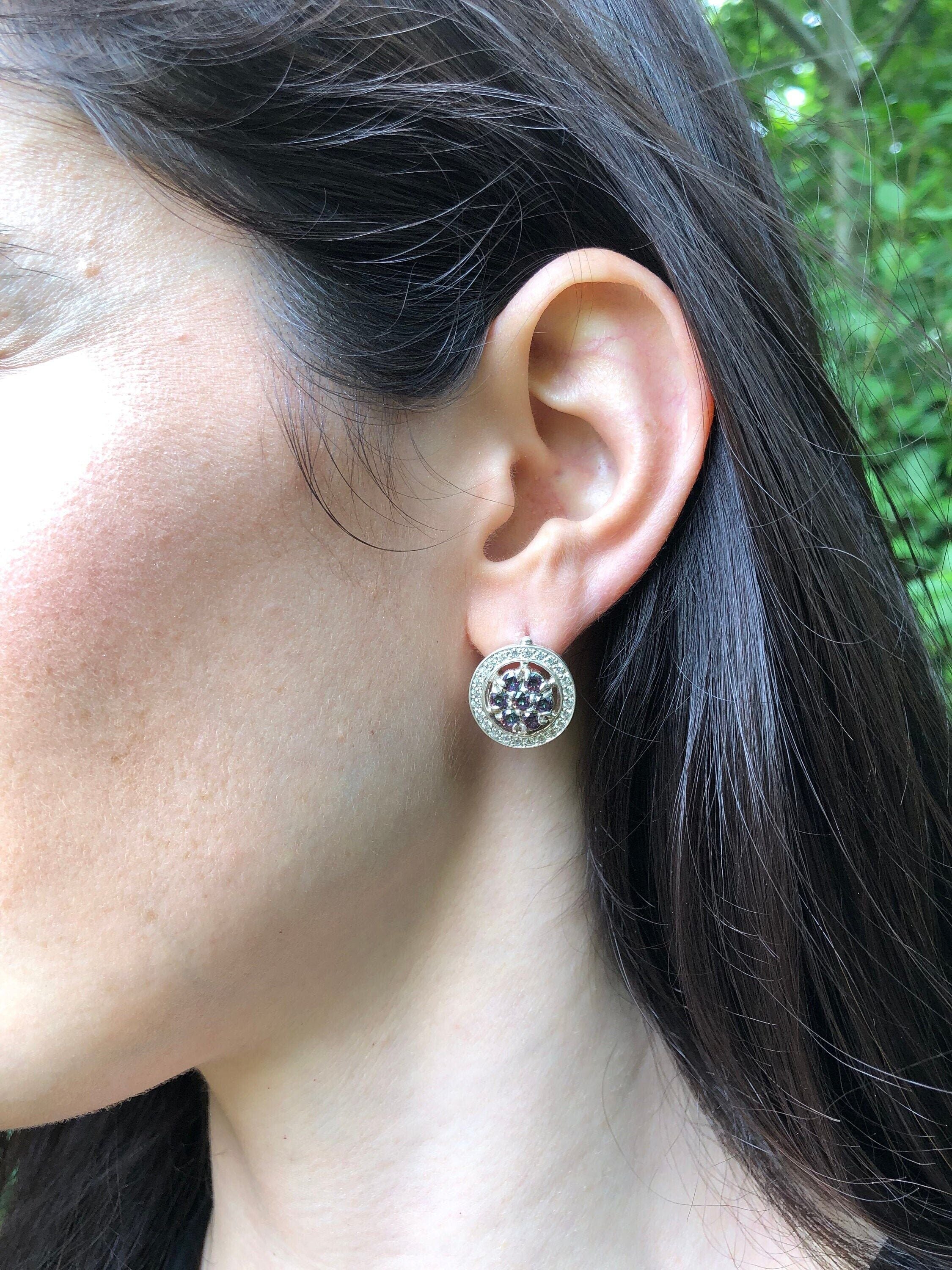 Purple Flower Earrings - Natural Mystic Topaz - Vintage Cluster Earrings