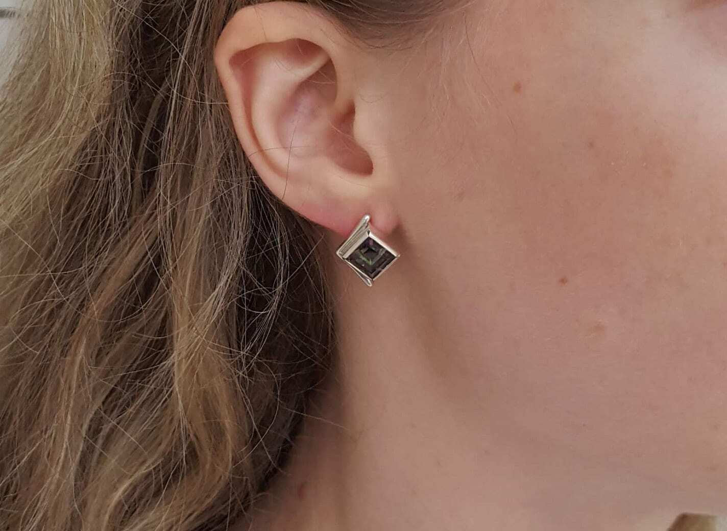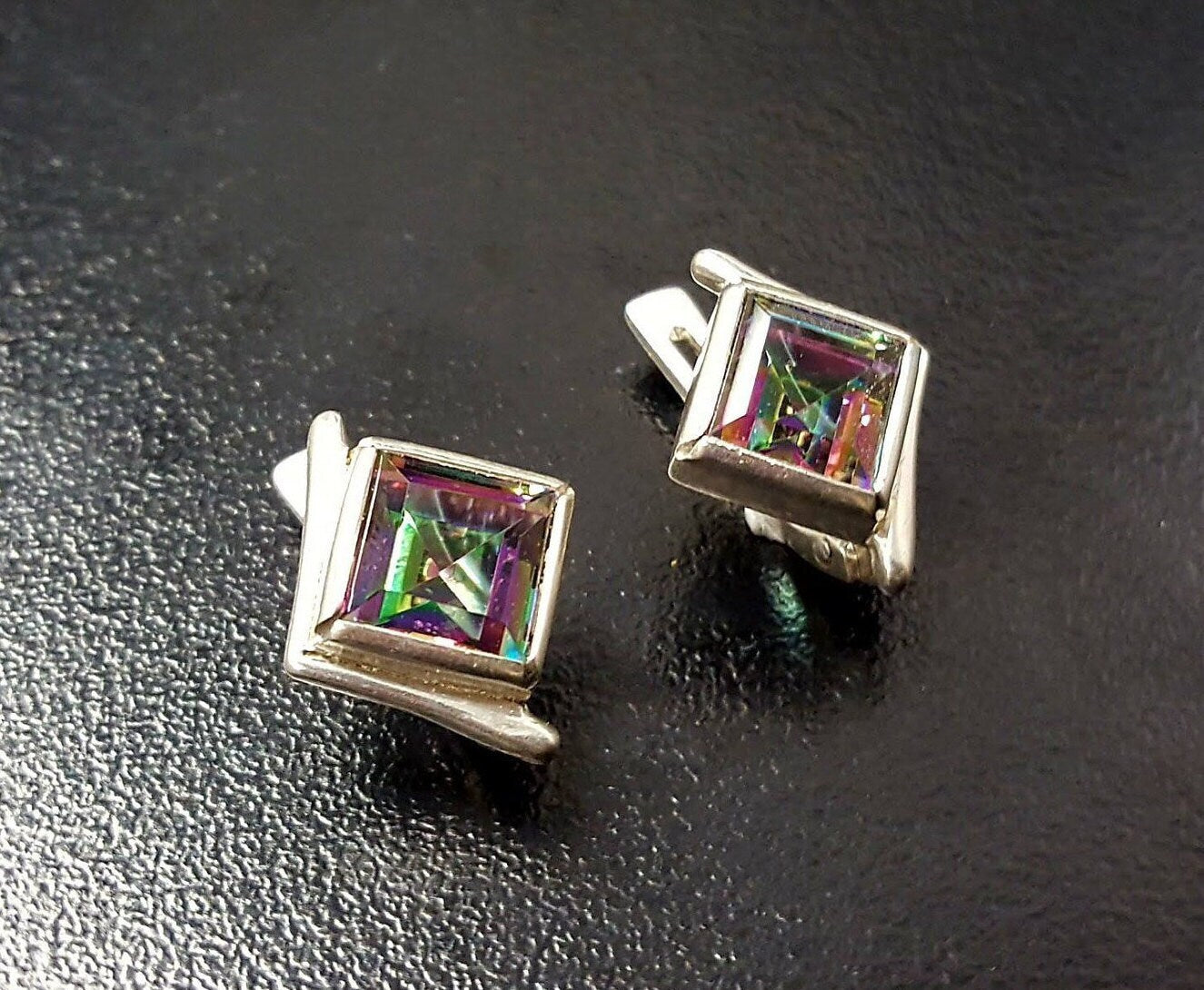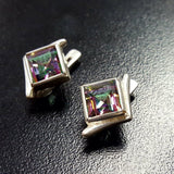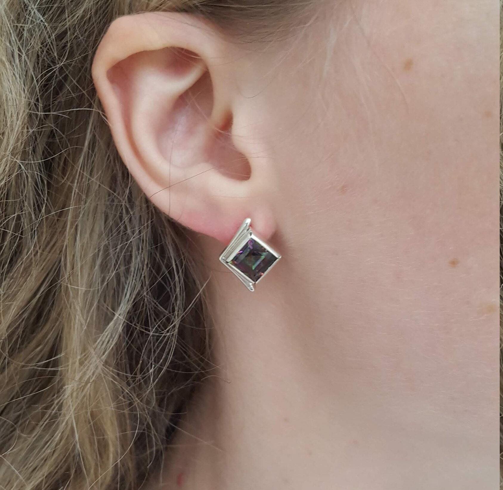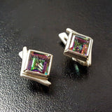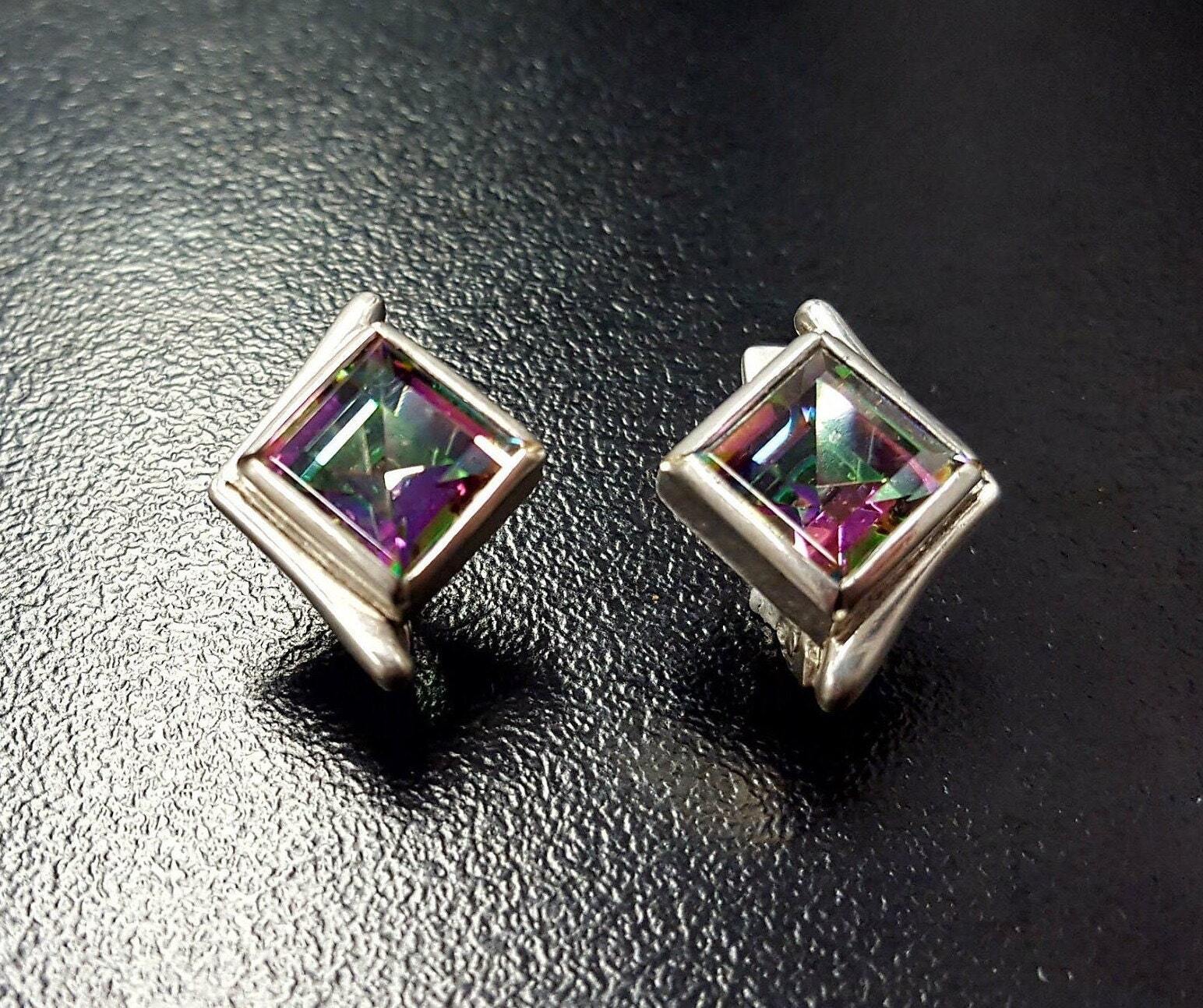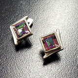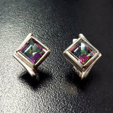 Mystic Topaz Earrings - Square Topaz Studs - Violet Vintage Earrings