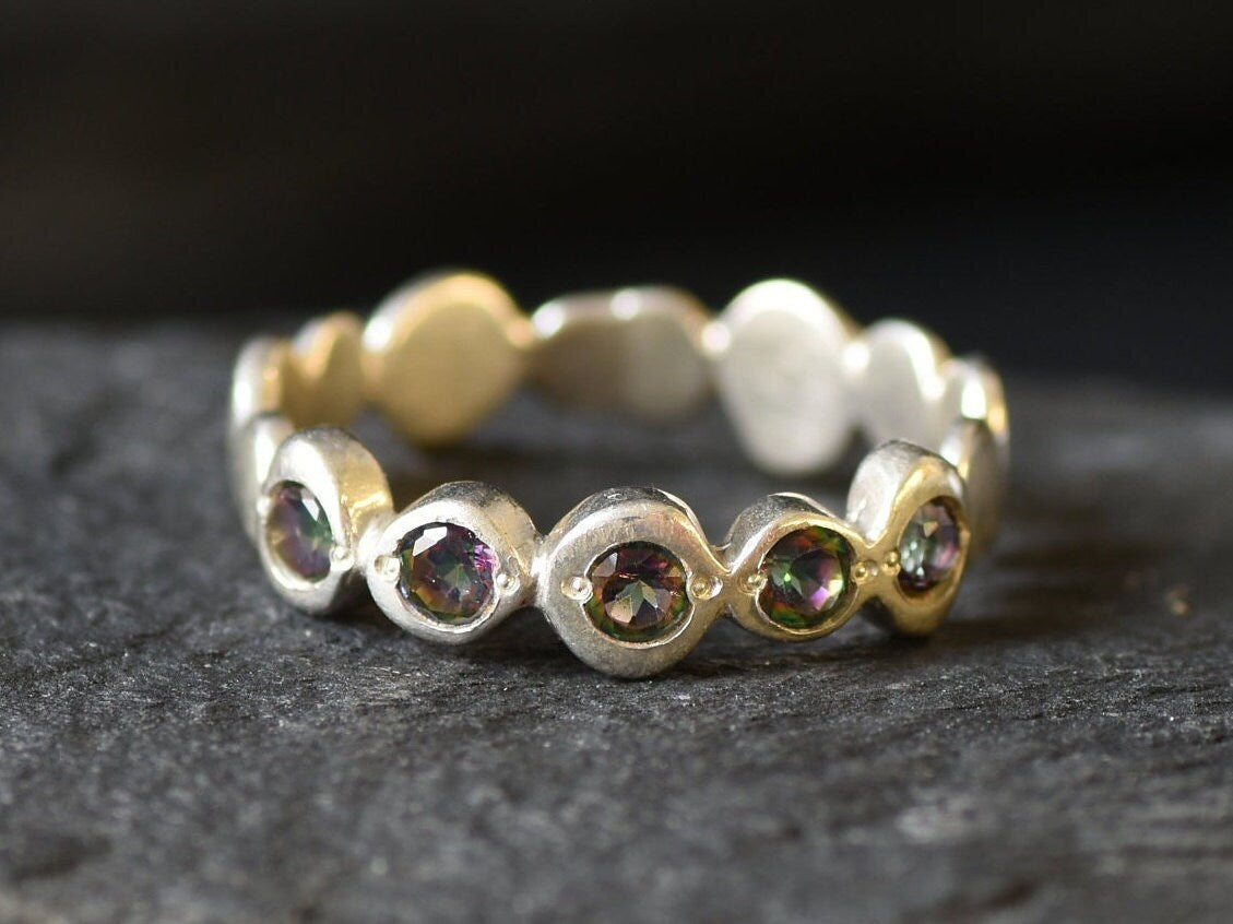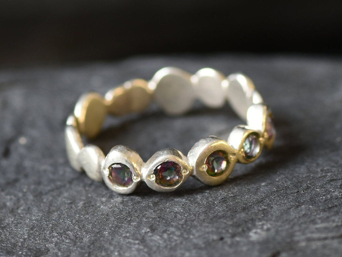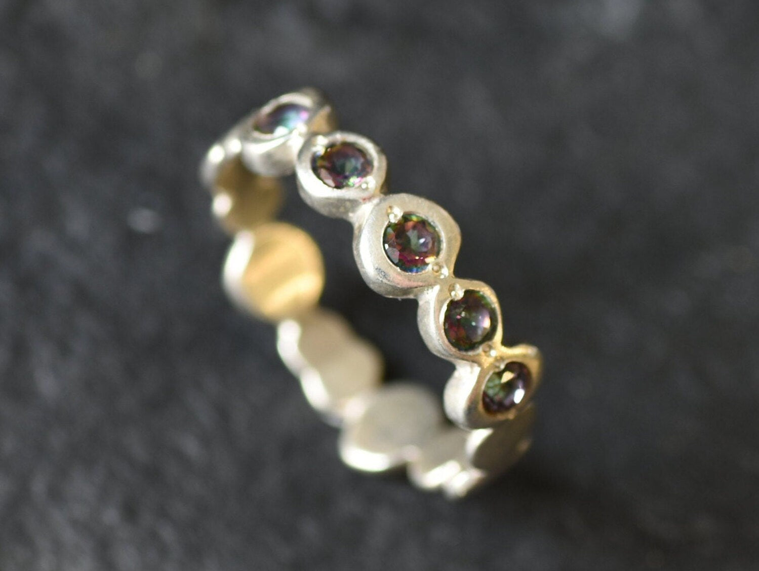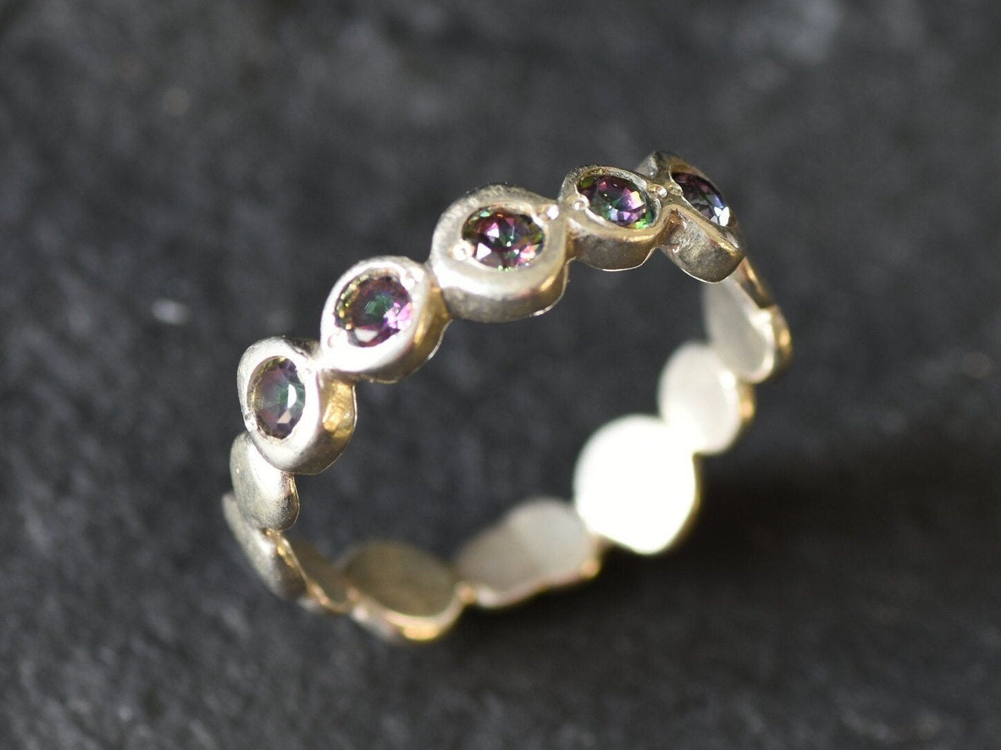 Mystic Topaz Ring, Natural Mystic Topaz, Bubble Band, December Birthstone, Boho Ring, Bohemian Band, Stackable Ring, Purple Band, 925 Silver